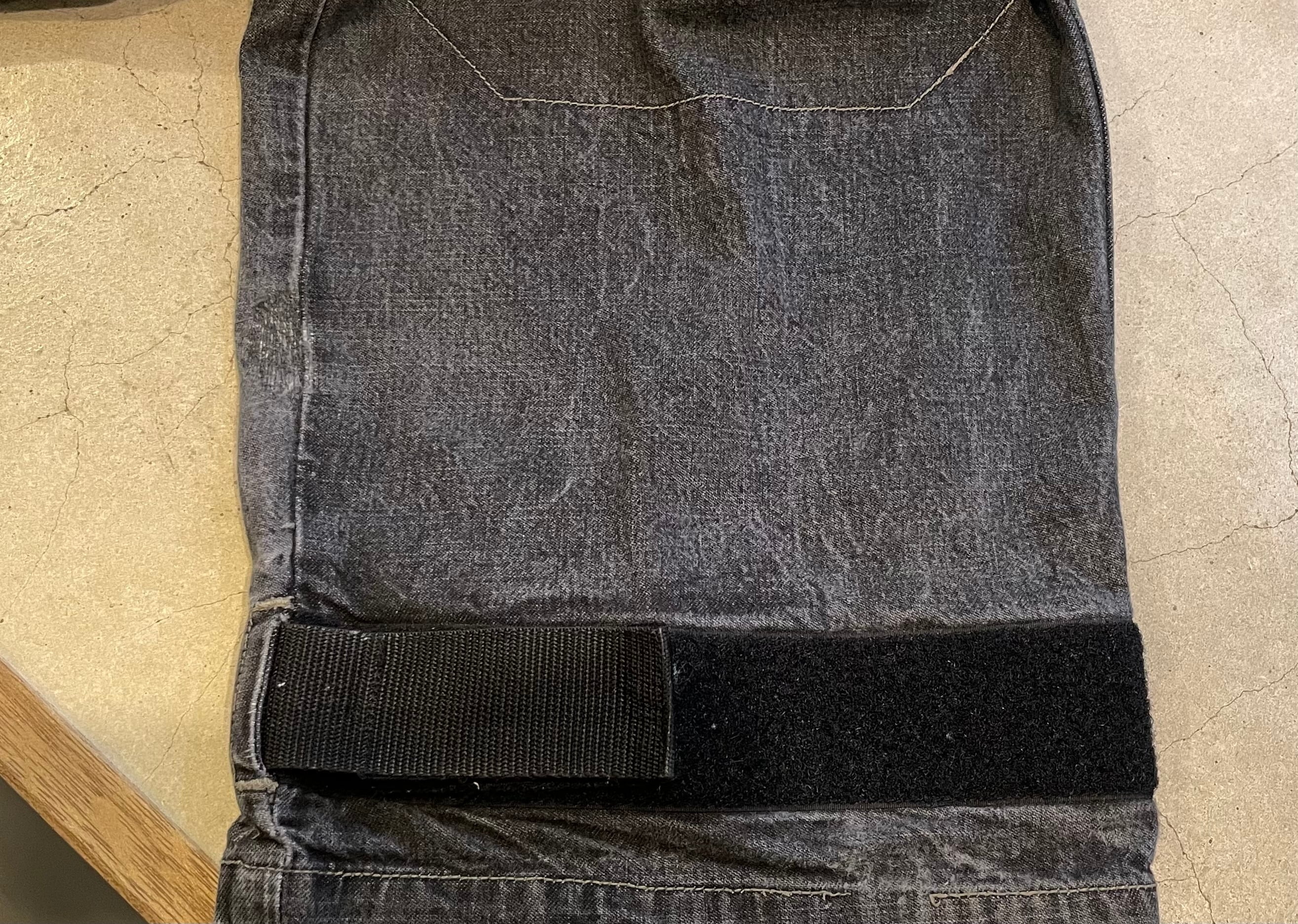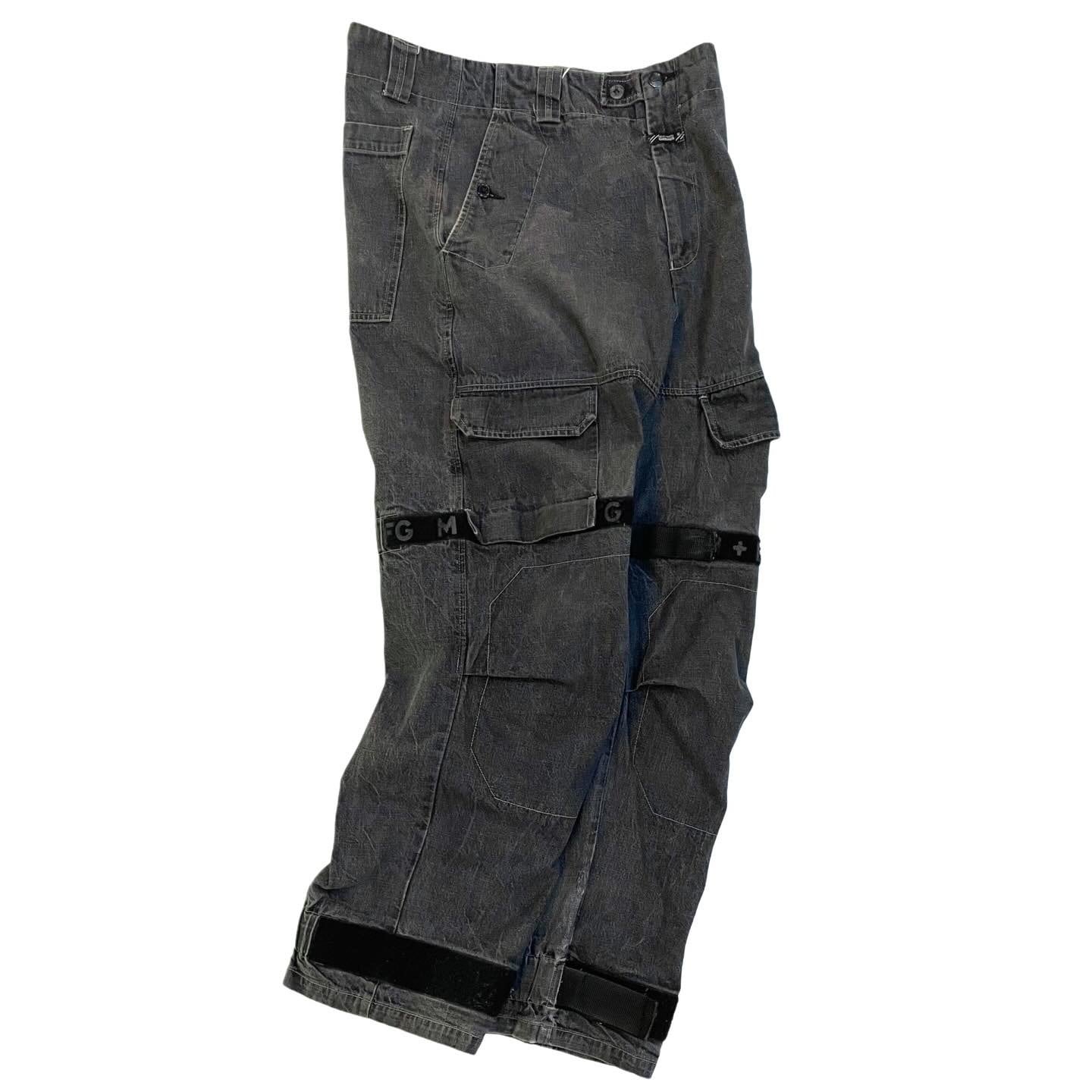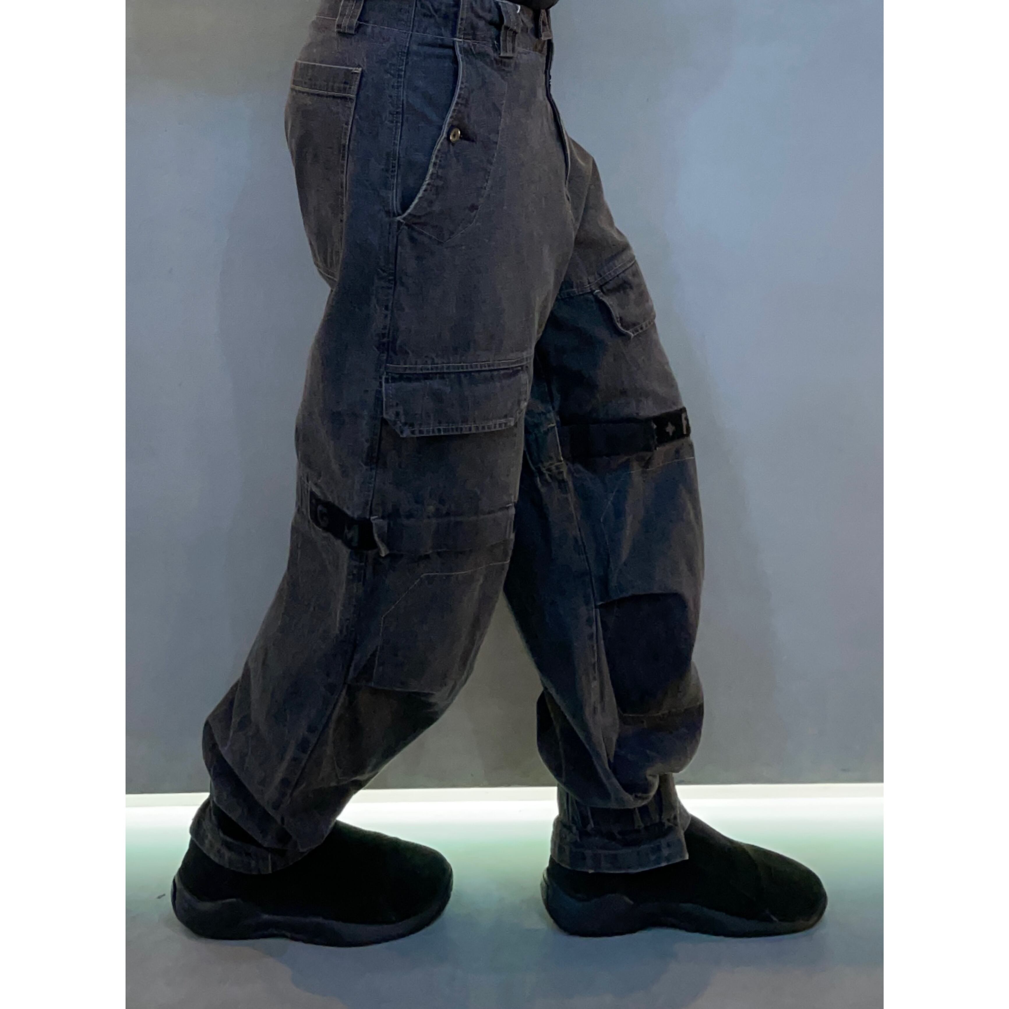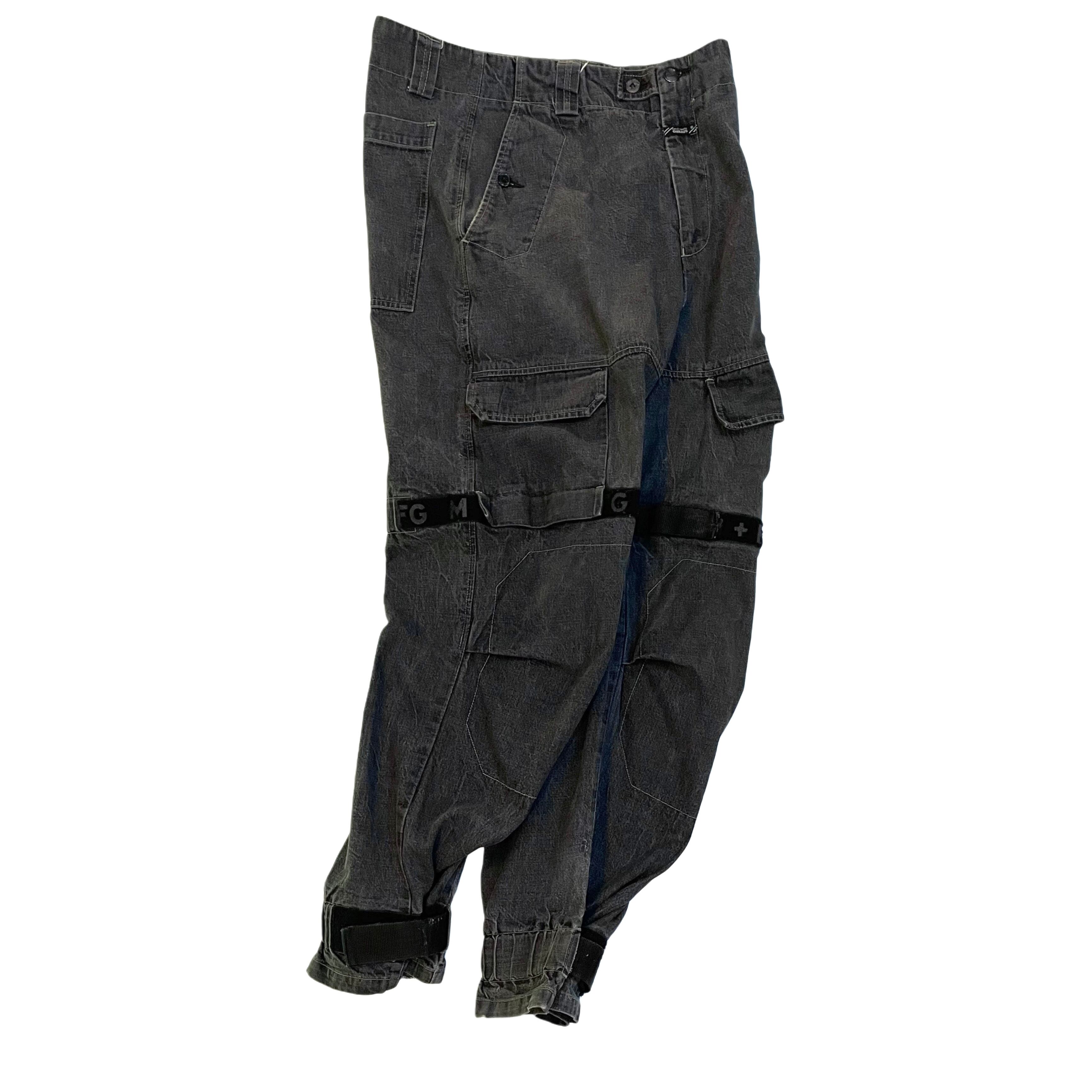 90-00s Marithé François Girbaud "shuttle denim pants" black cotton yern dyed denim velcro detail buggy cargo pants