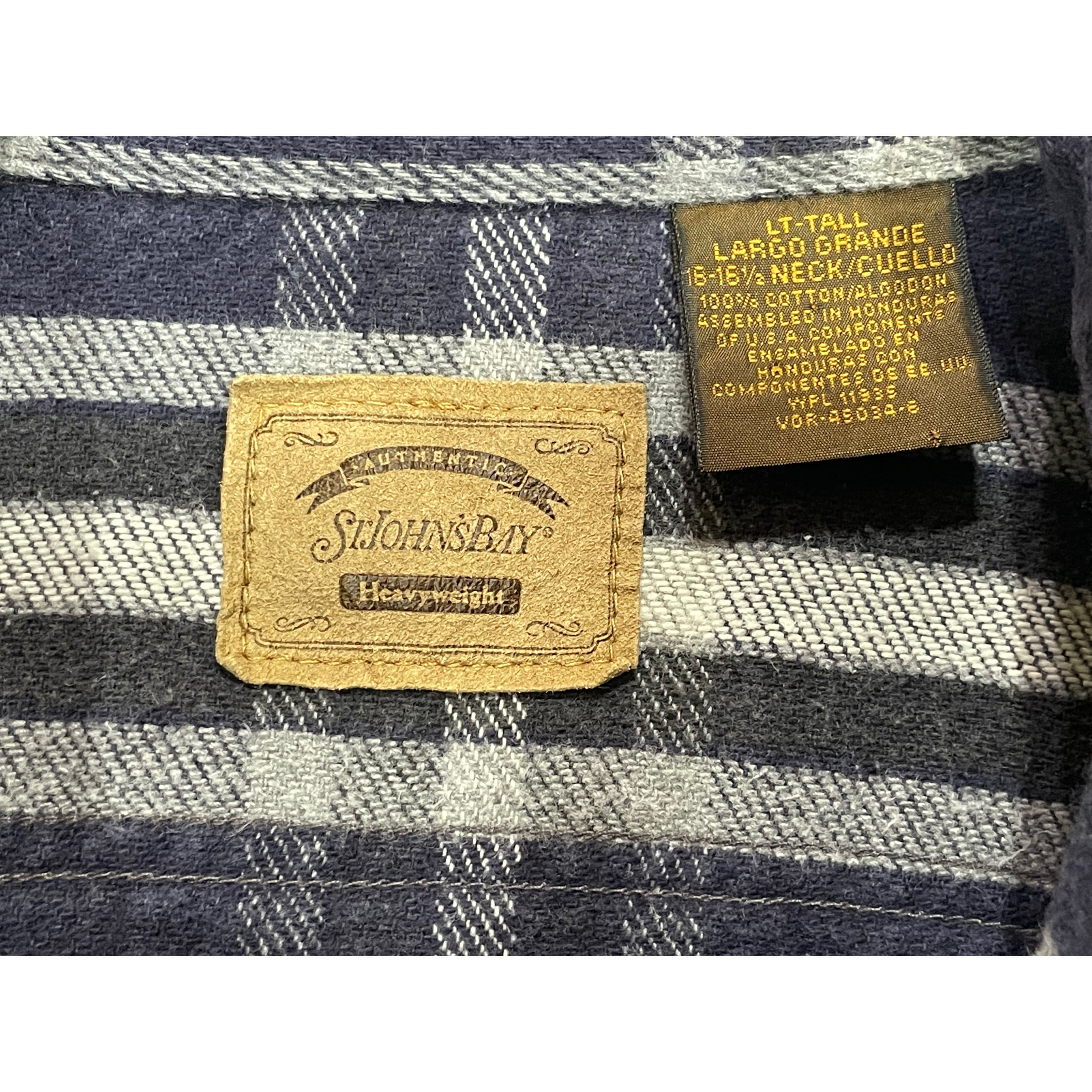 90s St Jhon's Bay navyxblackxwhite plaid cotton heavy flannel long sleeve shirt