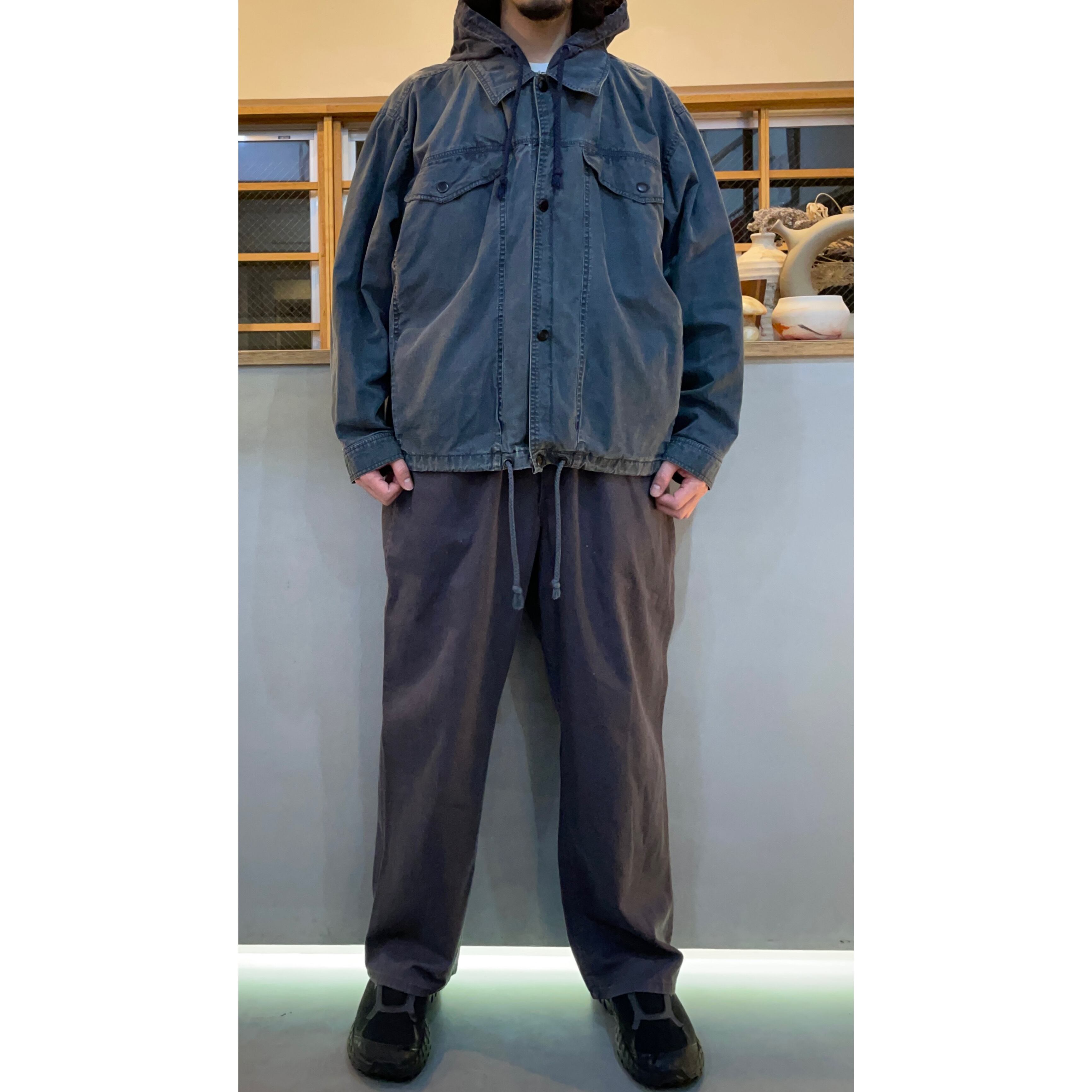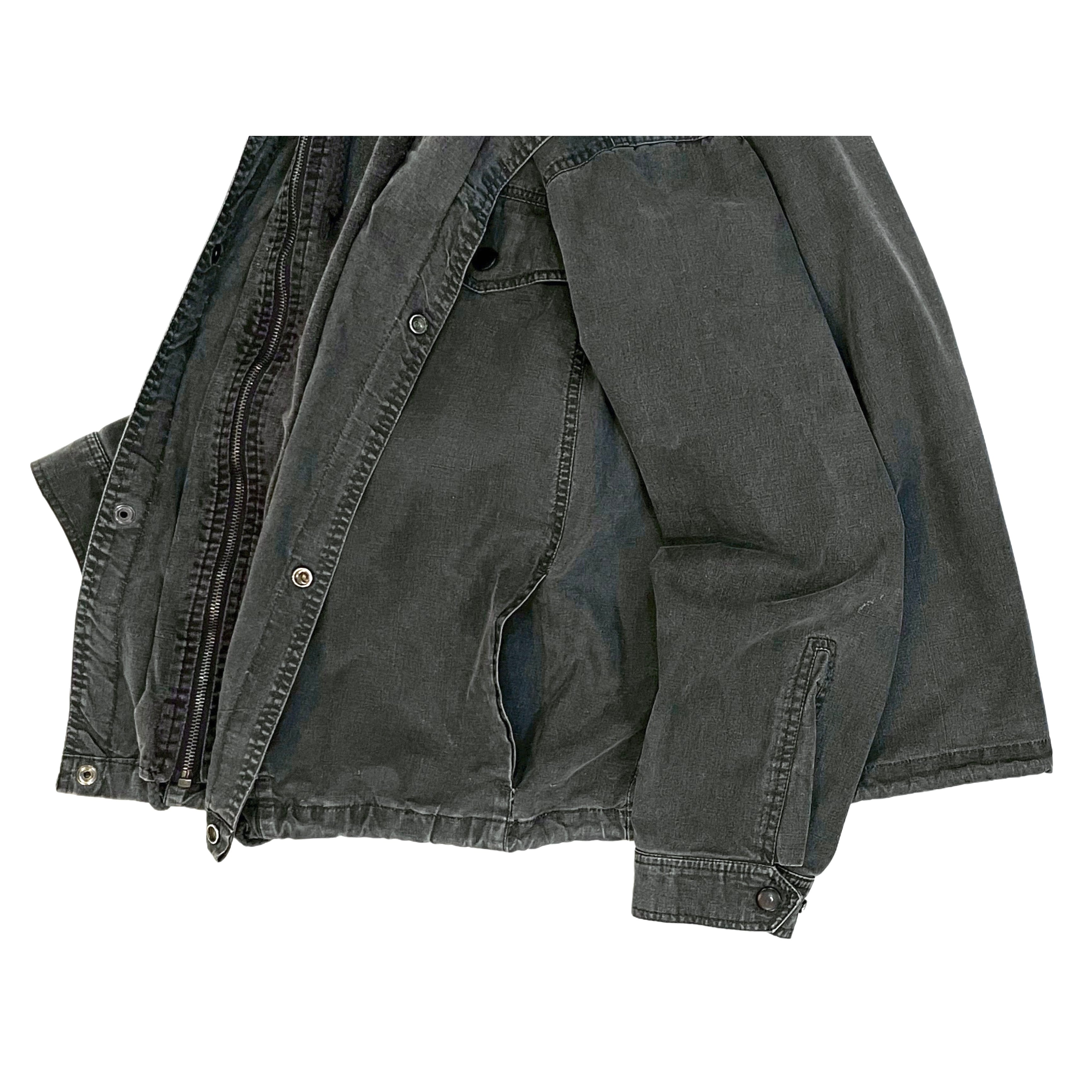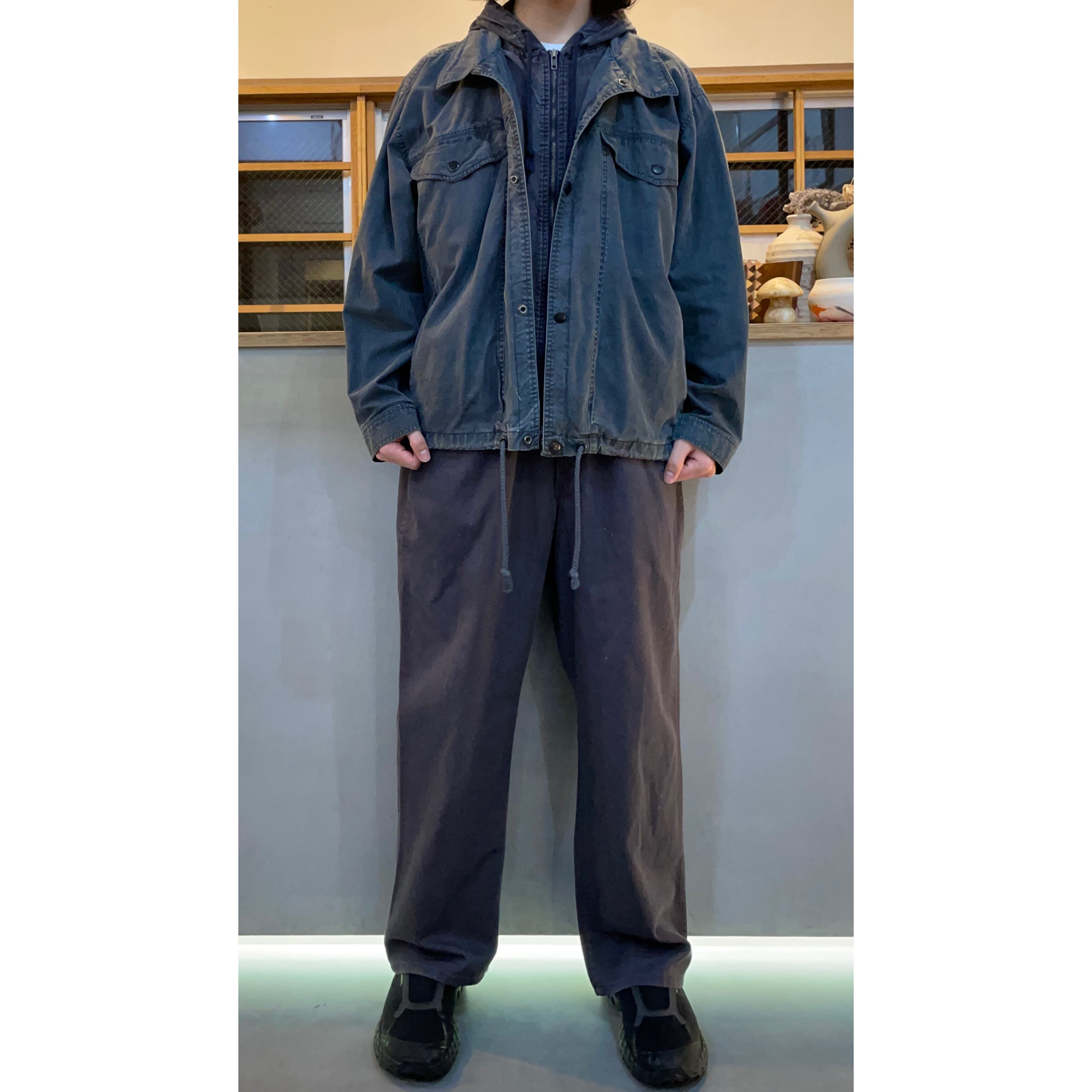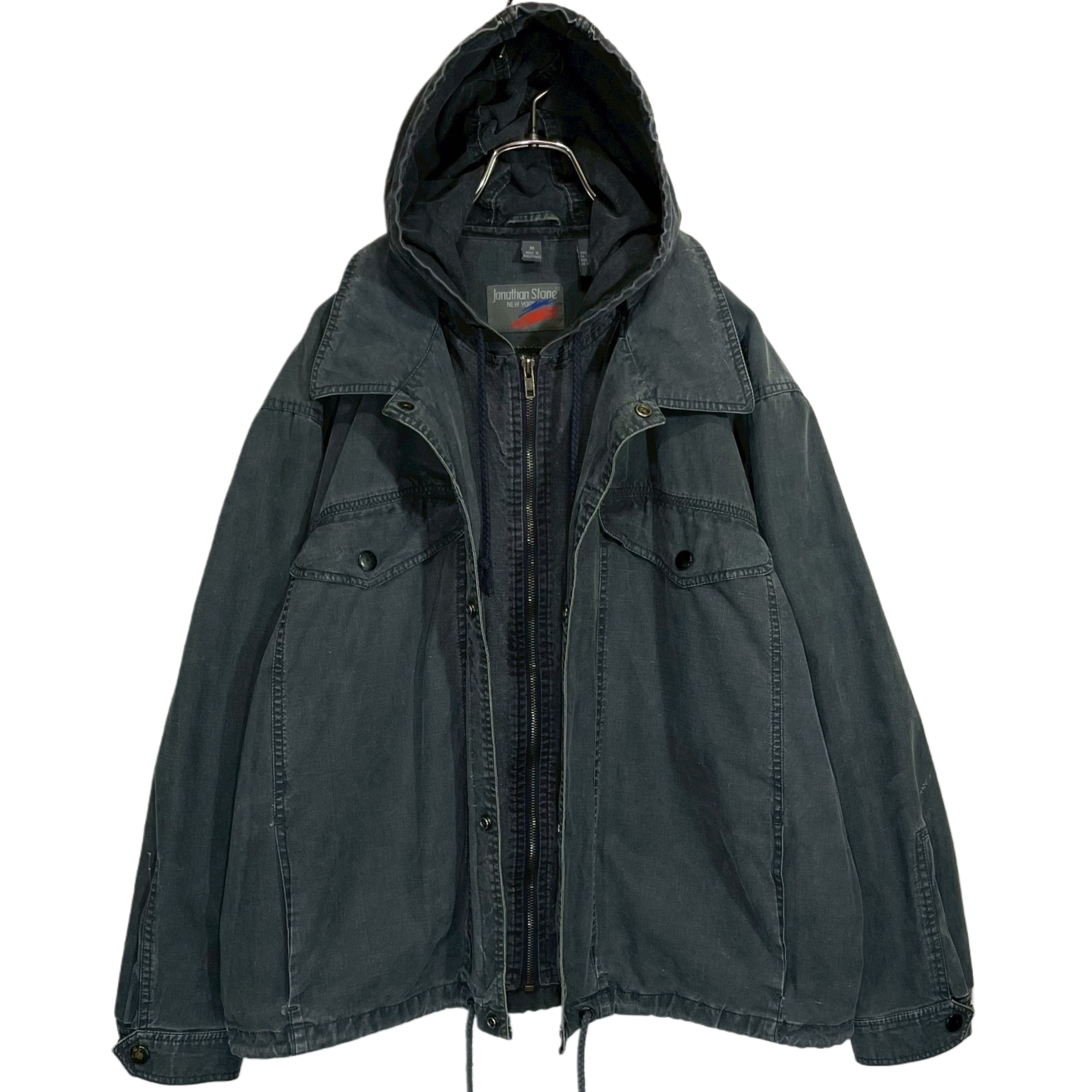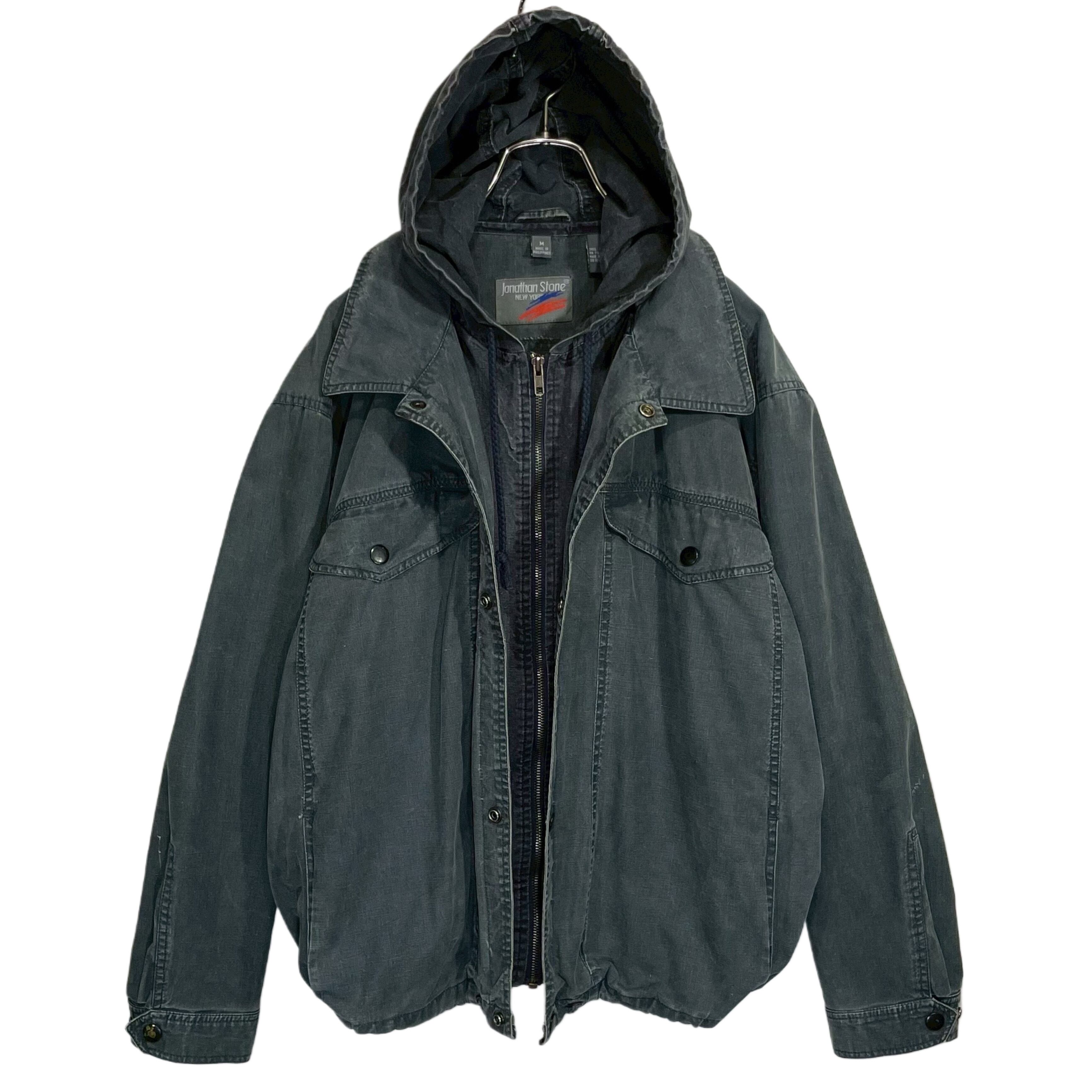 80s フェードブラックコットンレイヤードデザインジップアップジャケット