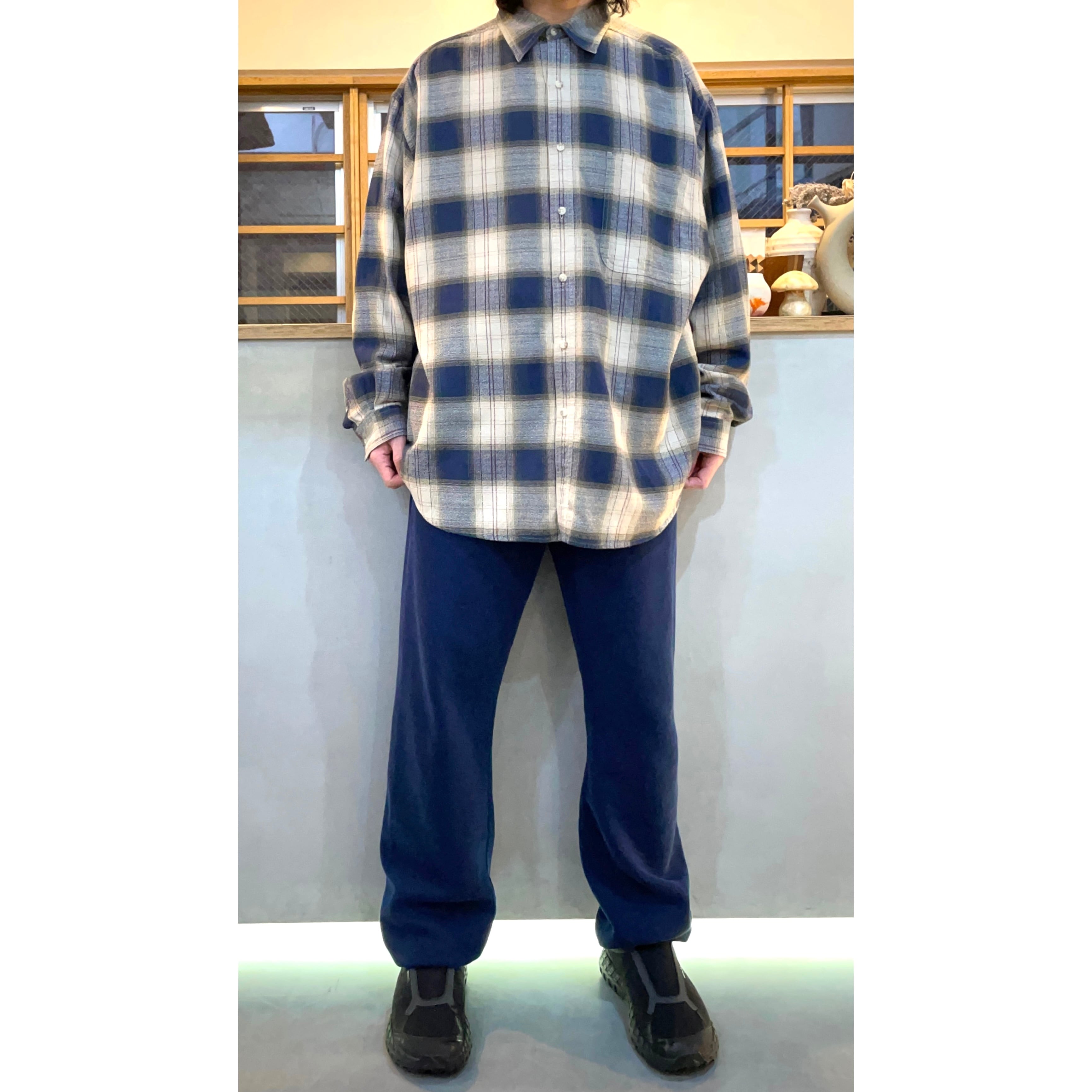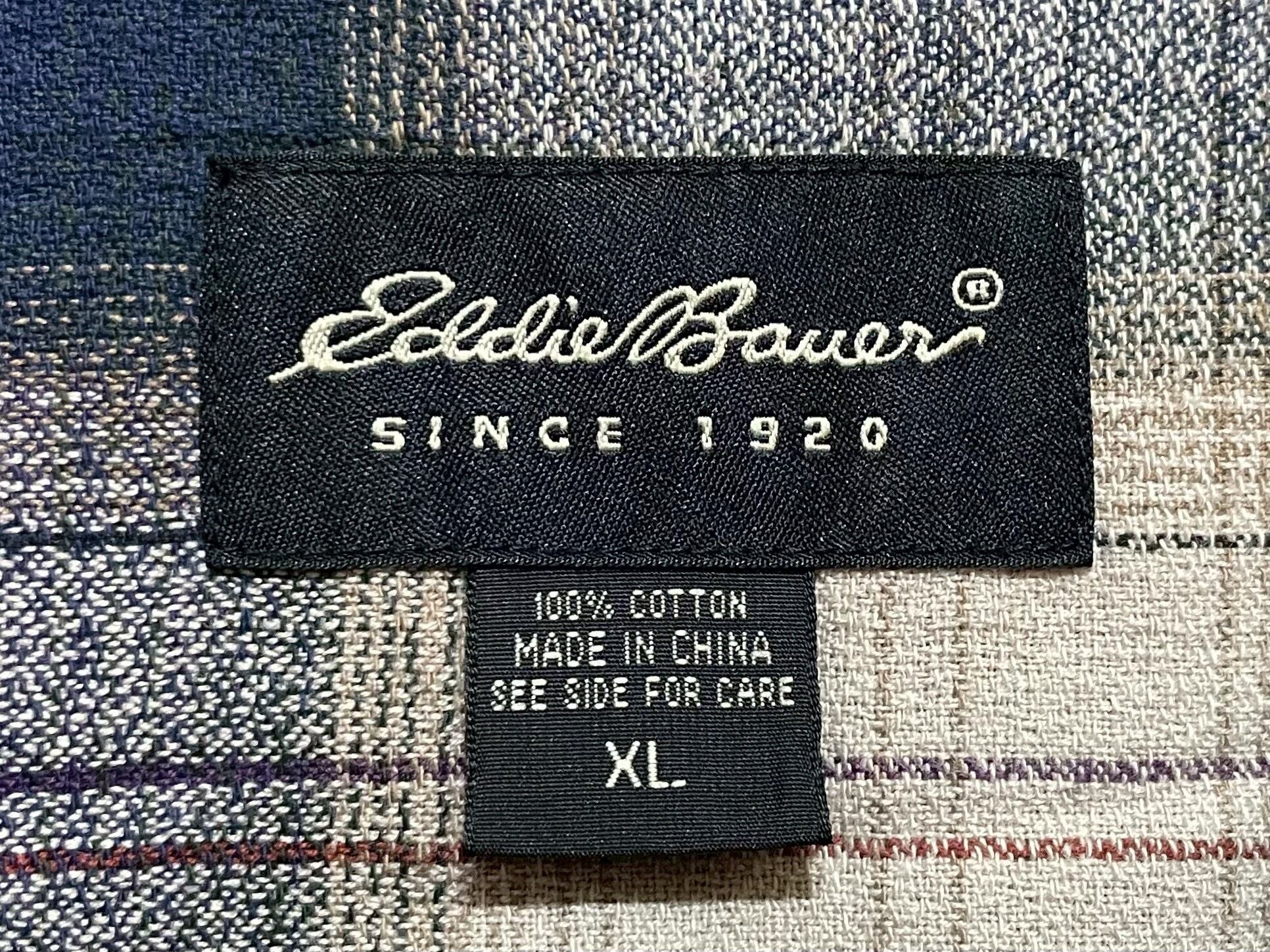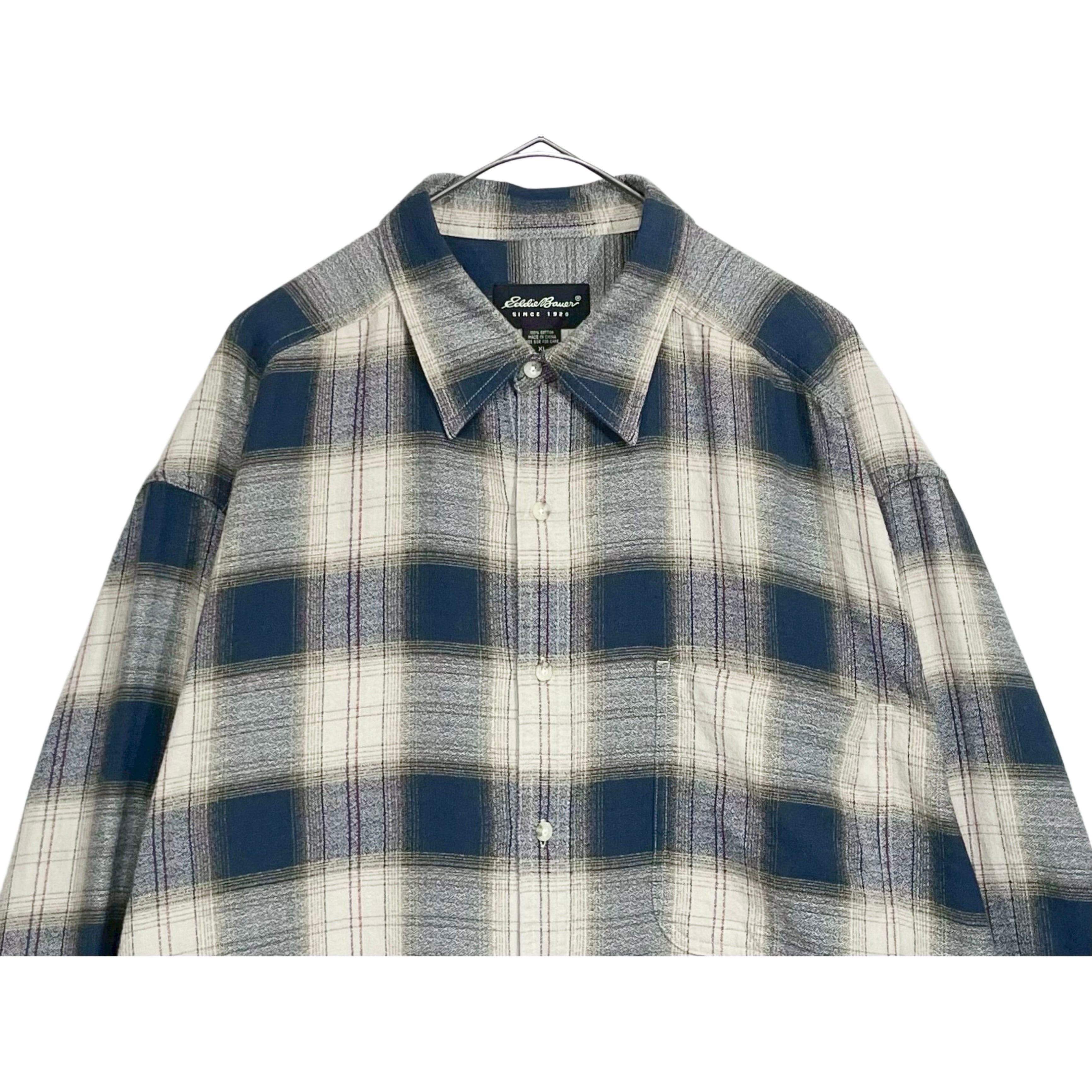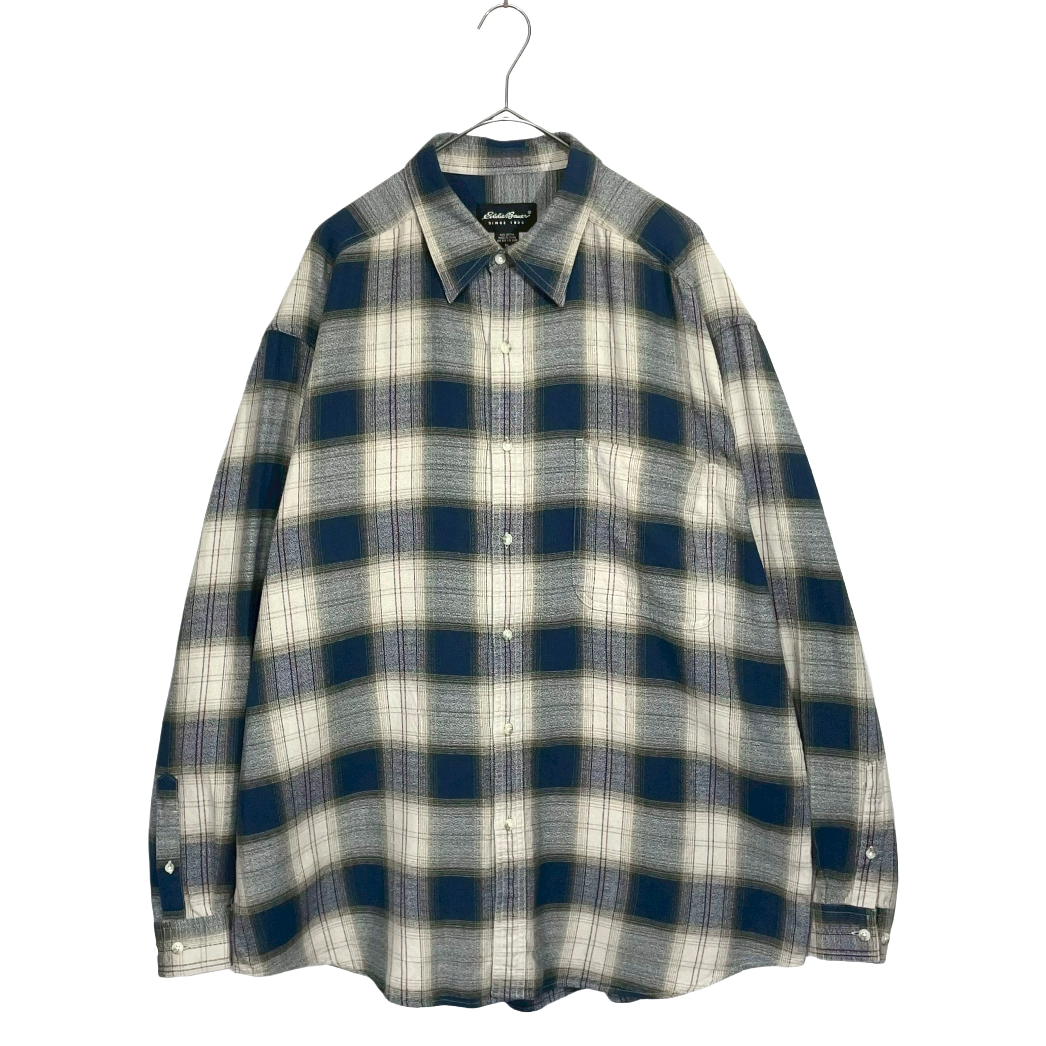 -00s Eddie Bauer navy/beige/brown omble plaid cotton long sleeve shirt