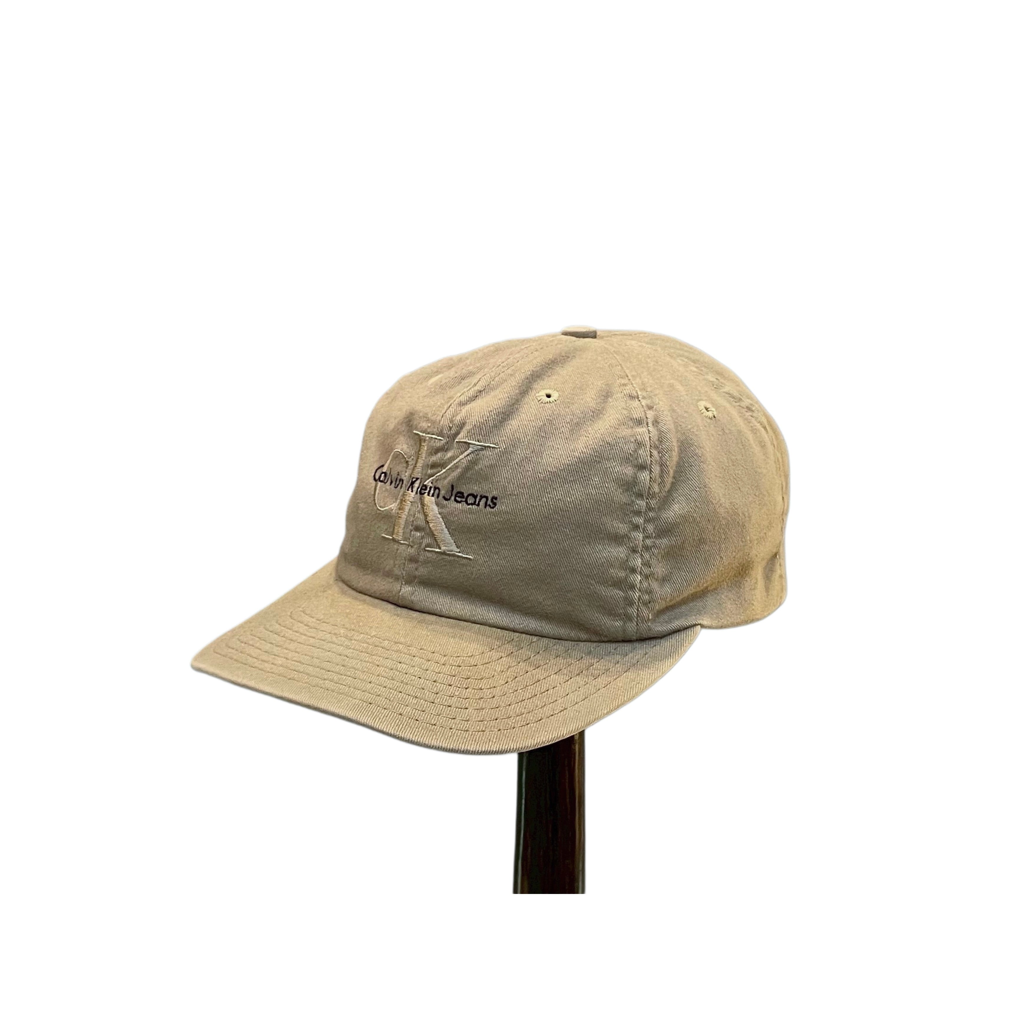 90s Calvin Klain sand beige cotton embroidery logo cap