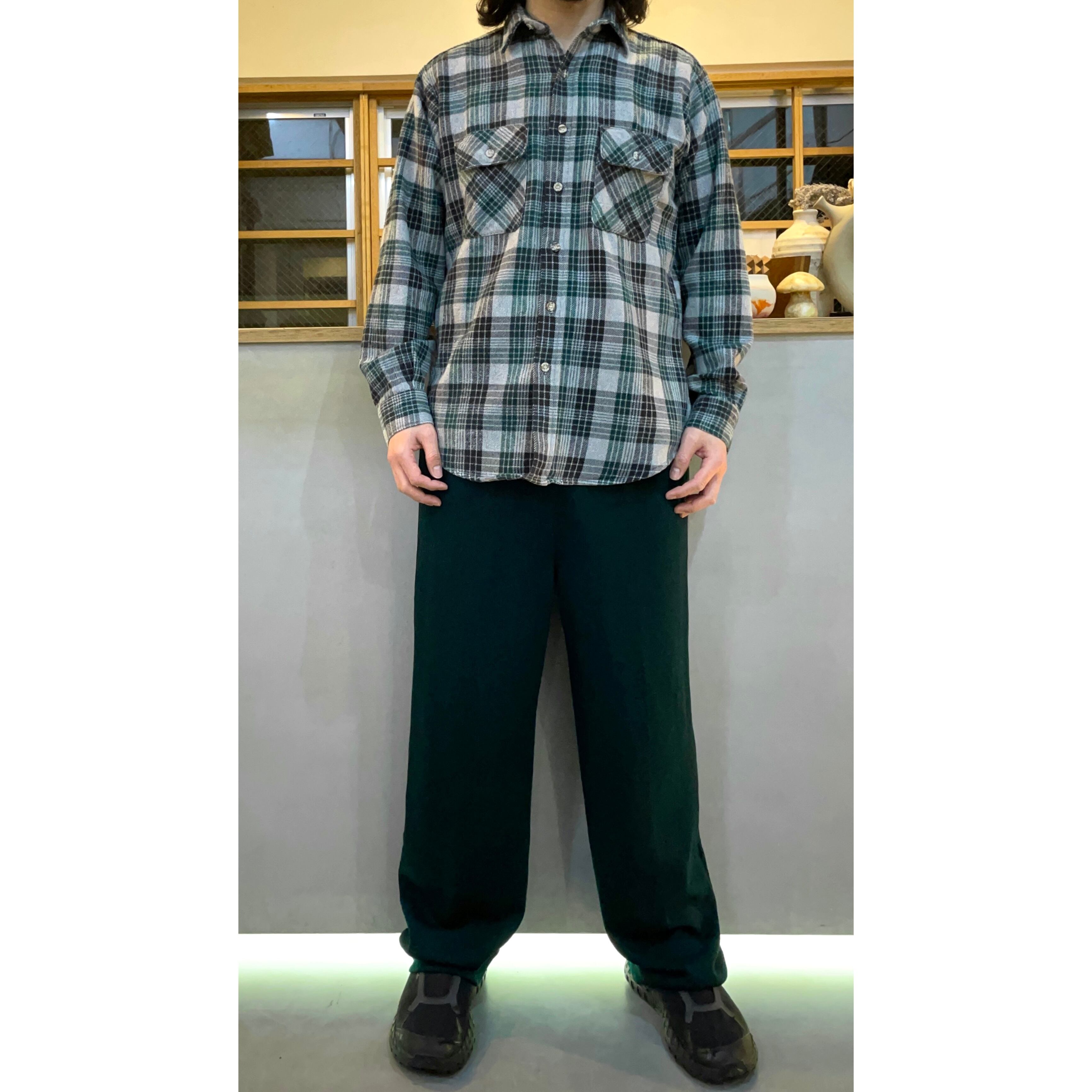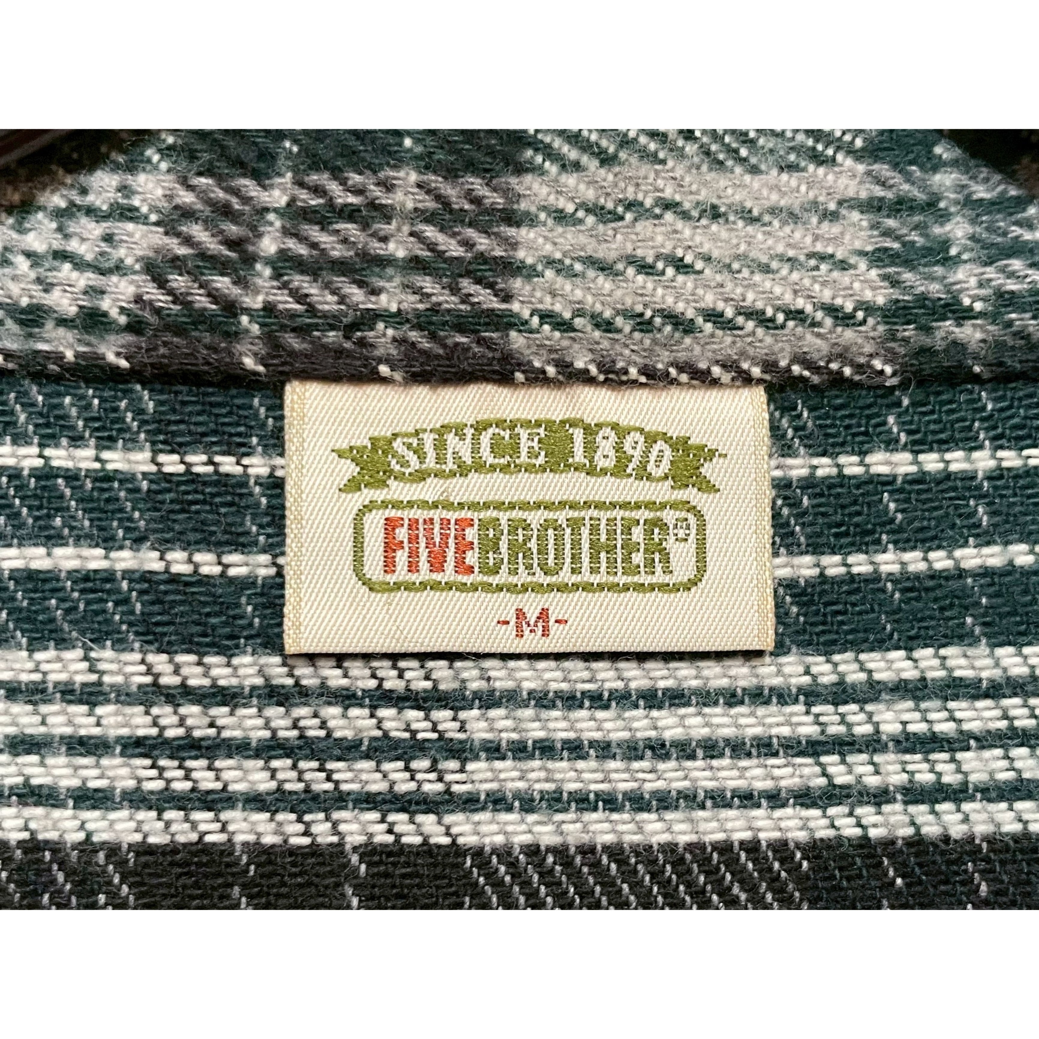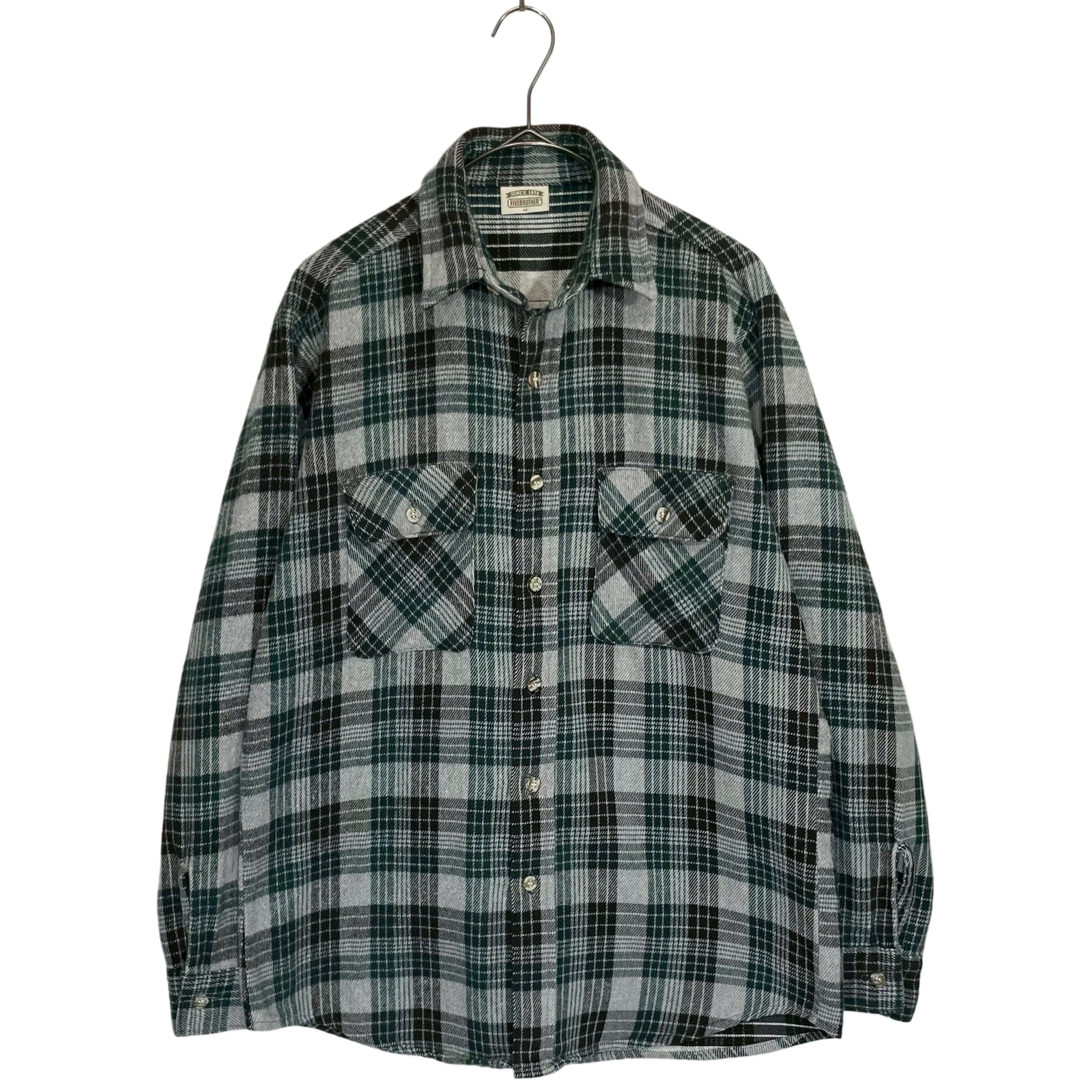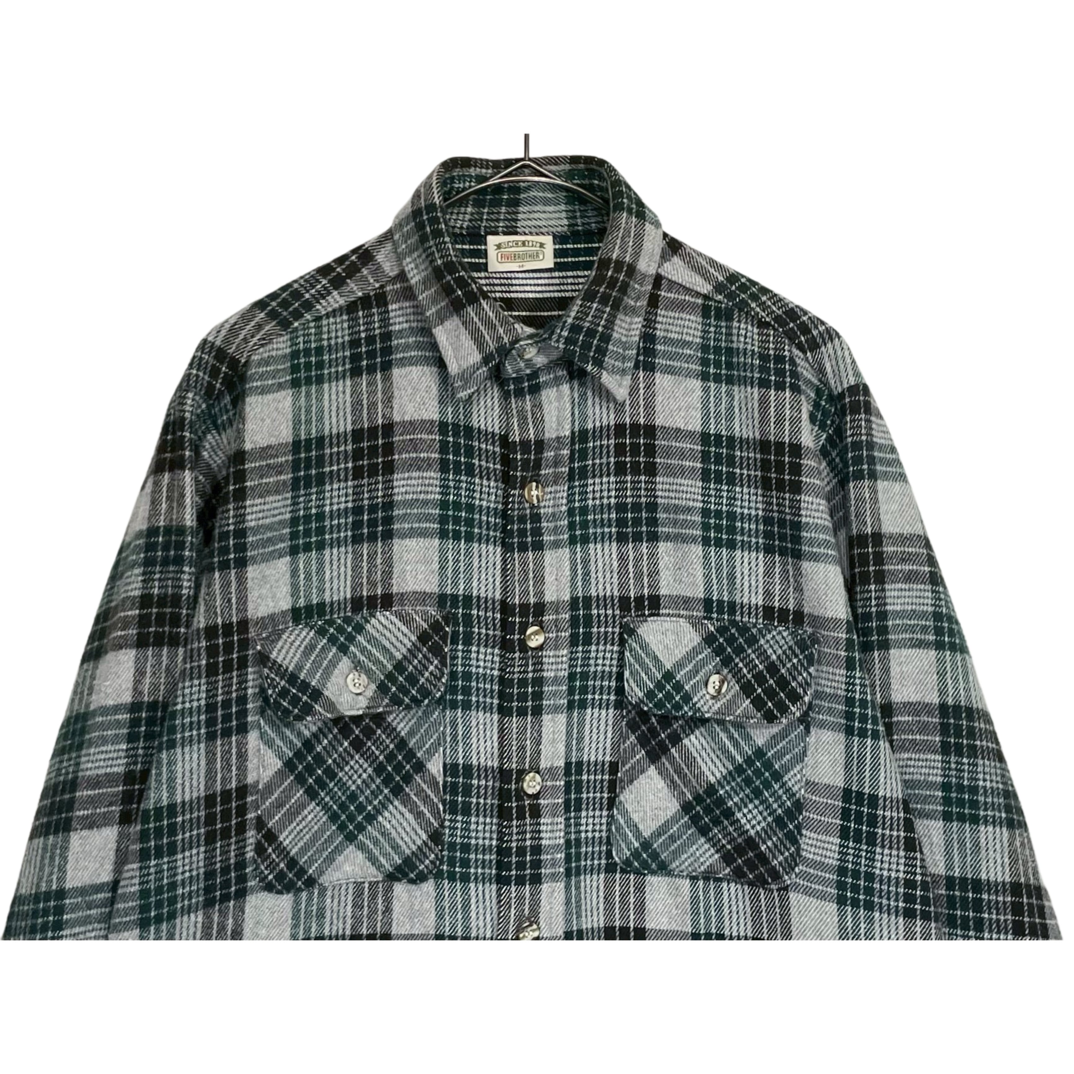 90s FIVE BROTHER greenxblack×grey plaid cotton heavy flannel shirt