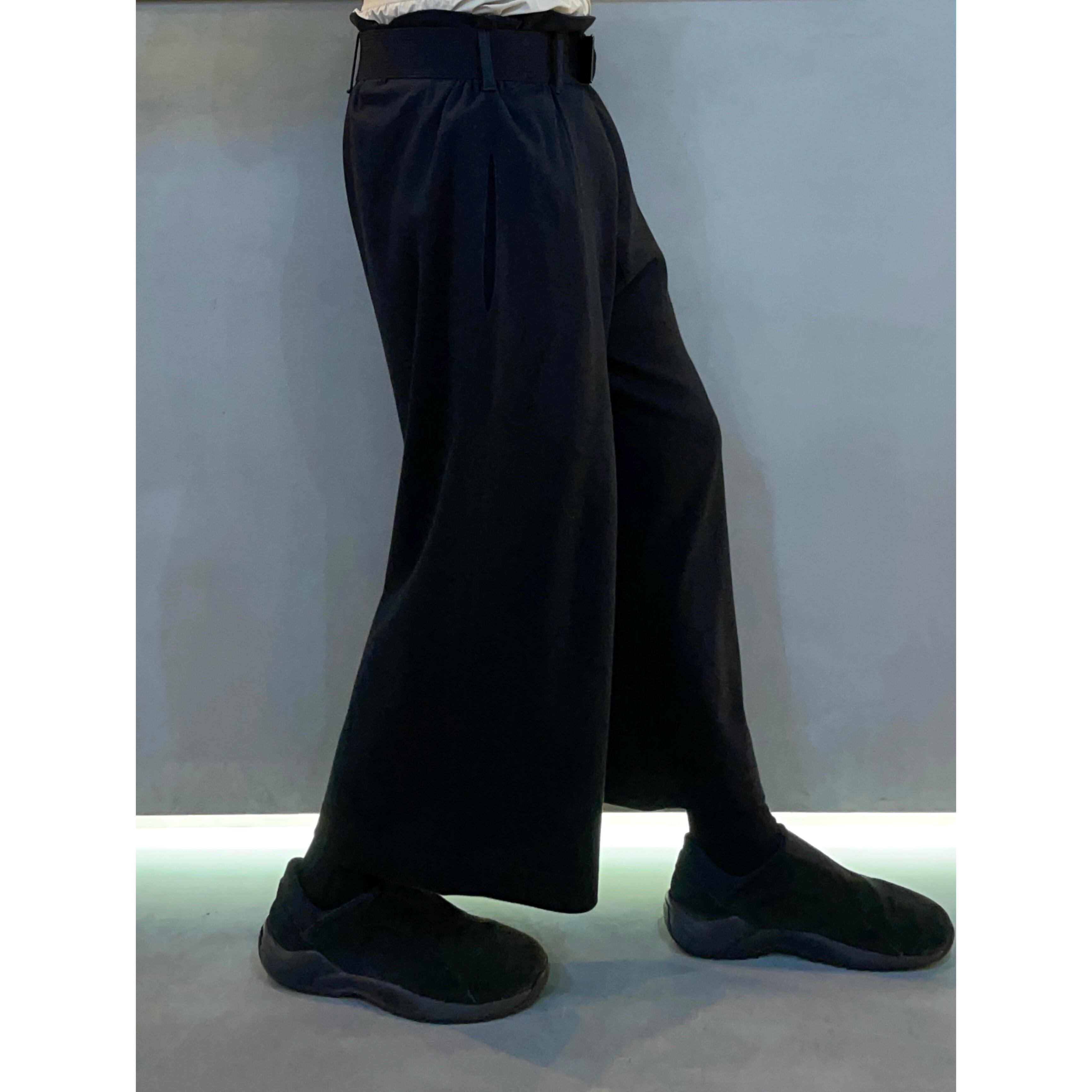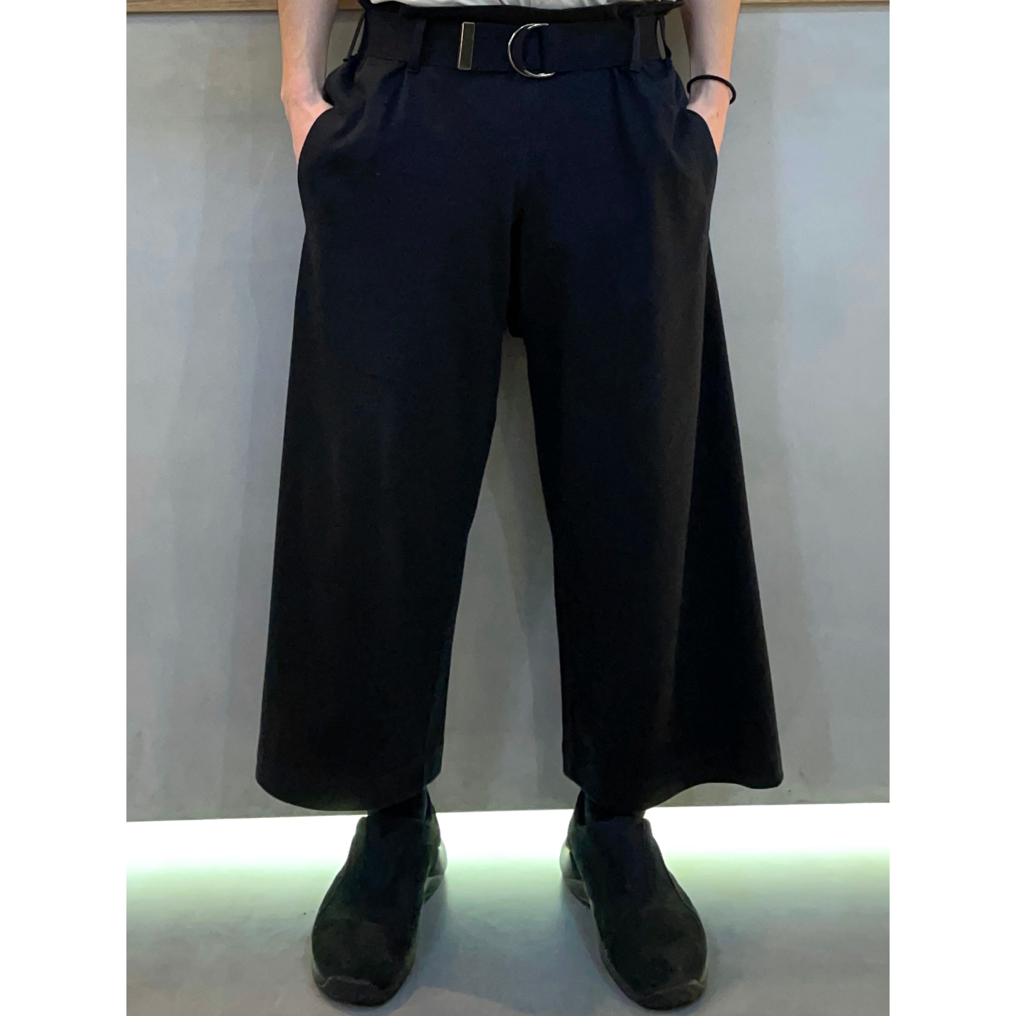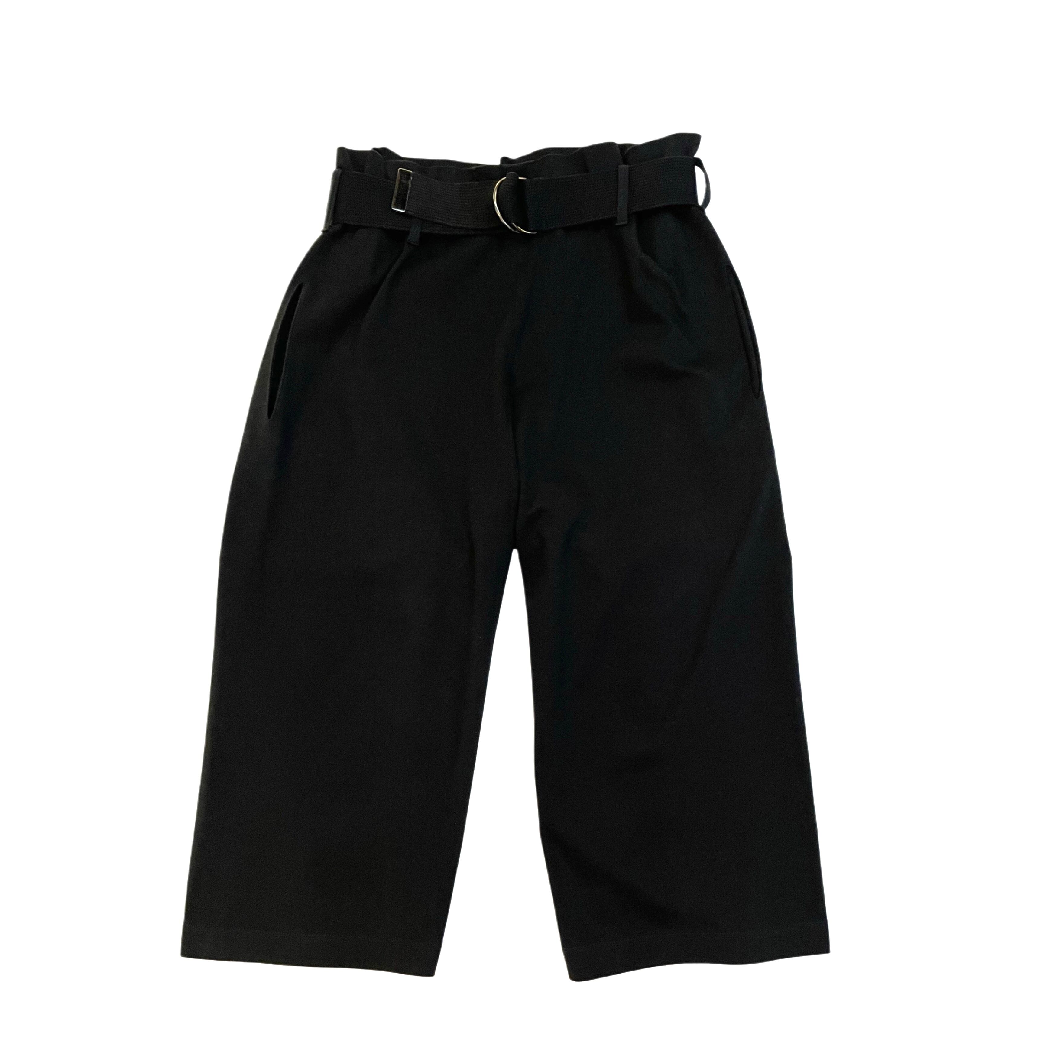 80s ISSEY MIYAKE black cotton plain jersey fabric big waist buggy cropped velted pants