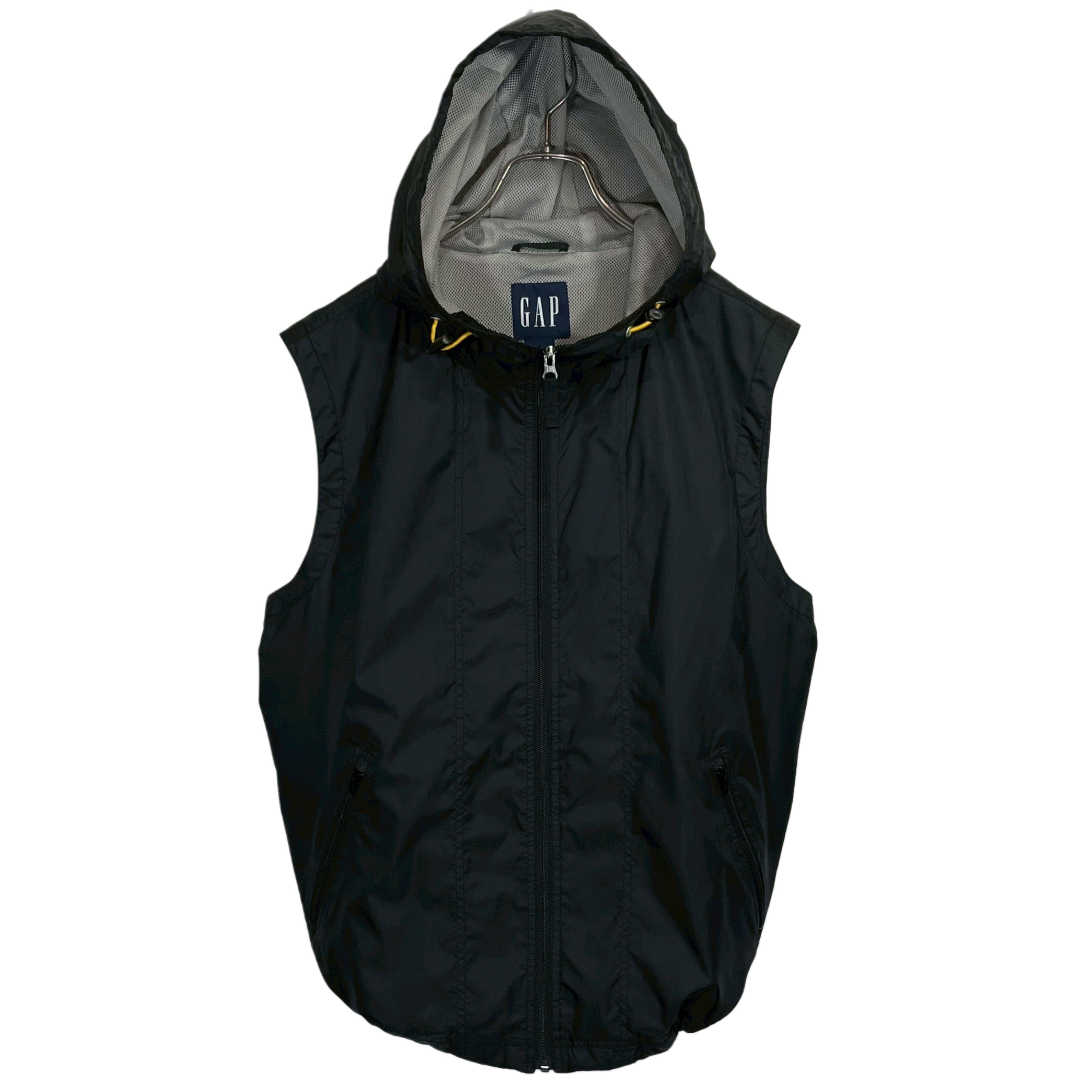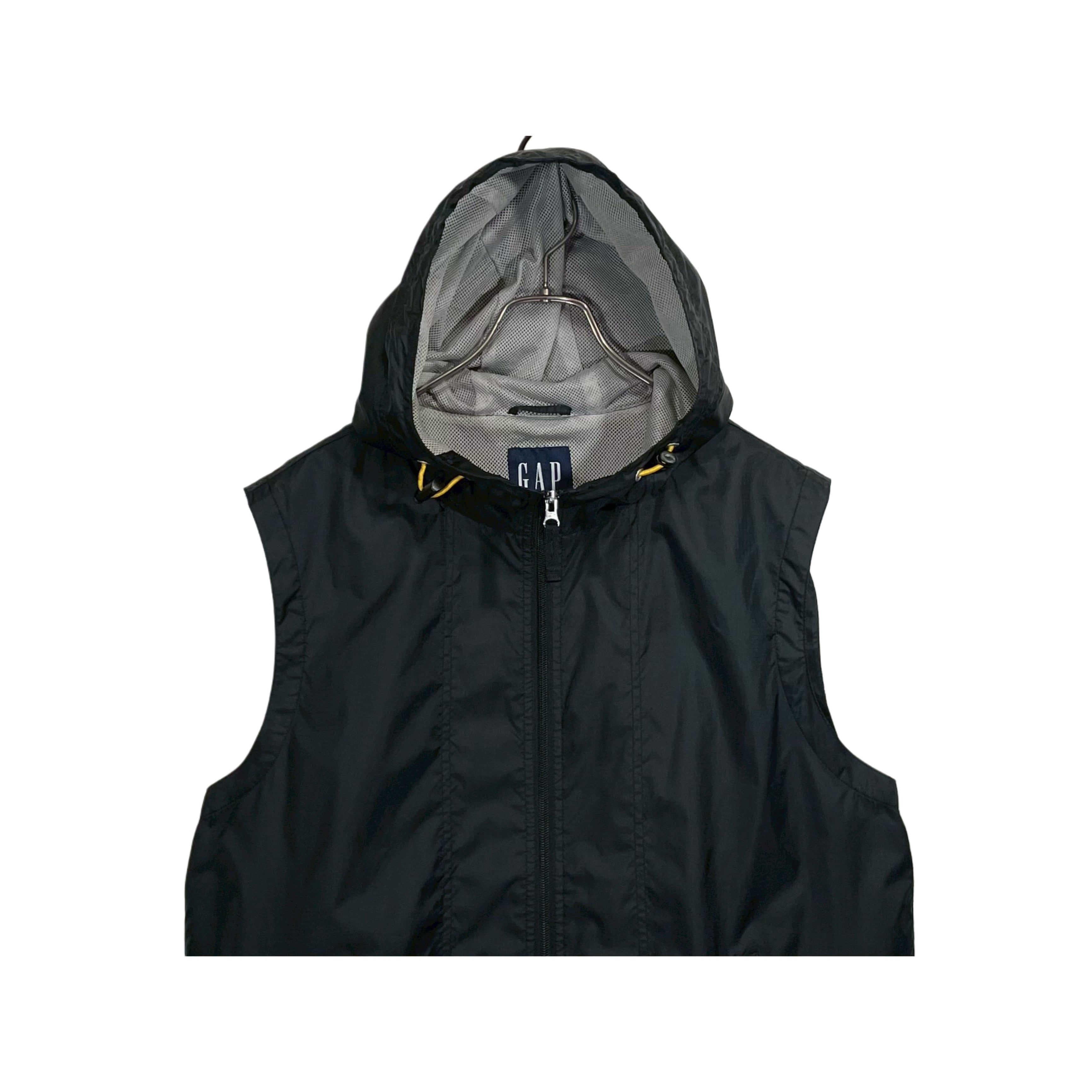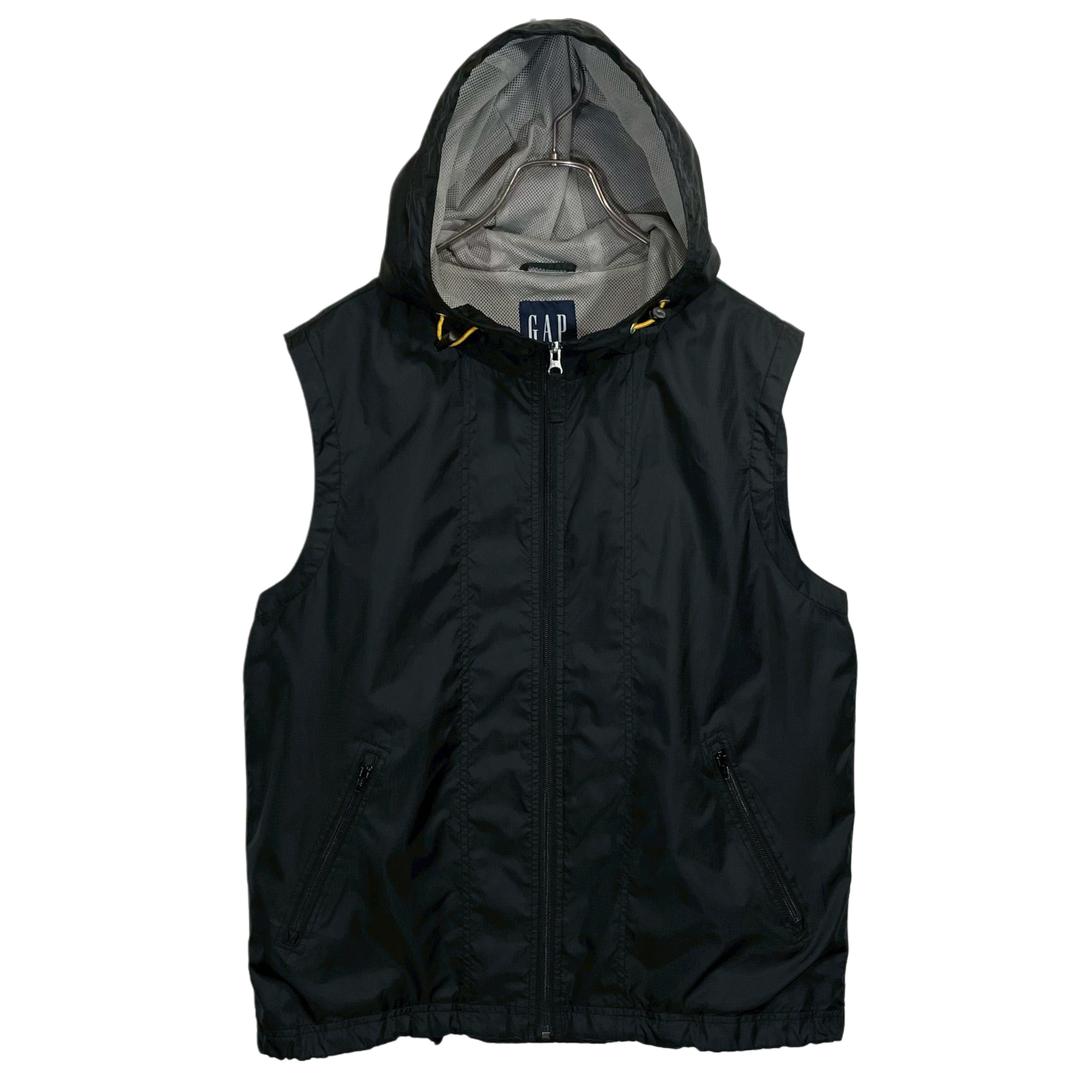 90-00s GAP black rip-stop nylon mesh lined zip up hoodf vest