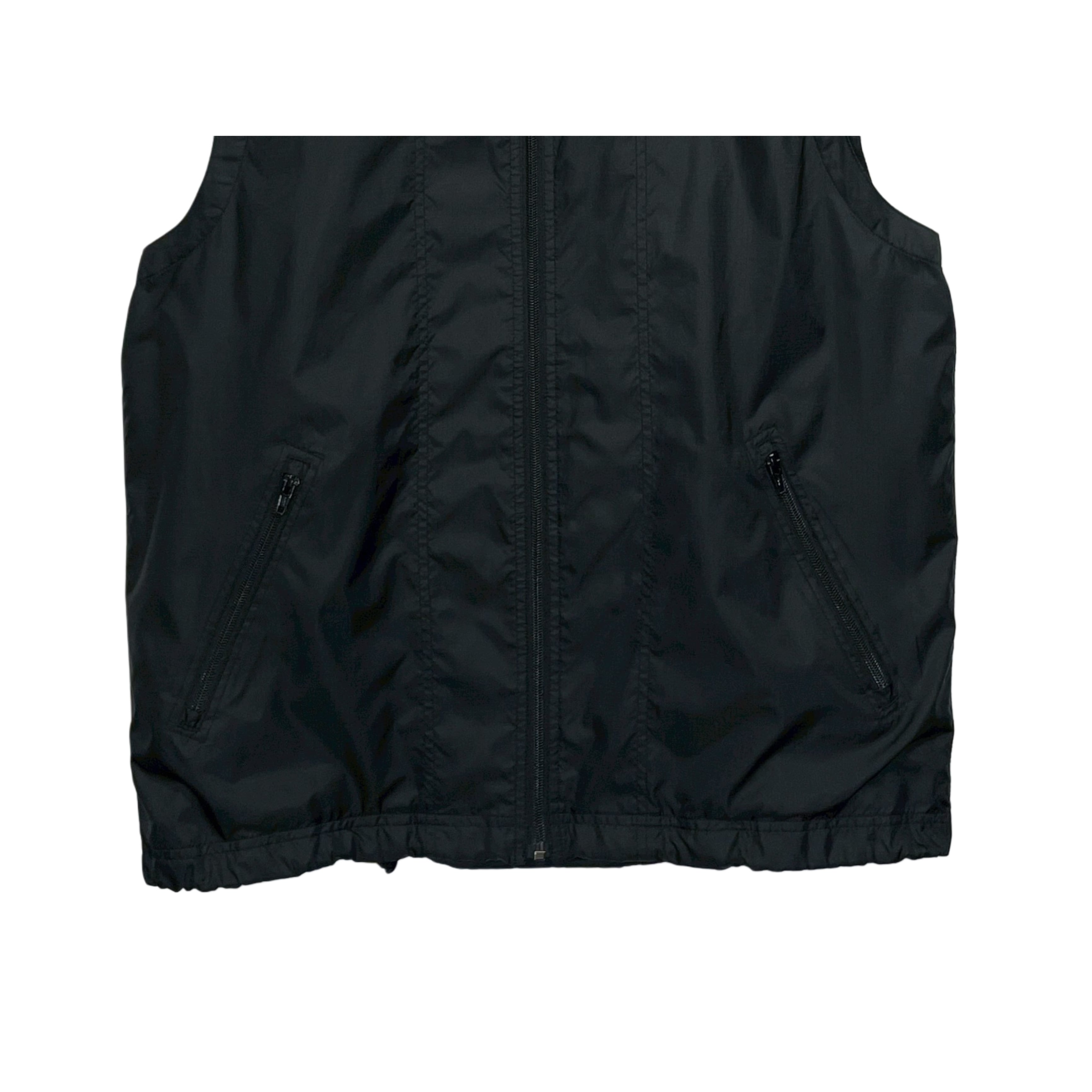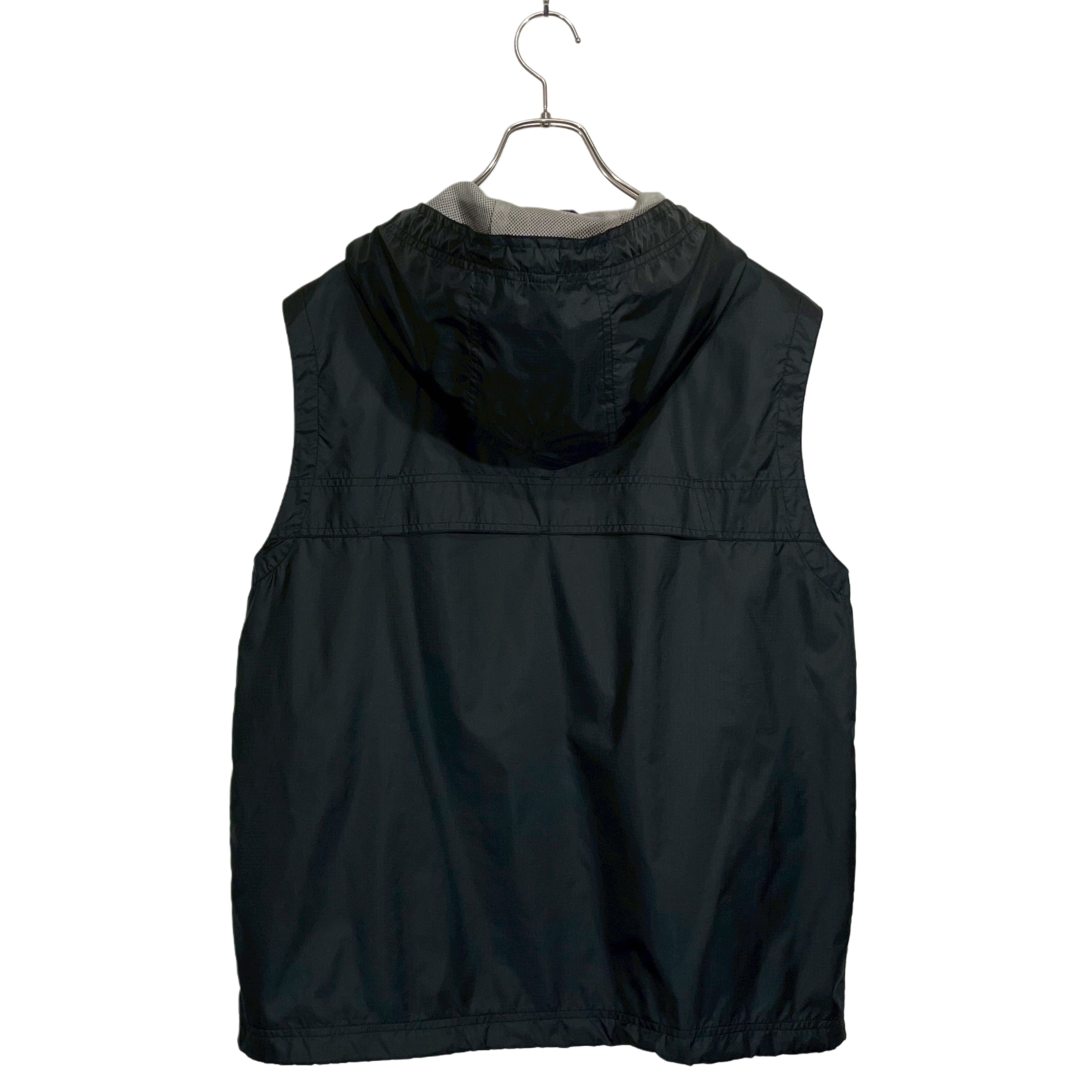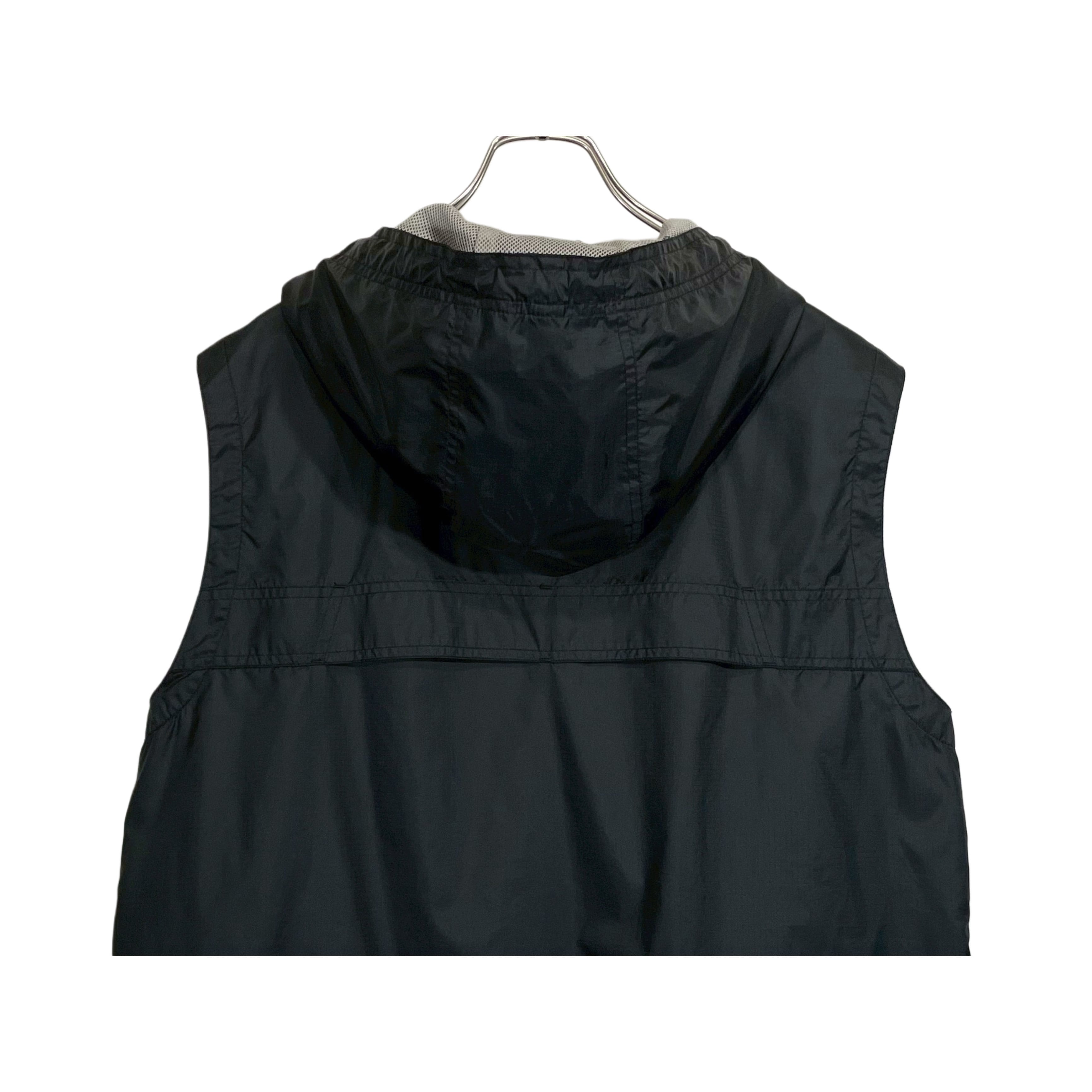 90-00s GAP black rip-stop nylon mesh lined zip up hoodf vest