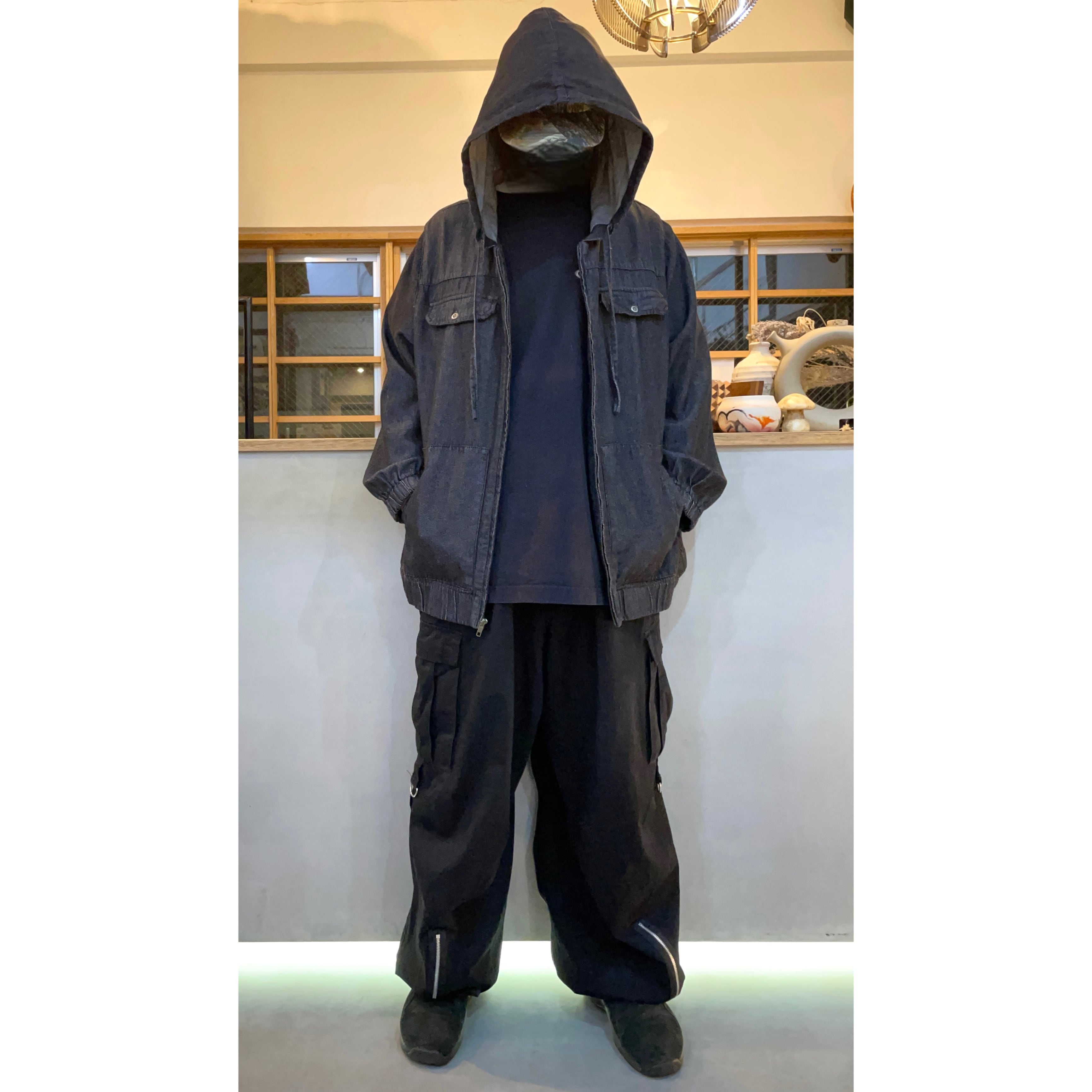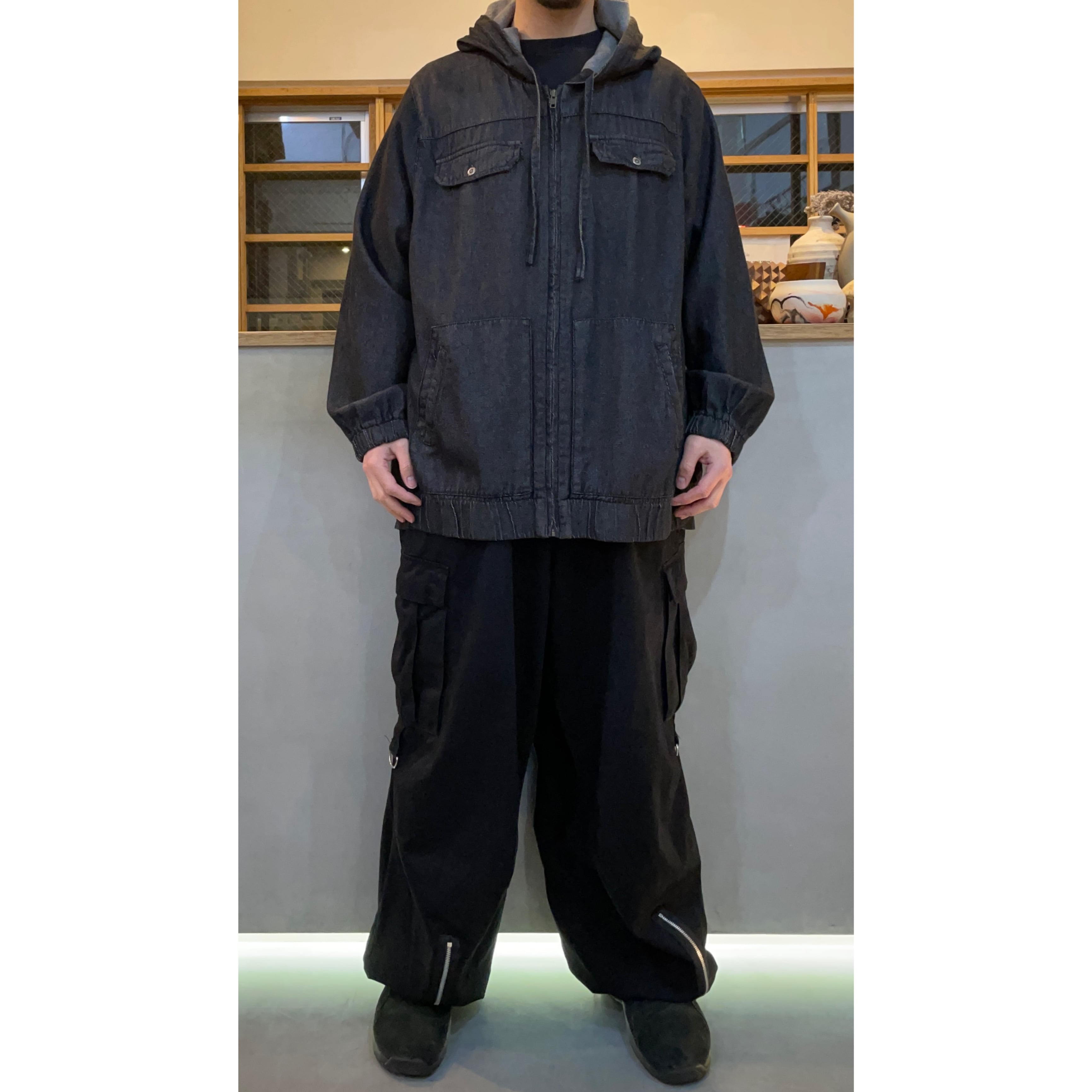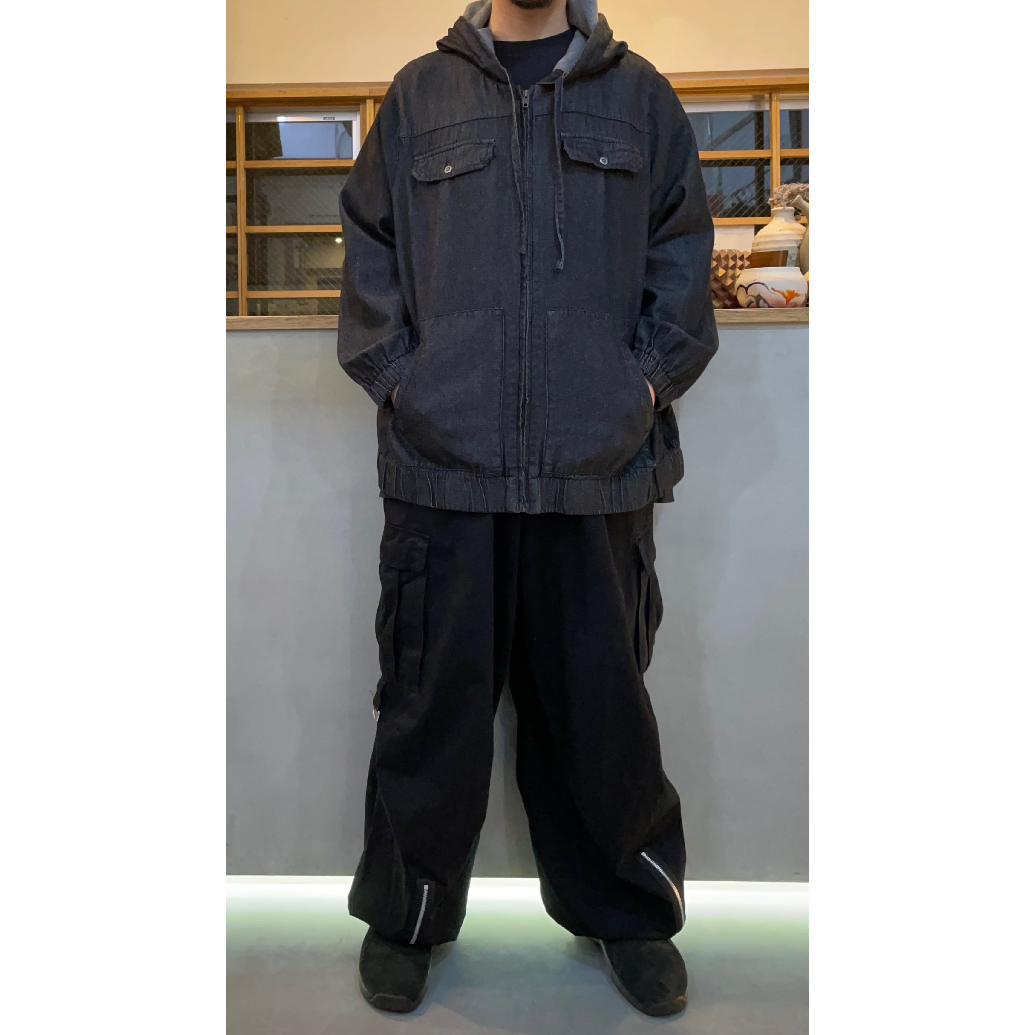 ブラックデニムジップアップフーデットジャケット
