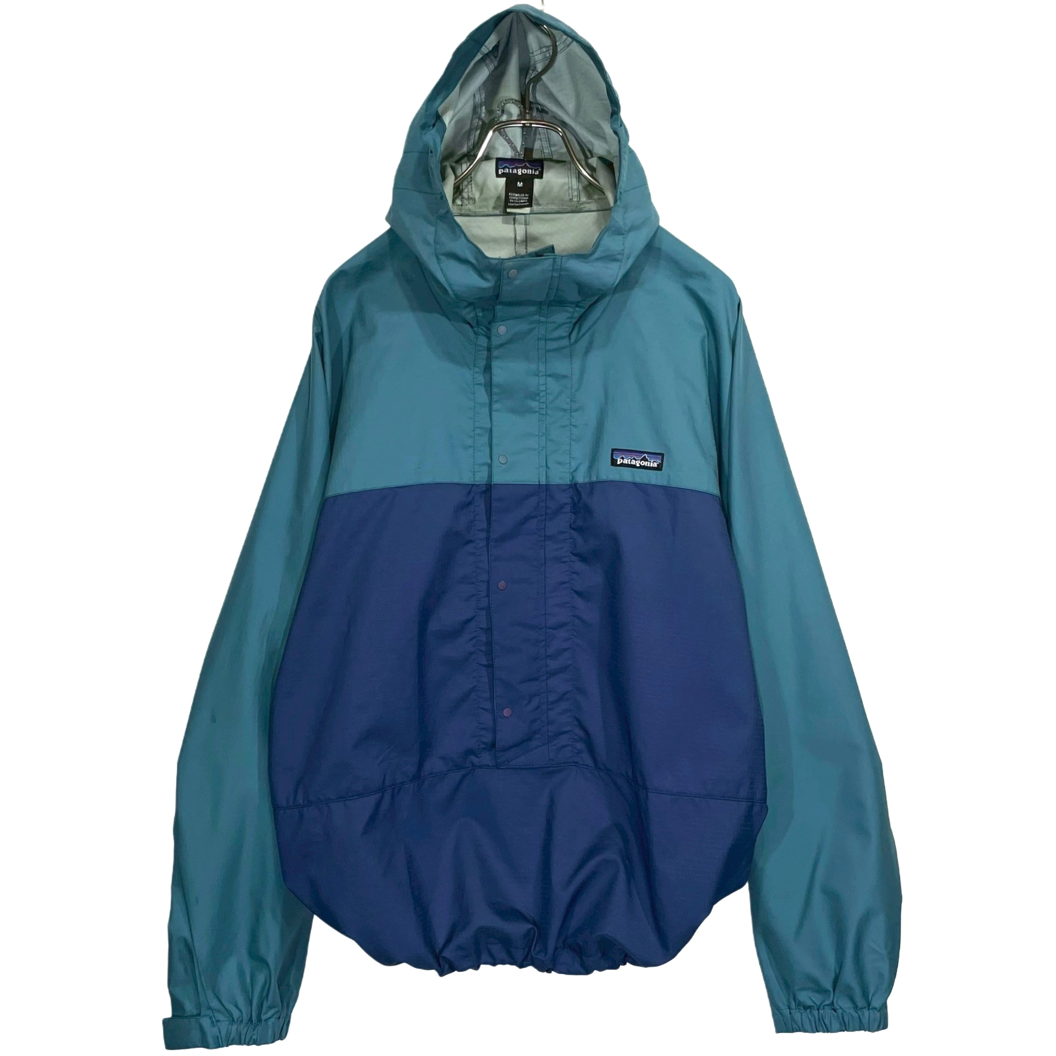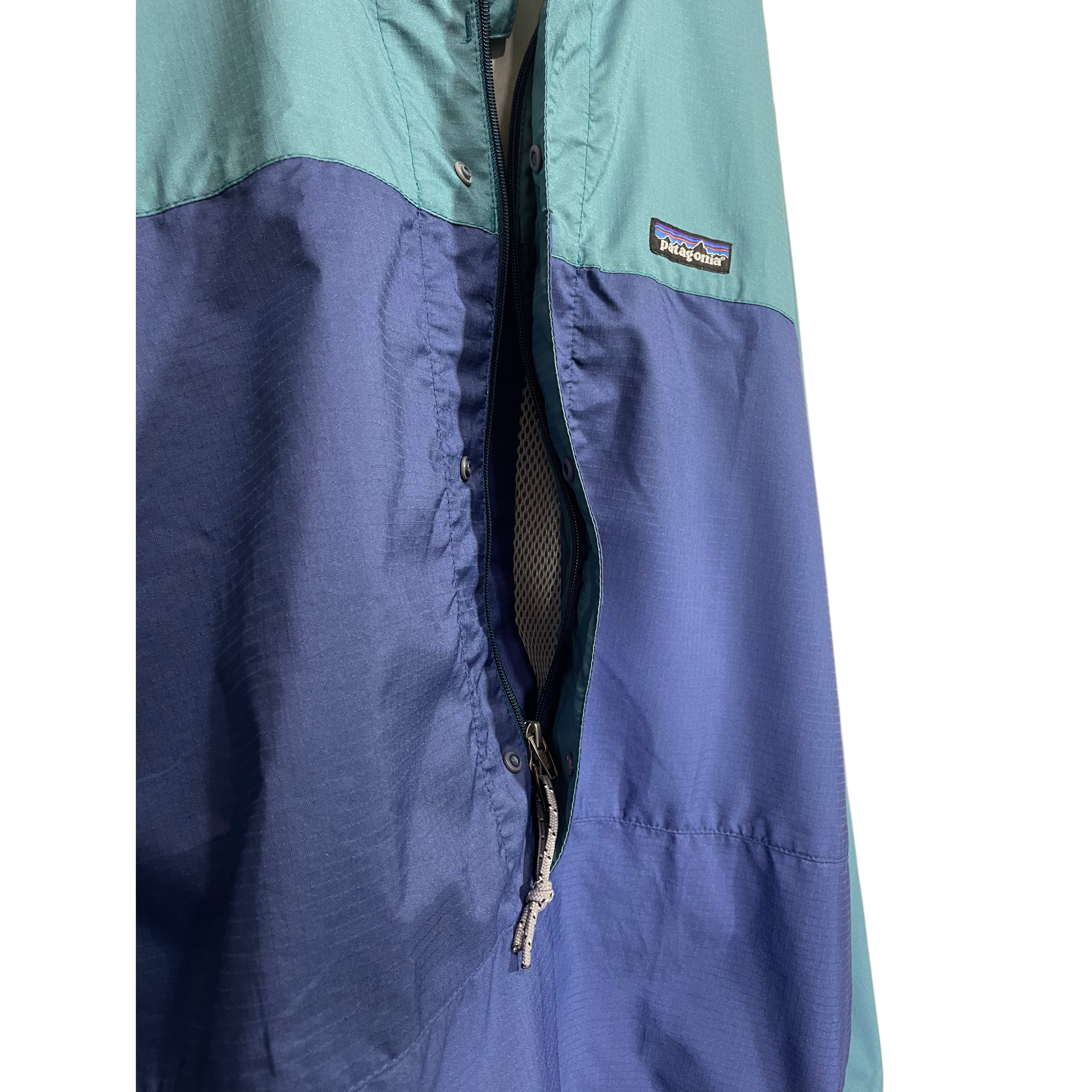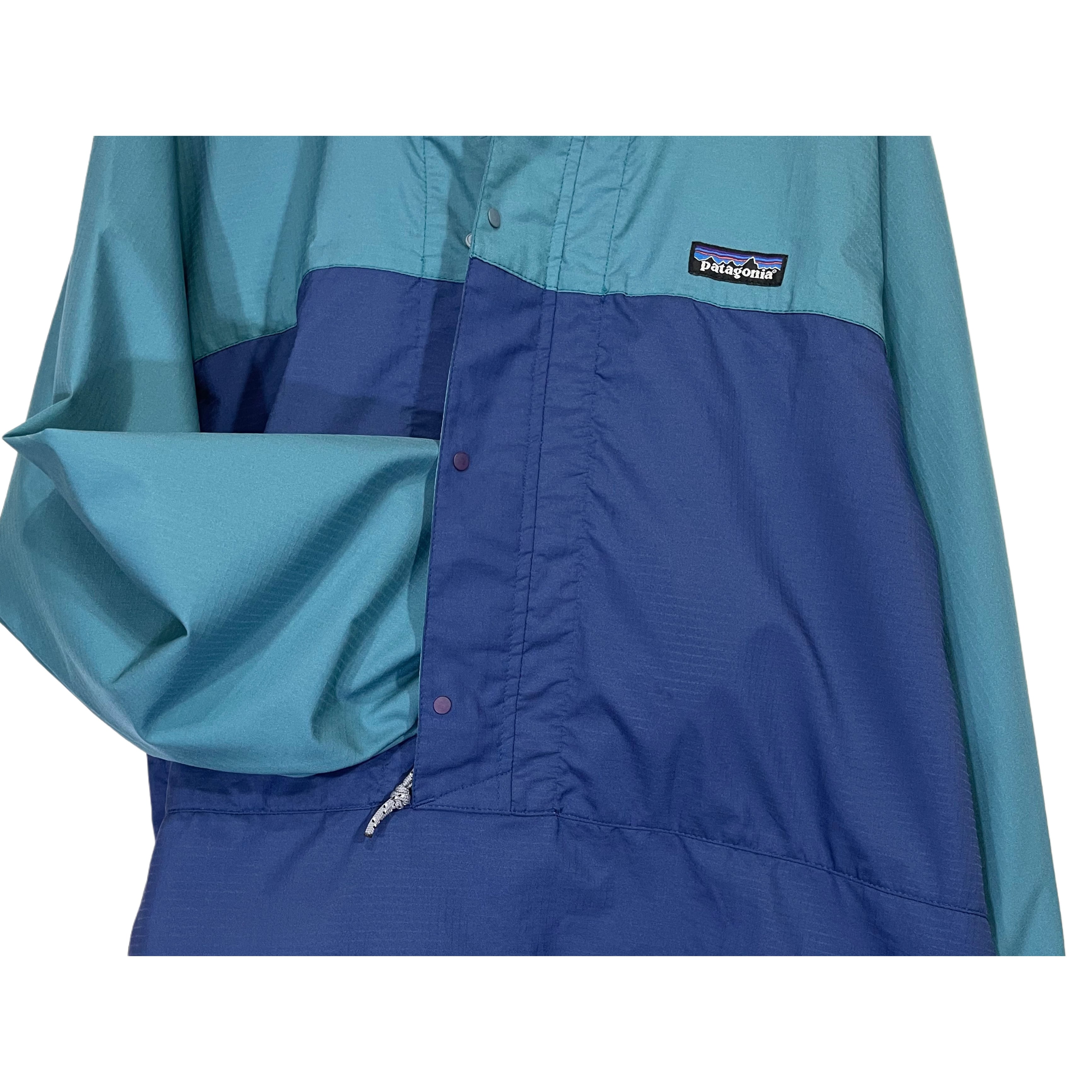 90s patagonia PNEWMATIC PULLOVER turquoise/navy polyester snap botton fly front half zip anolak pullover
