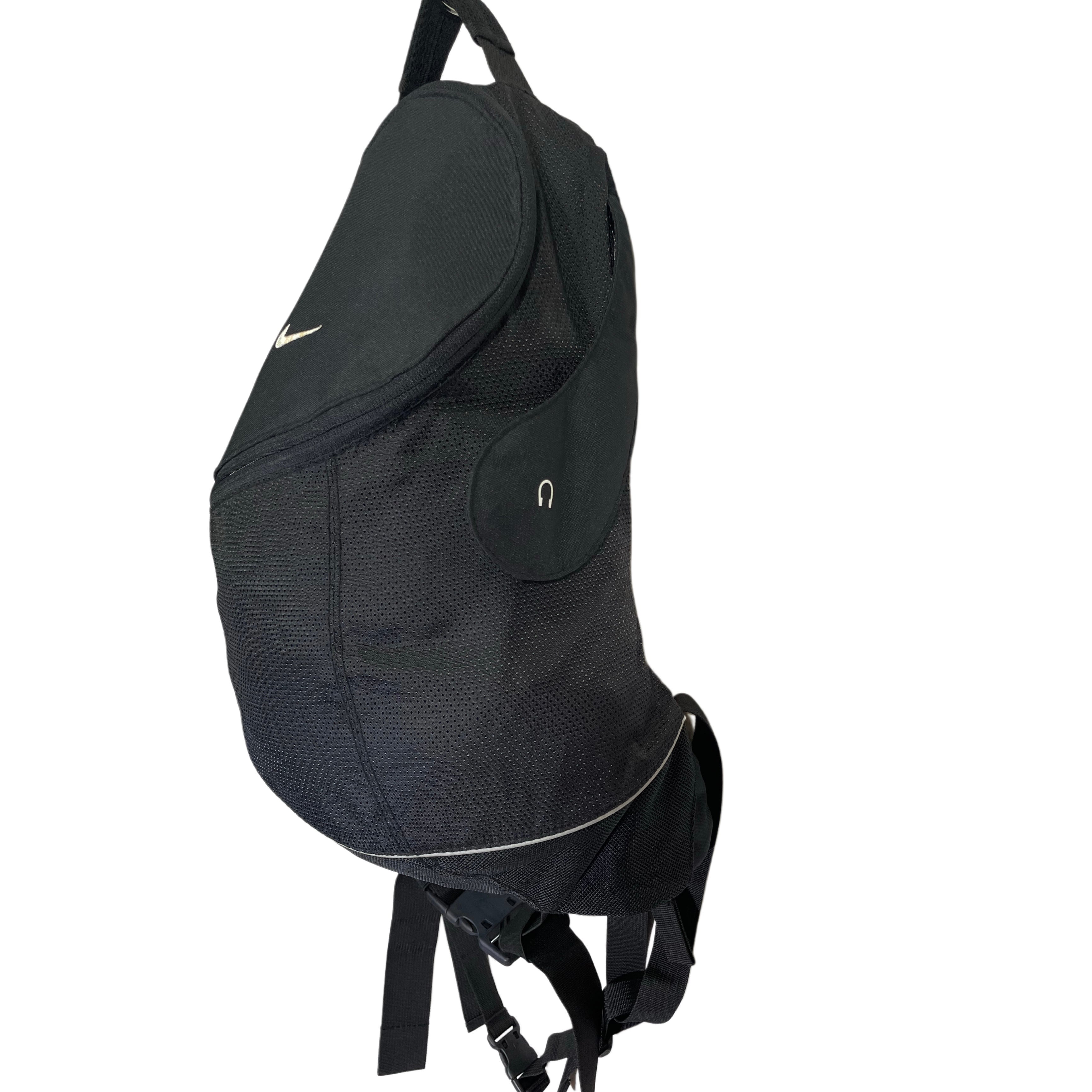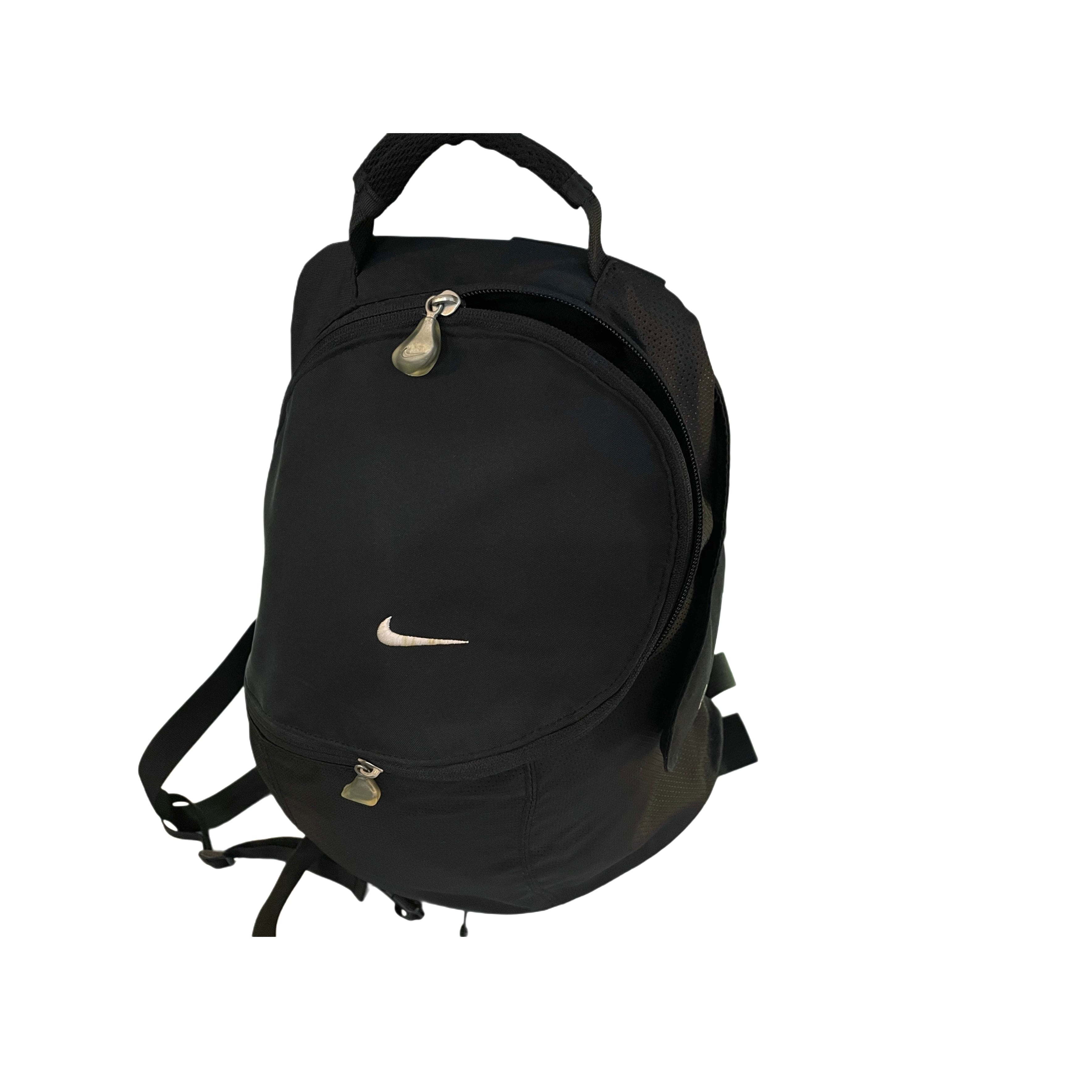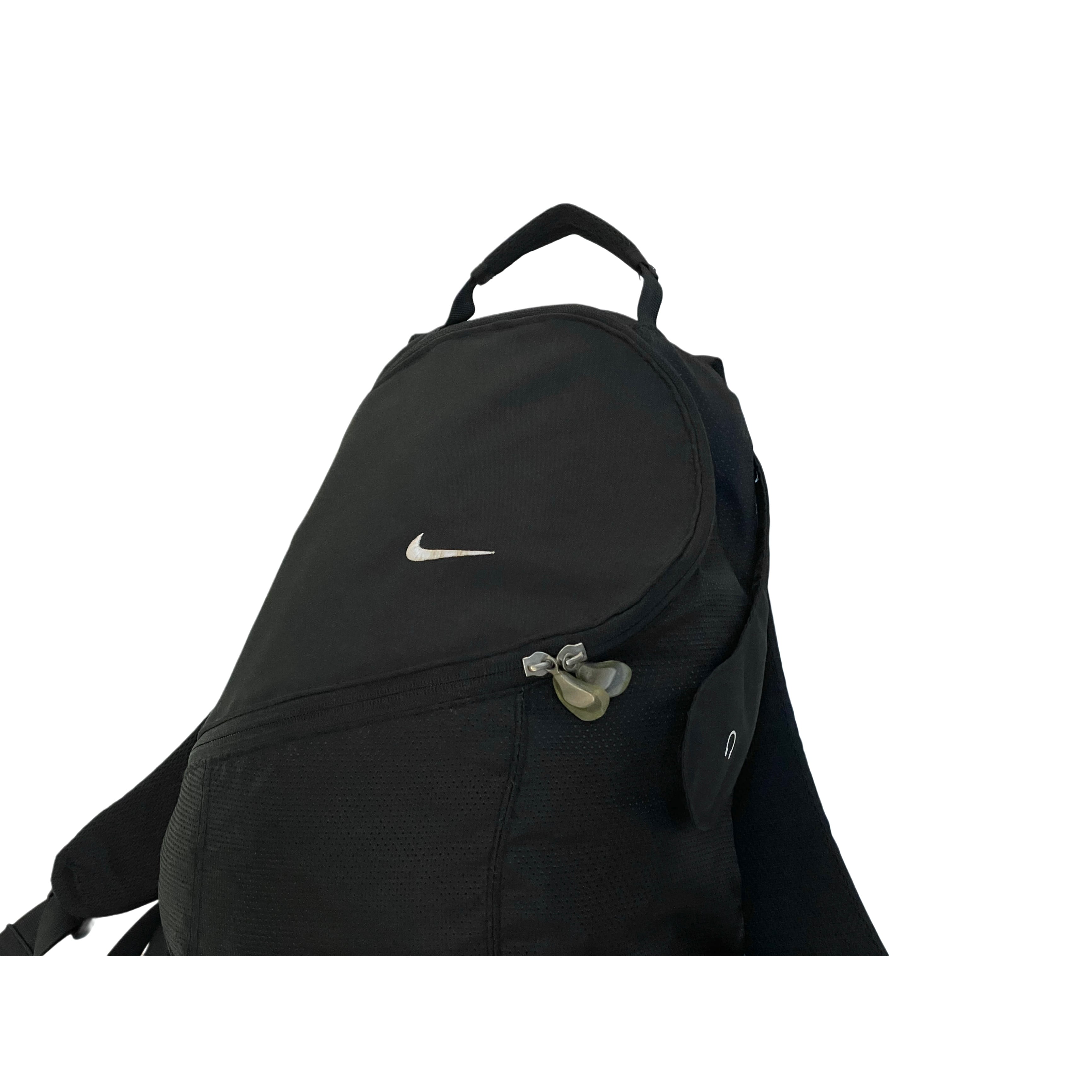 90s- NIKE black polyesterxnylon curved zip back pack