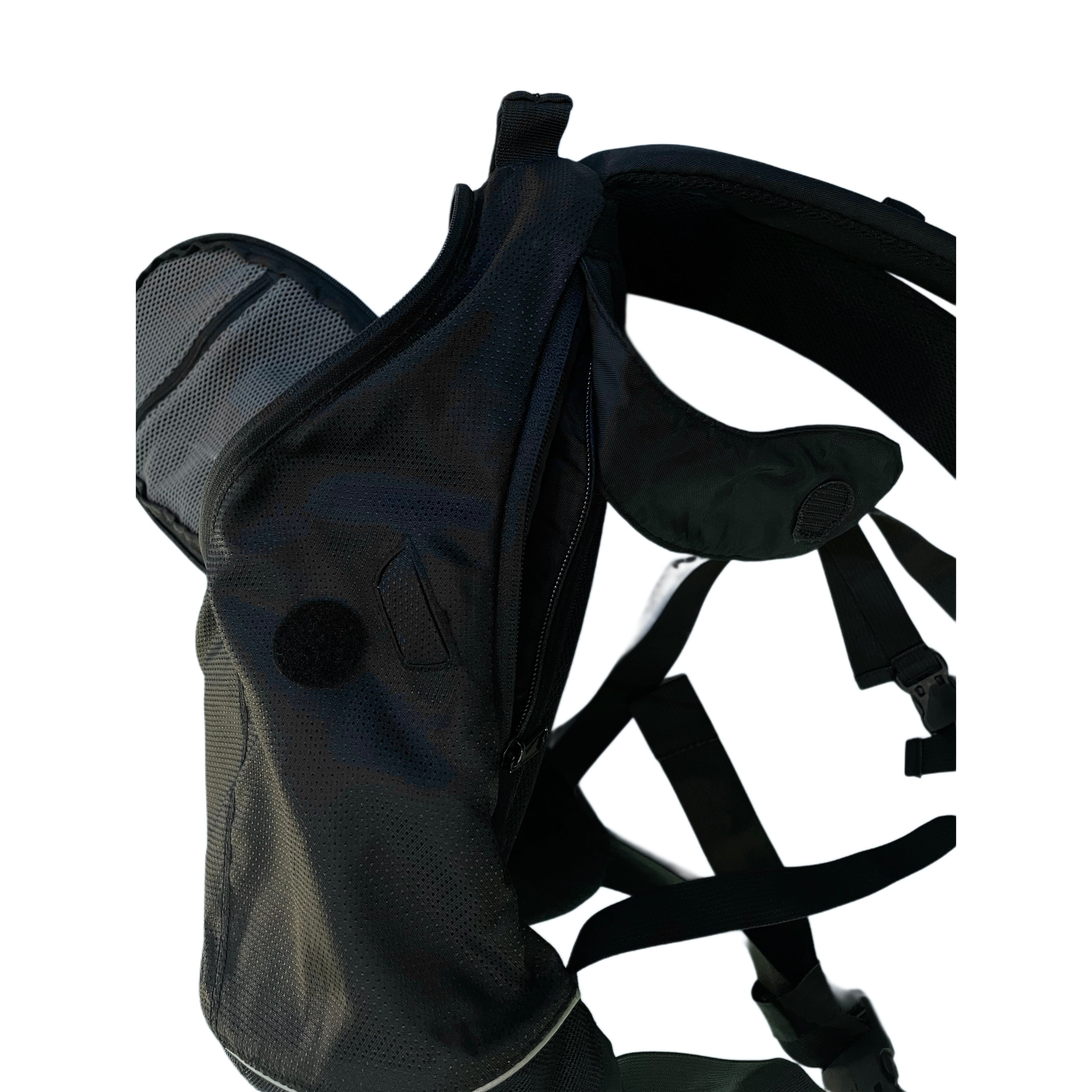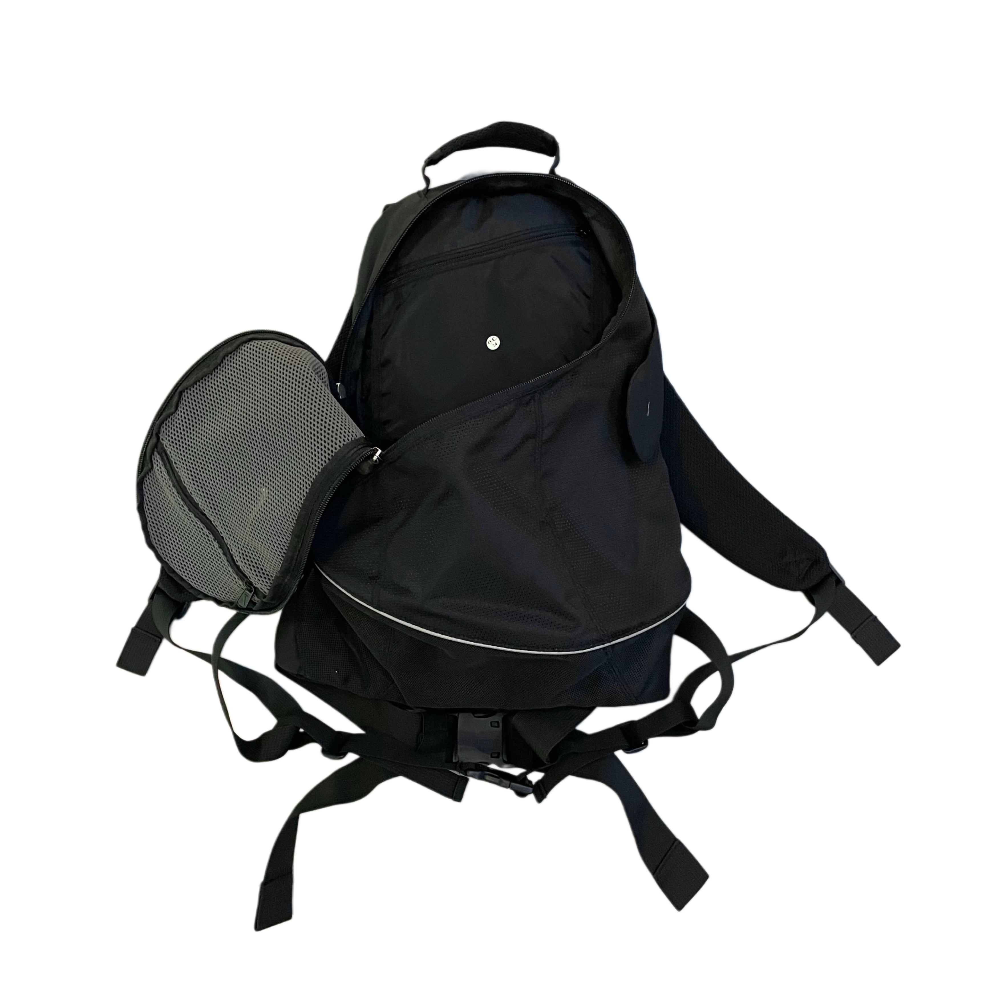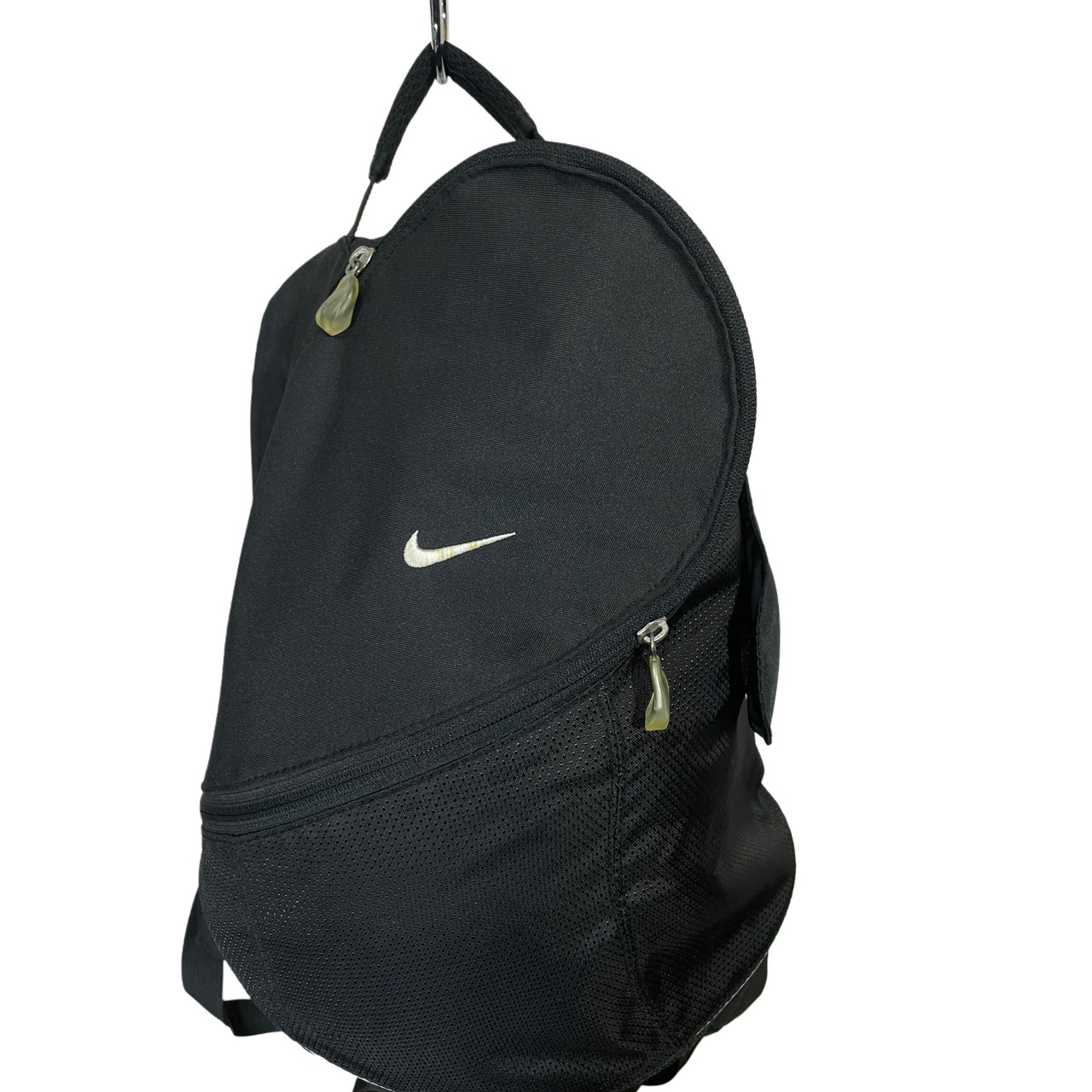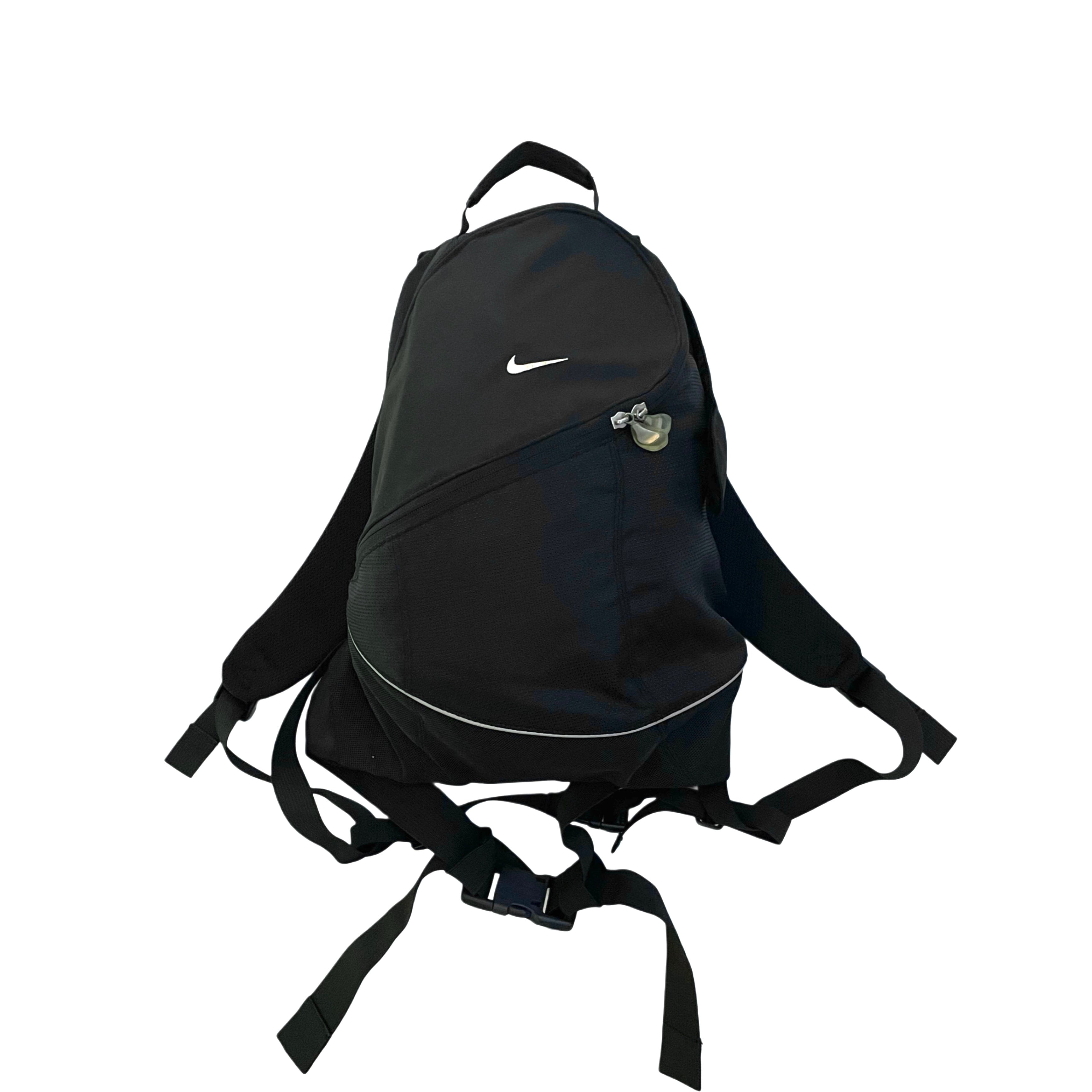 90s- NIKE black polyesterxnylon curved zip back pack