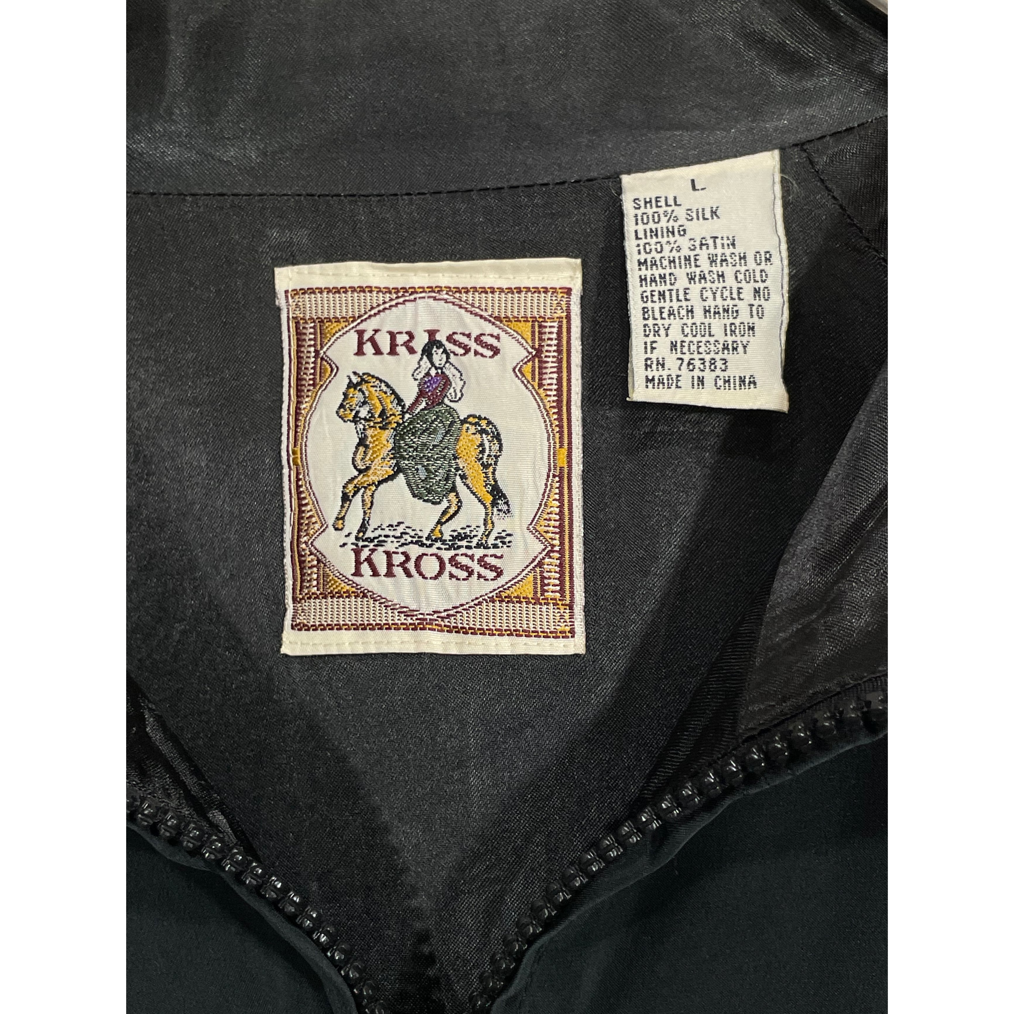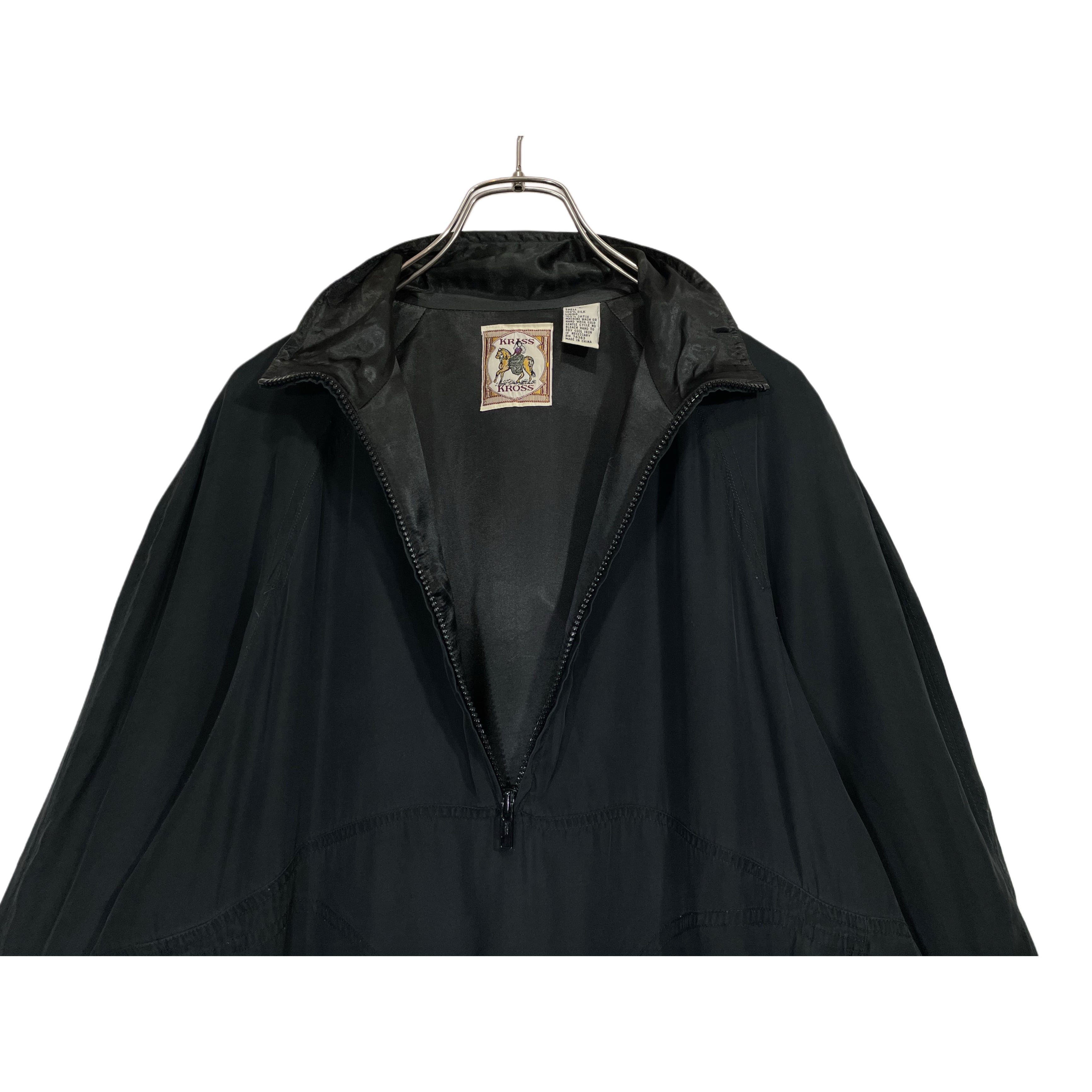 80-90s KRISS KROSS black silk satin lined hi neck half zip pullover