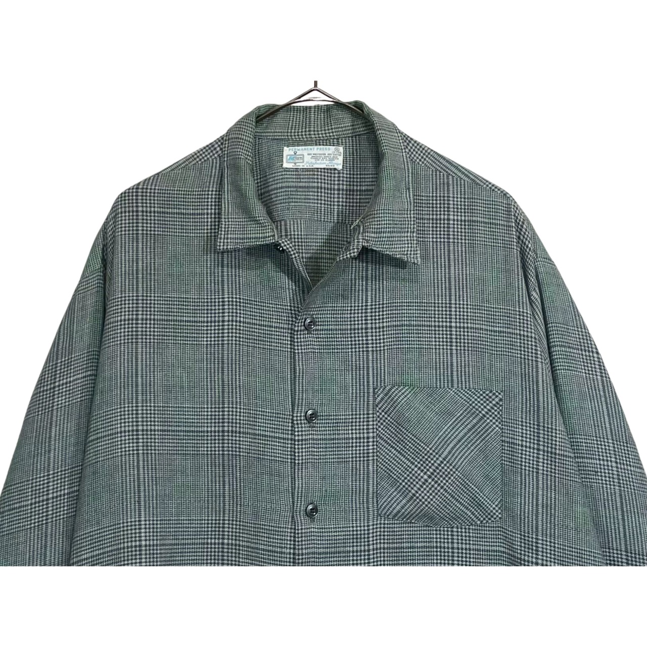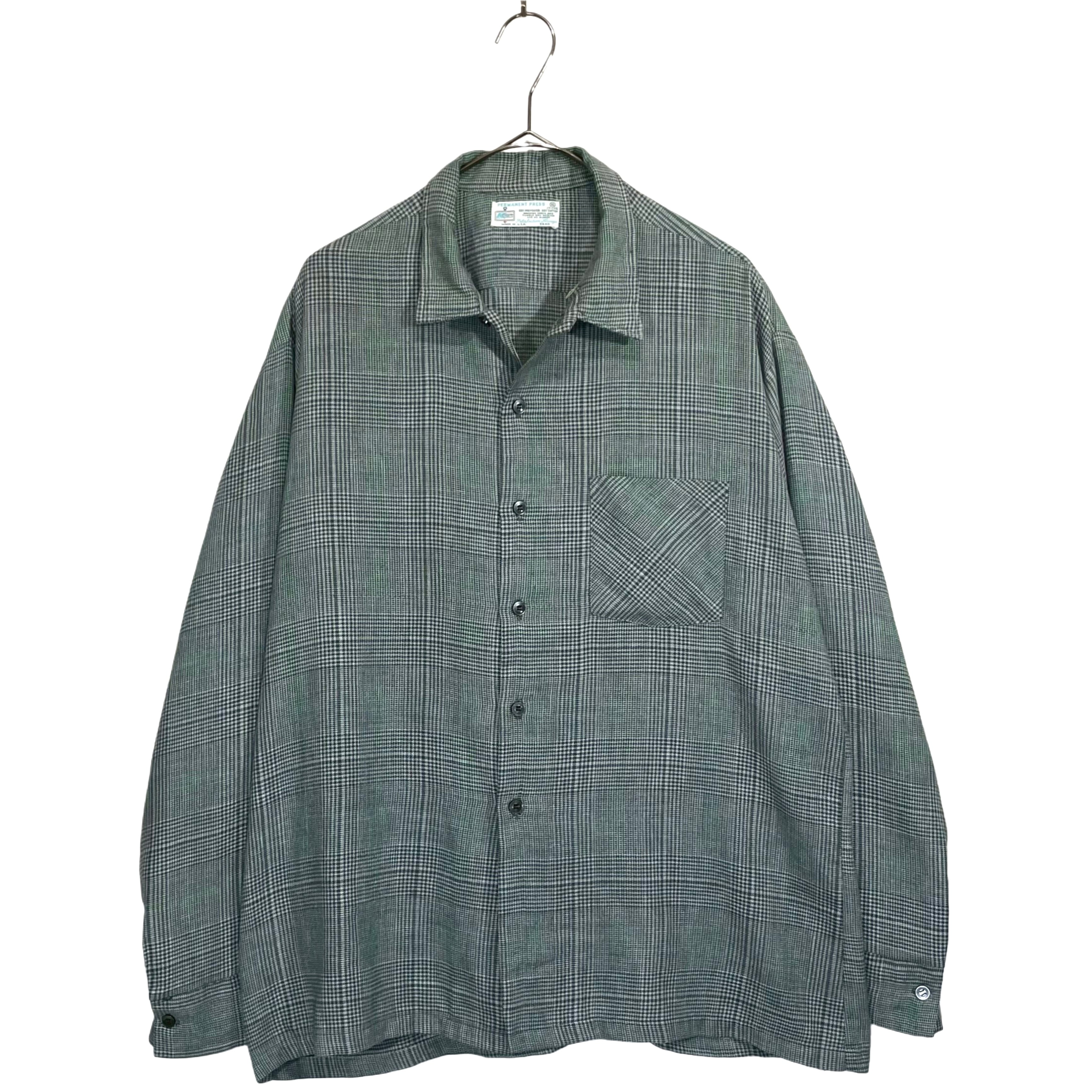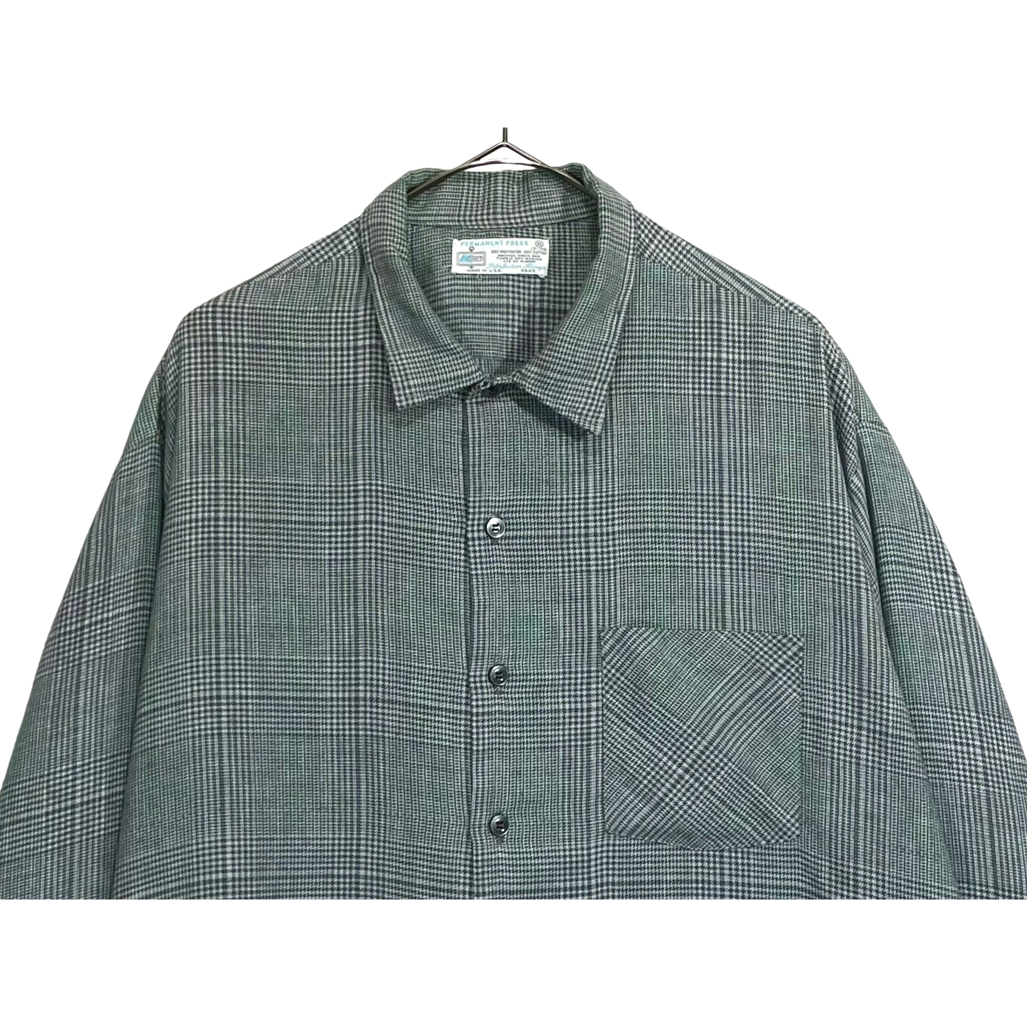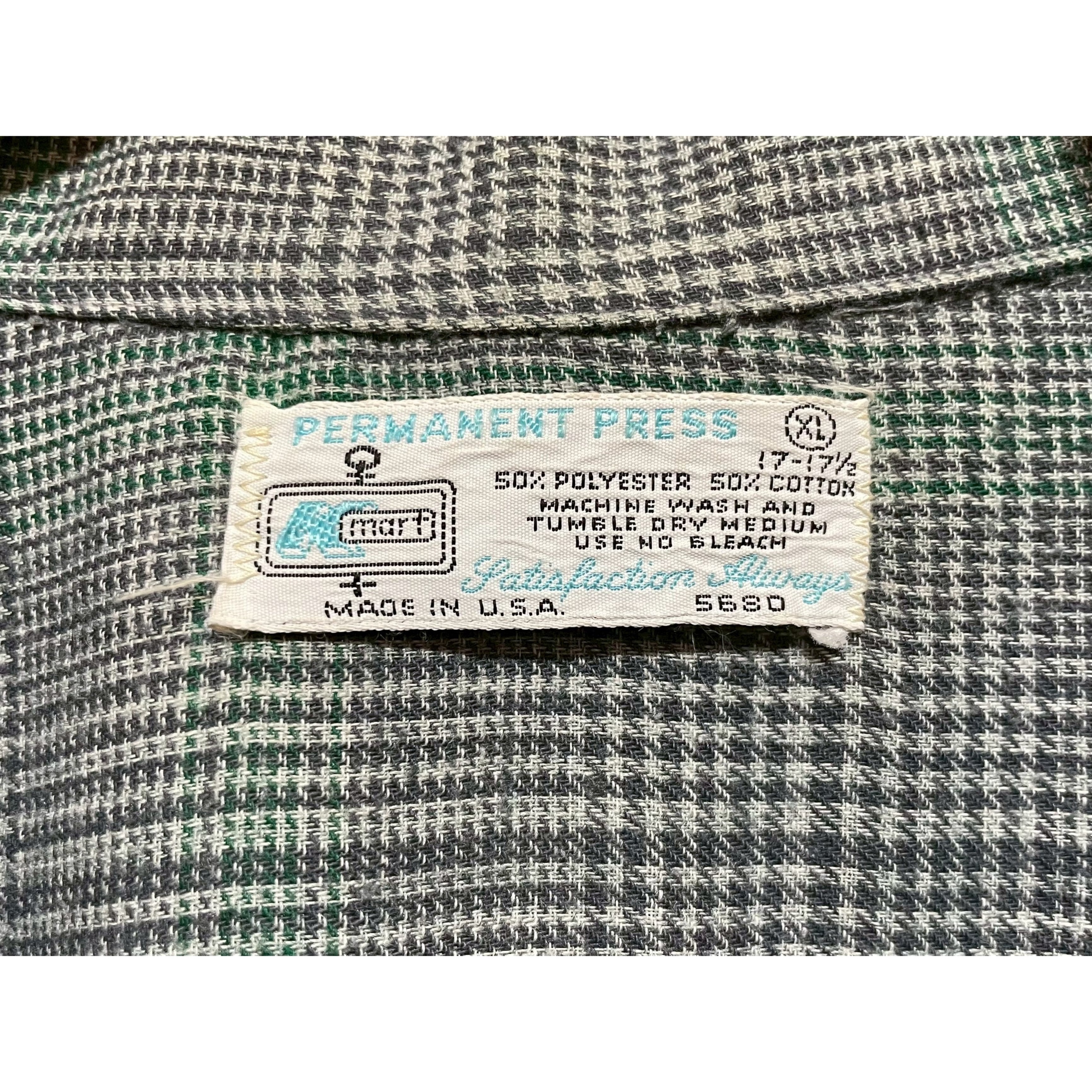 70s K-mart BLACK/grey/olive plaid cottonxpolyester open collar box shirt