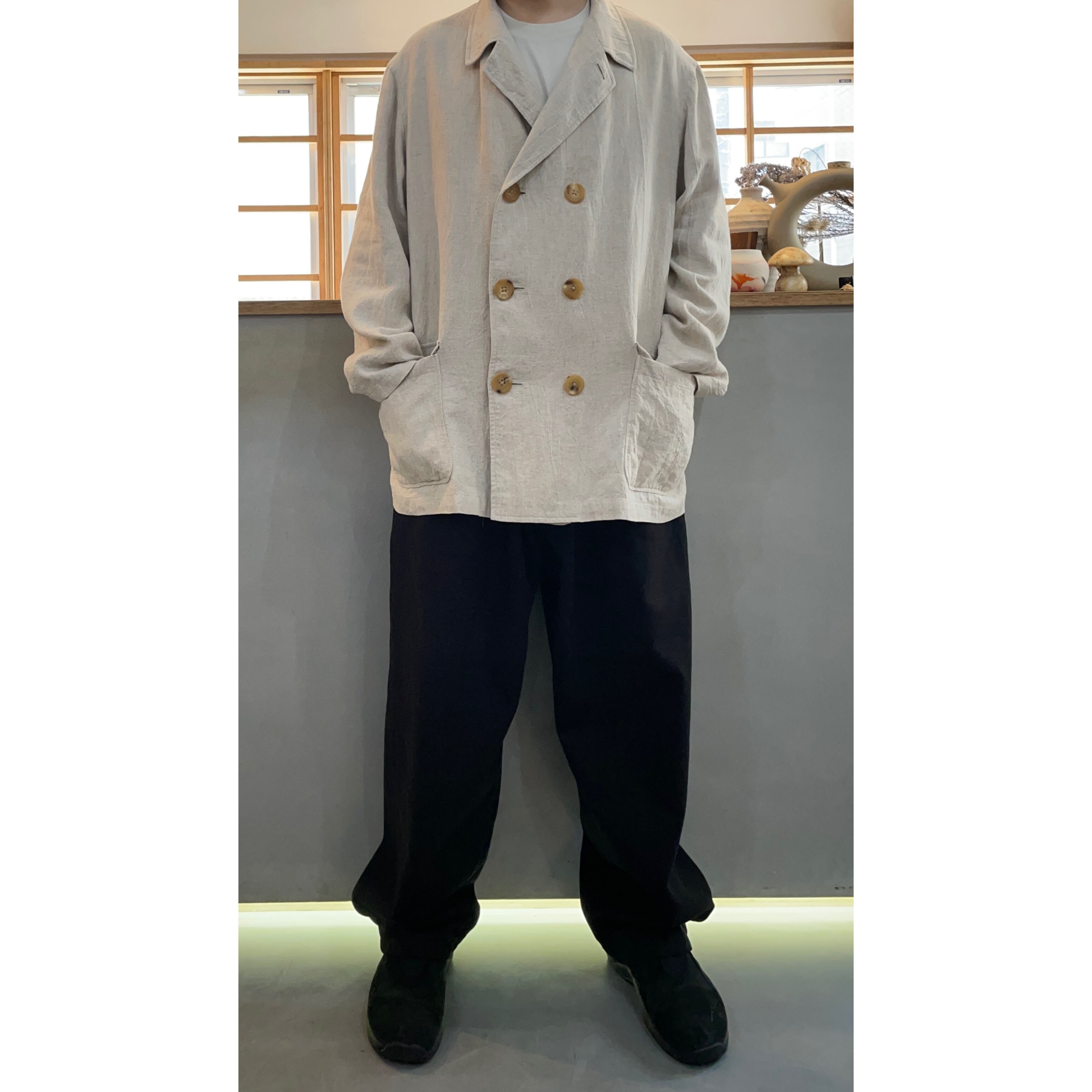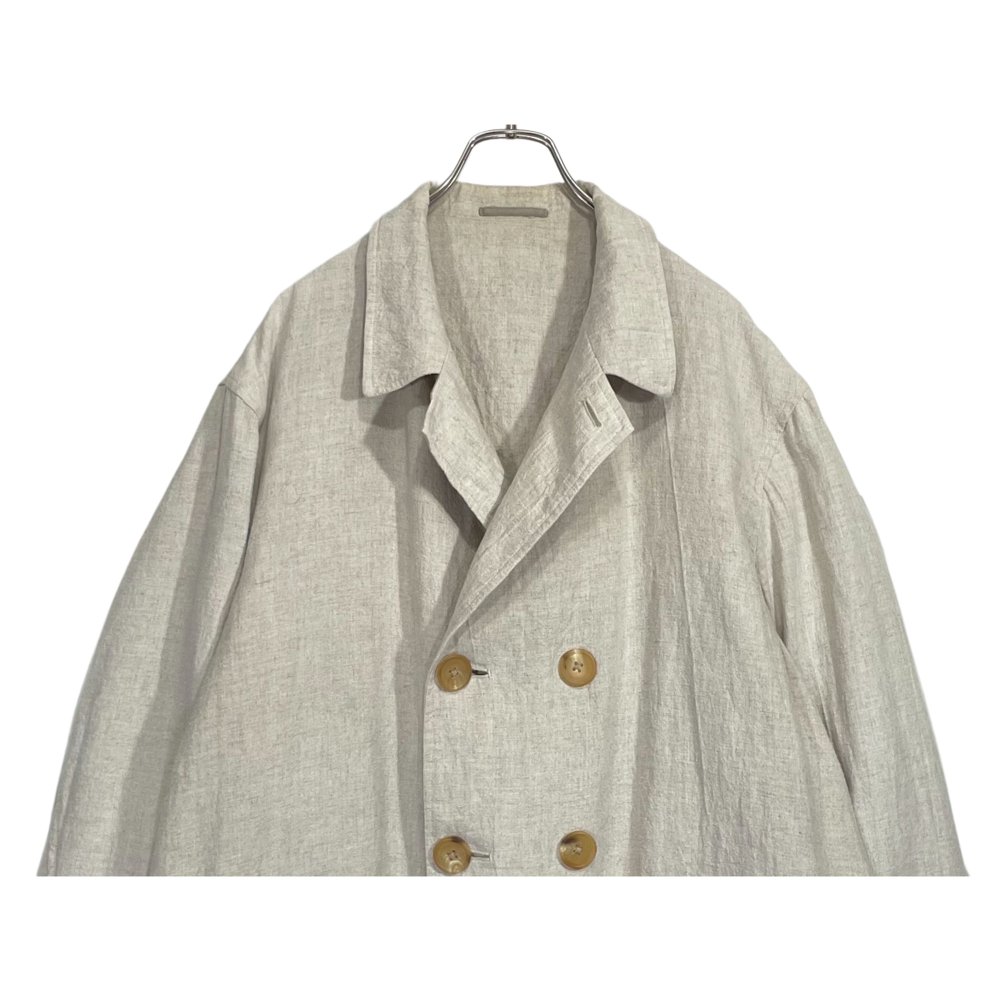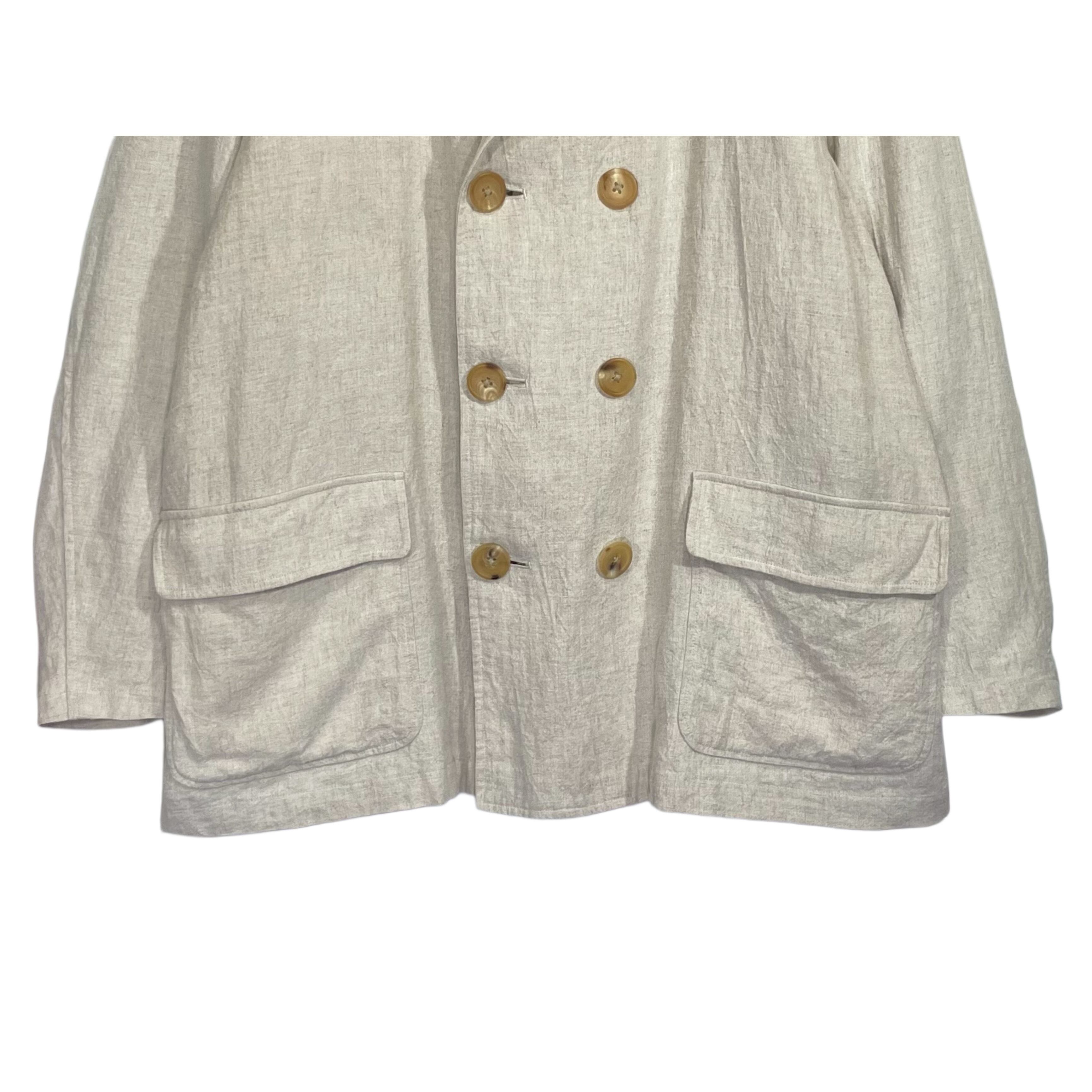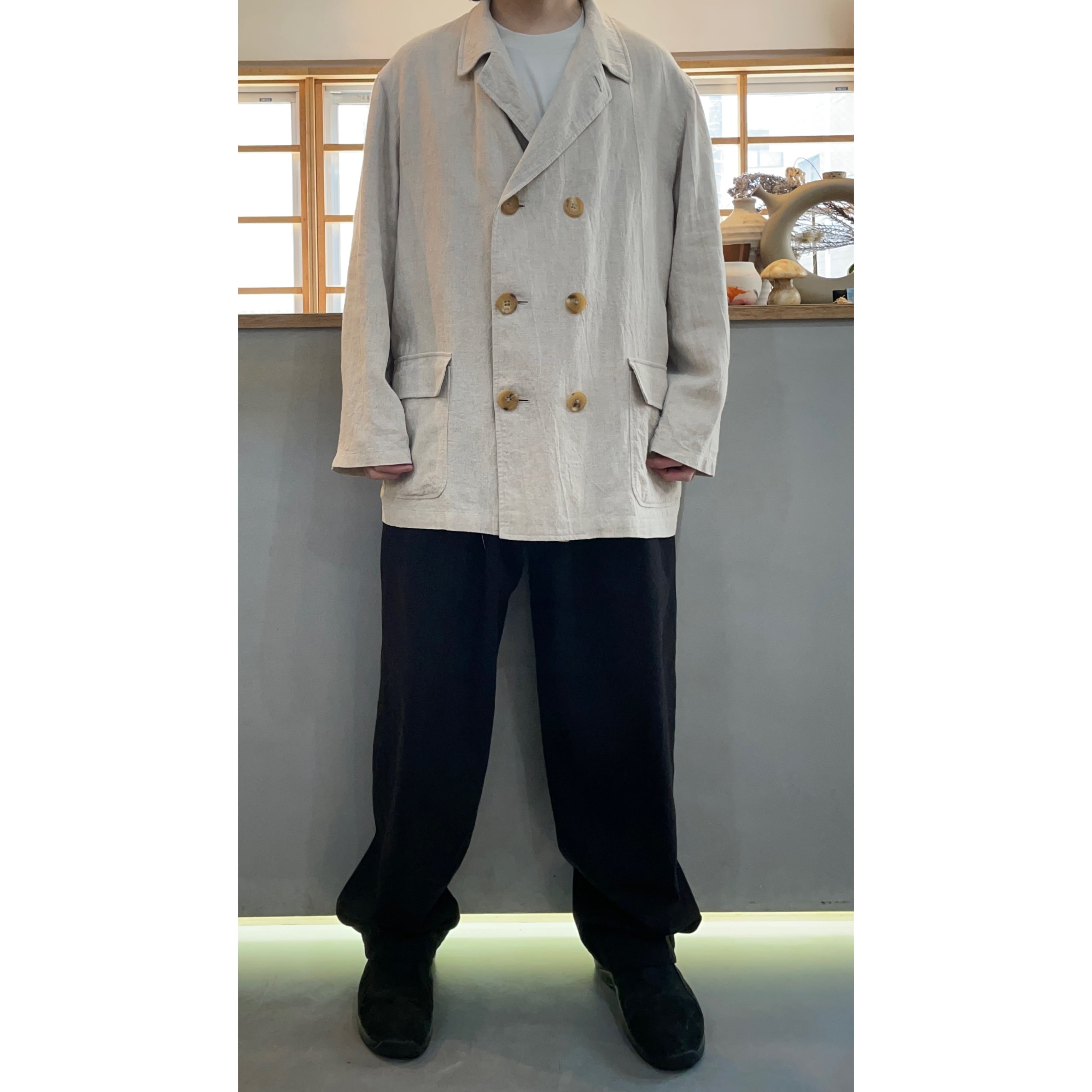 90s Y's for men natural color washed linen double bleast jacket