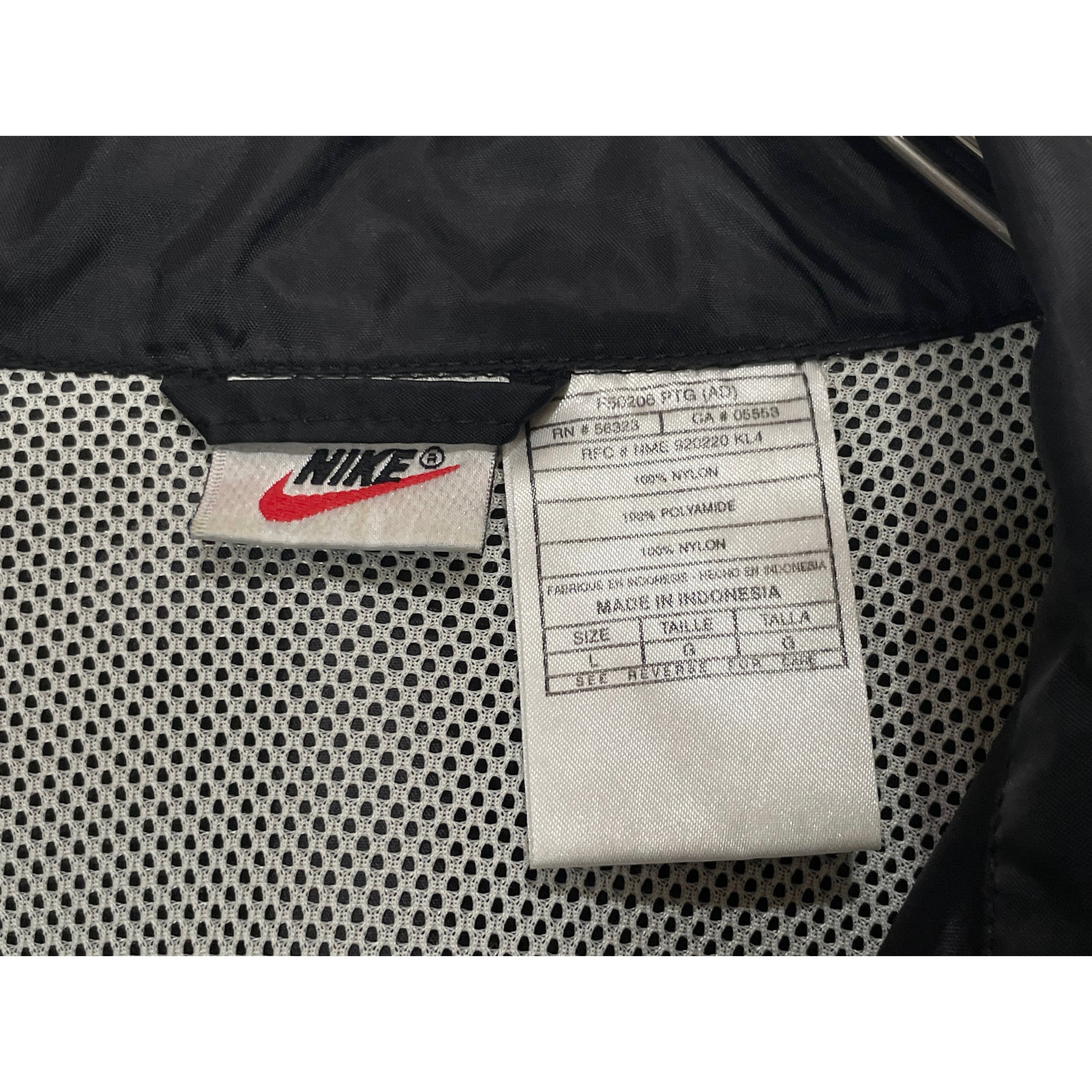 90s NIKE black nylon white mesh lined drawstring hem embroidery logo and back printed snap botton coach jacket