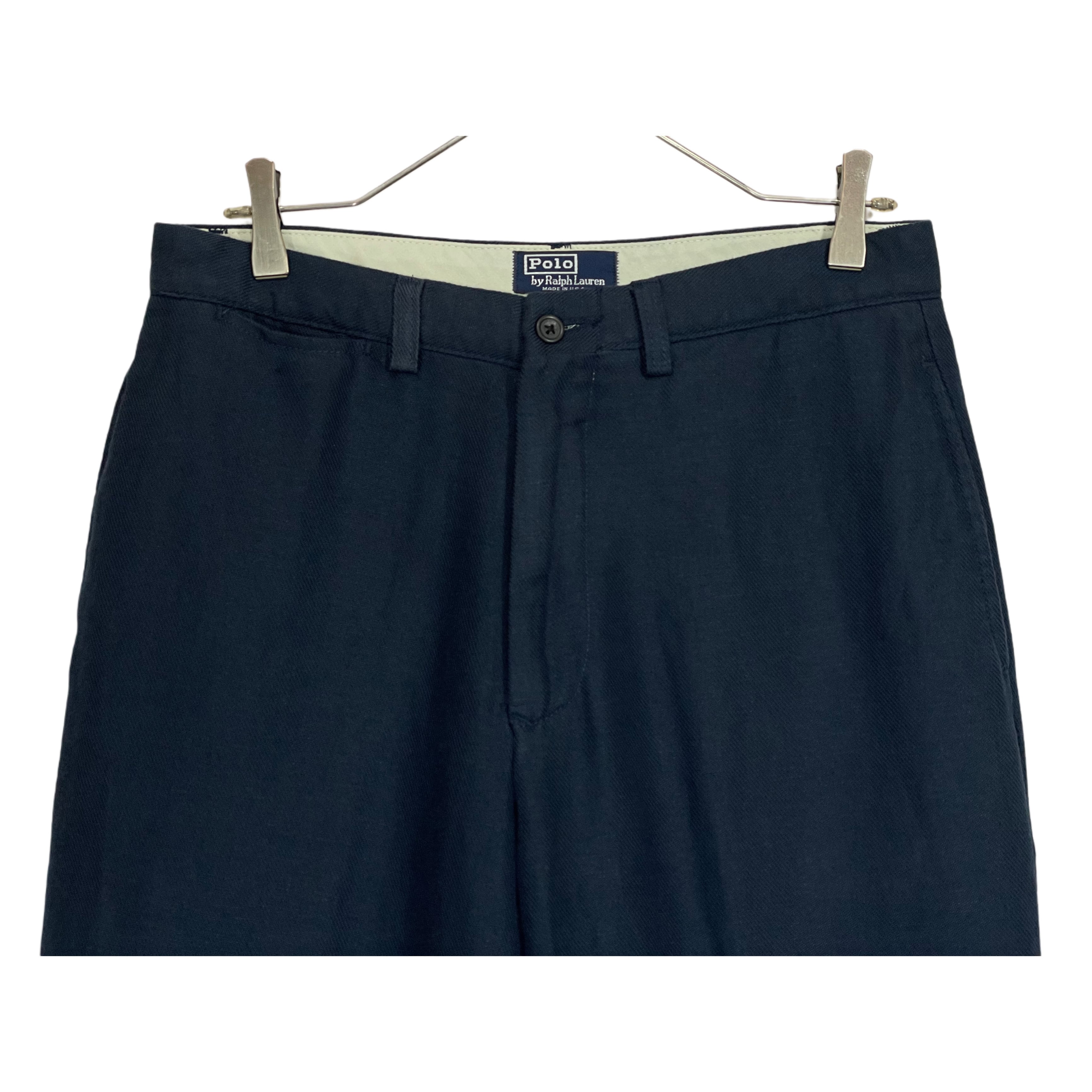 -90s Polo Ralph Lauren navy cotton×rinen twill pants made in USA