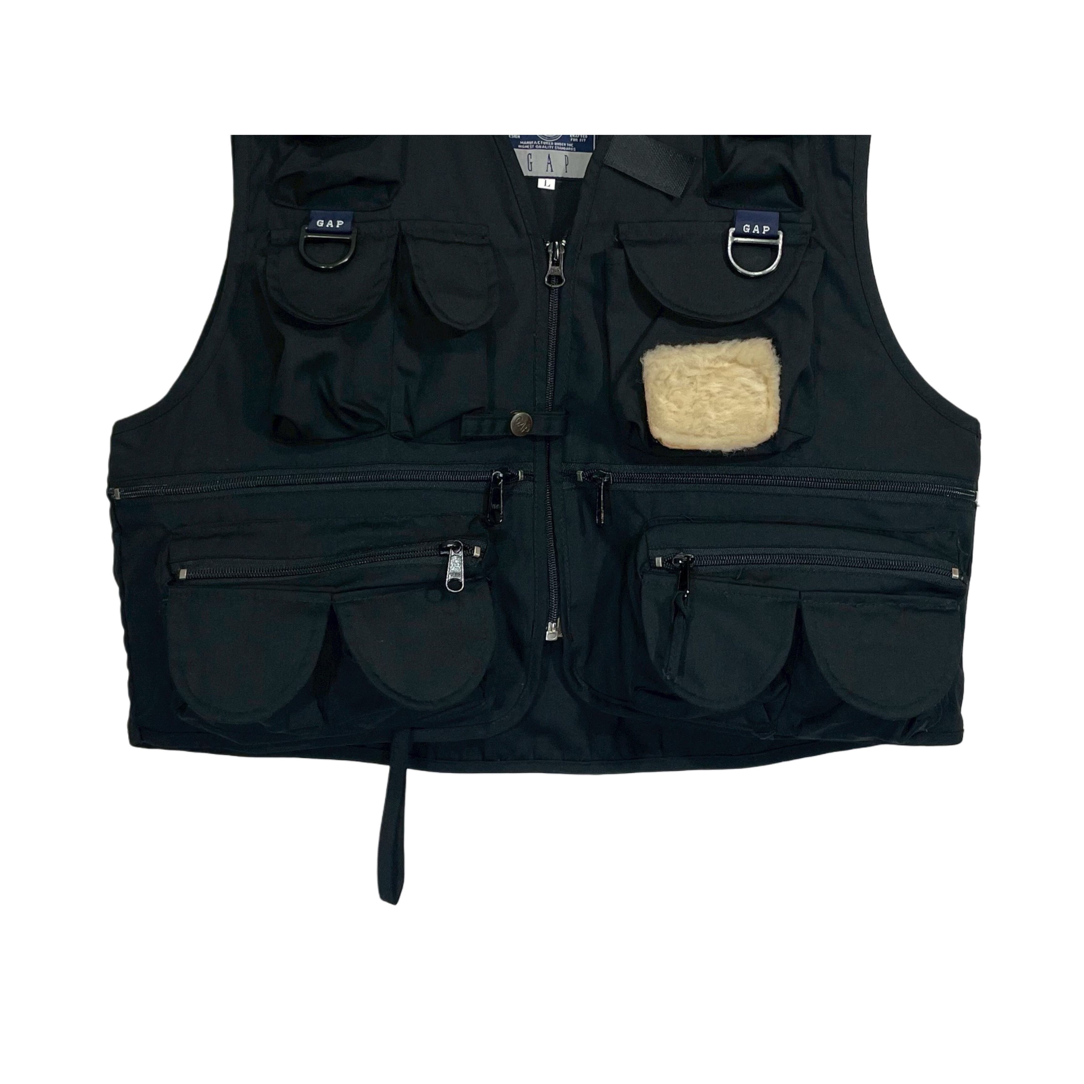 90s GAP black cottonxpolyester short length multi pocket zip up fishing vest