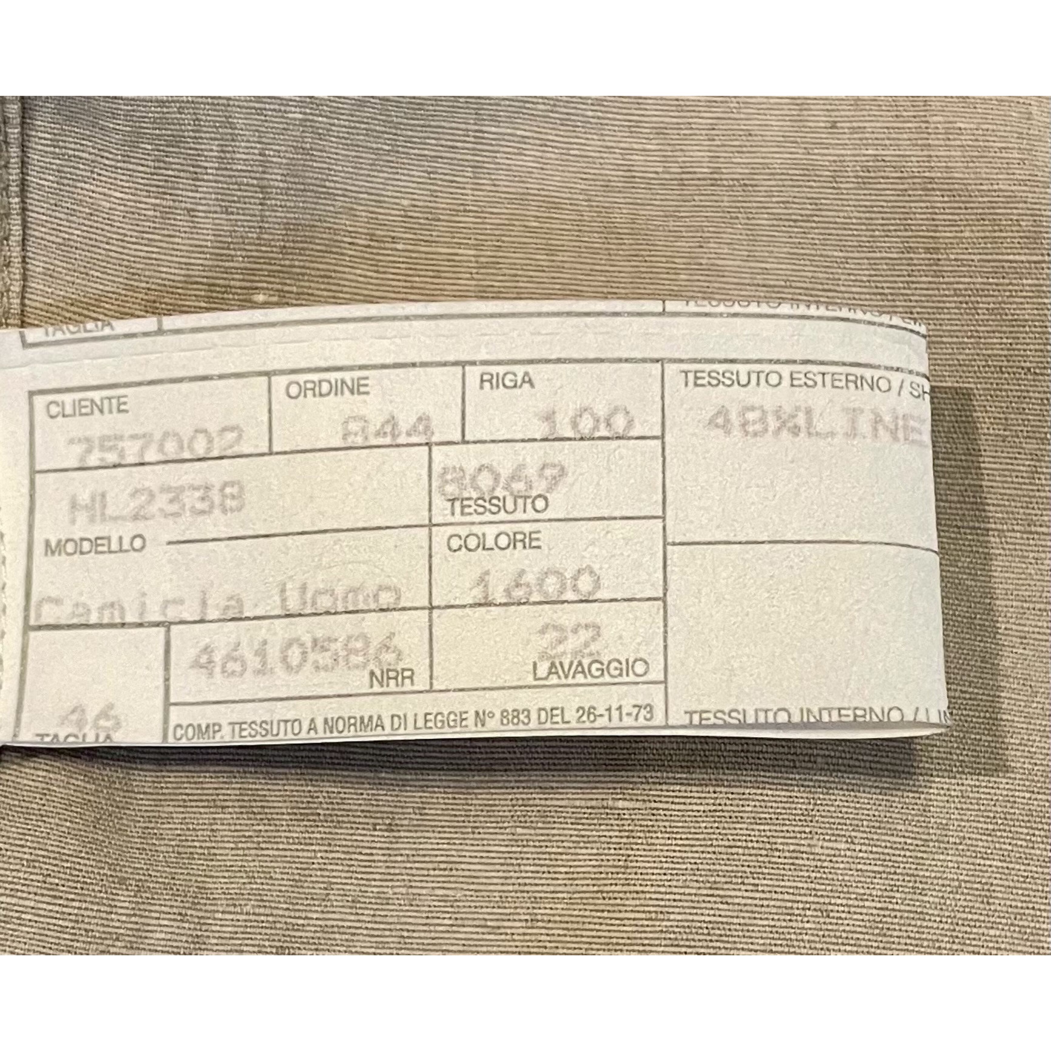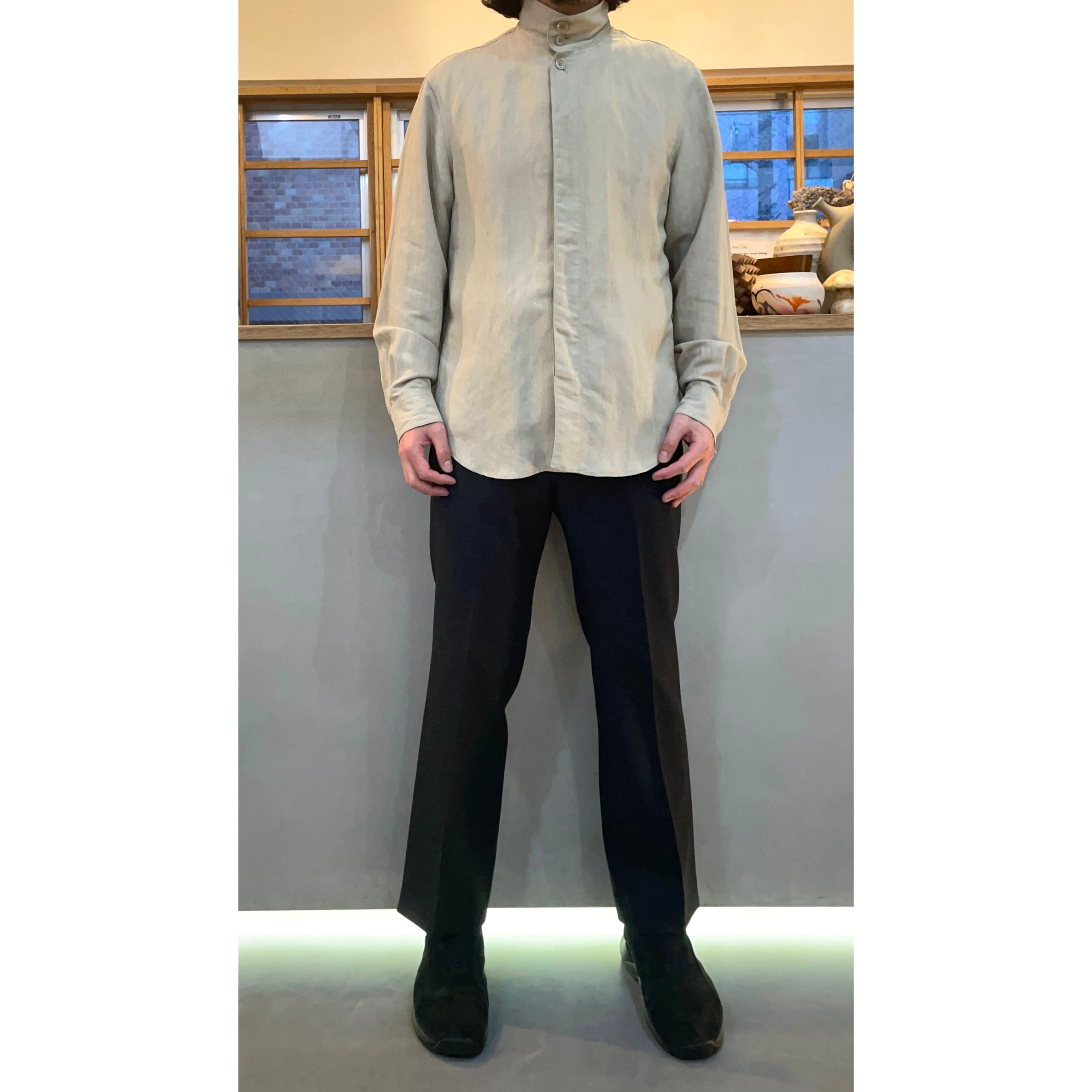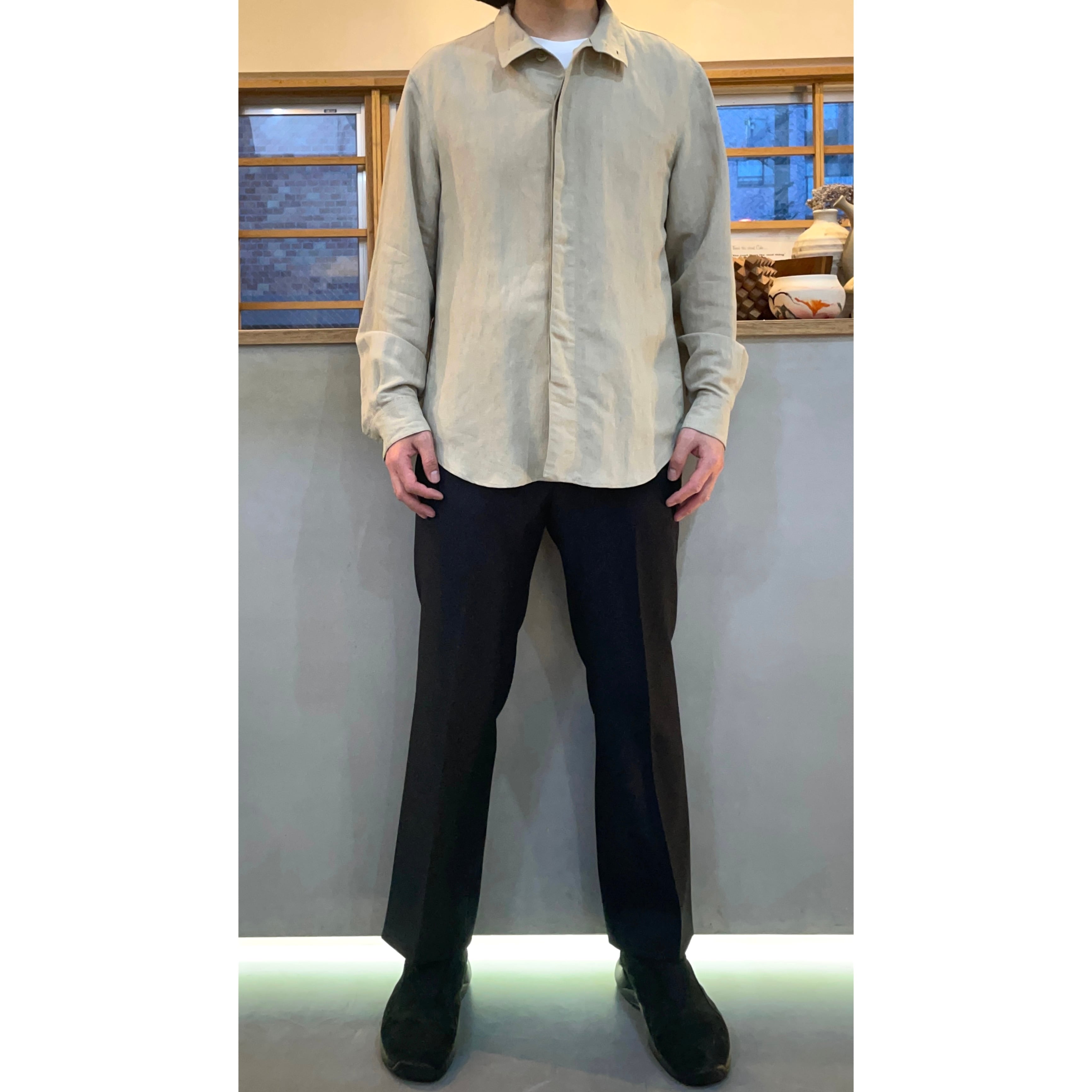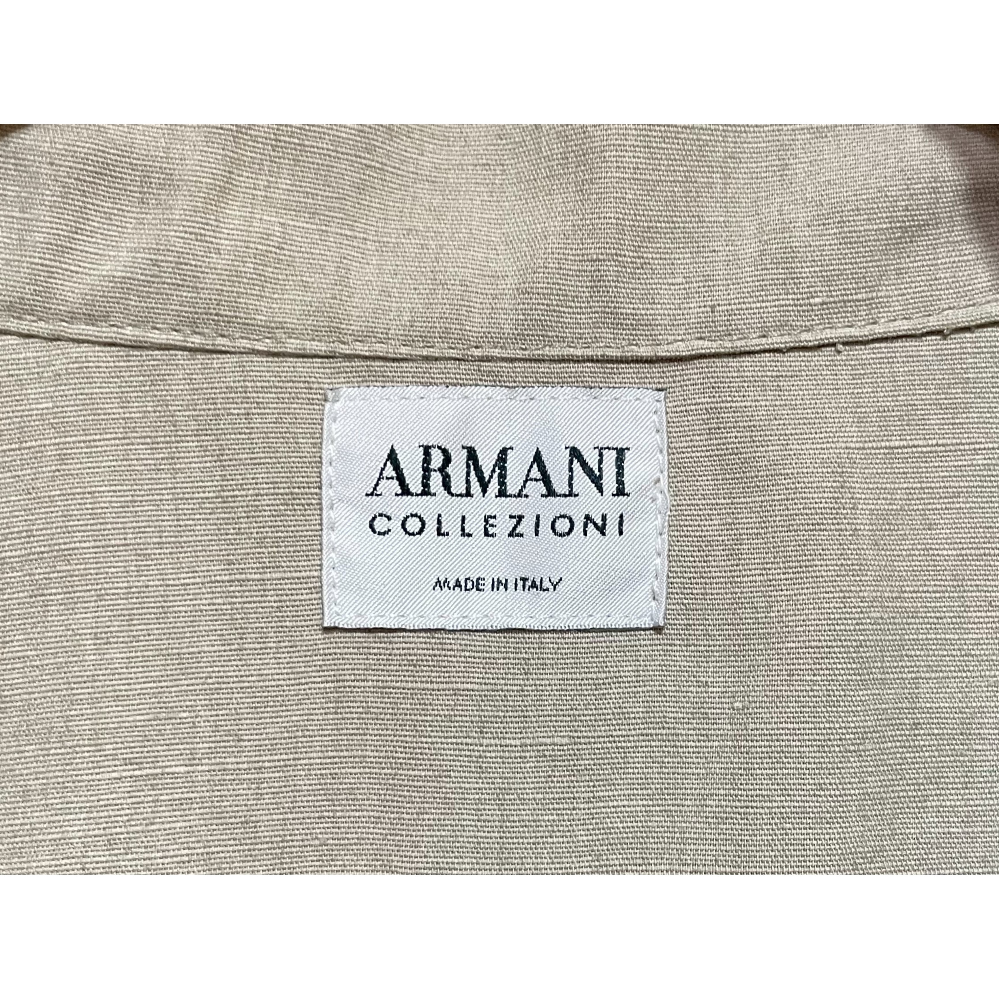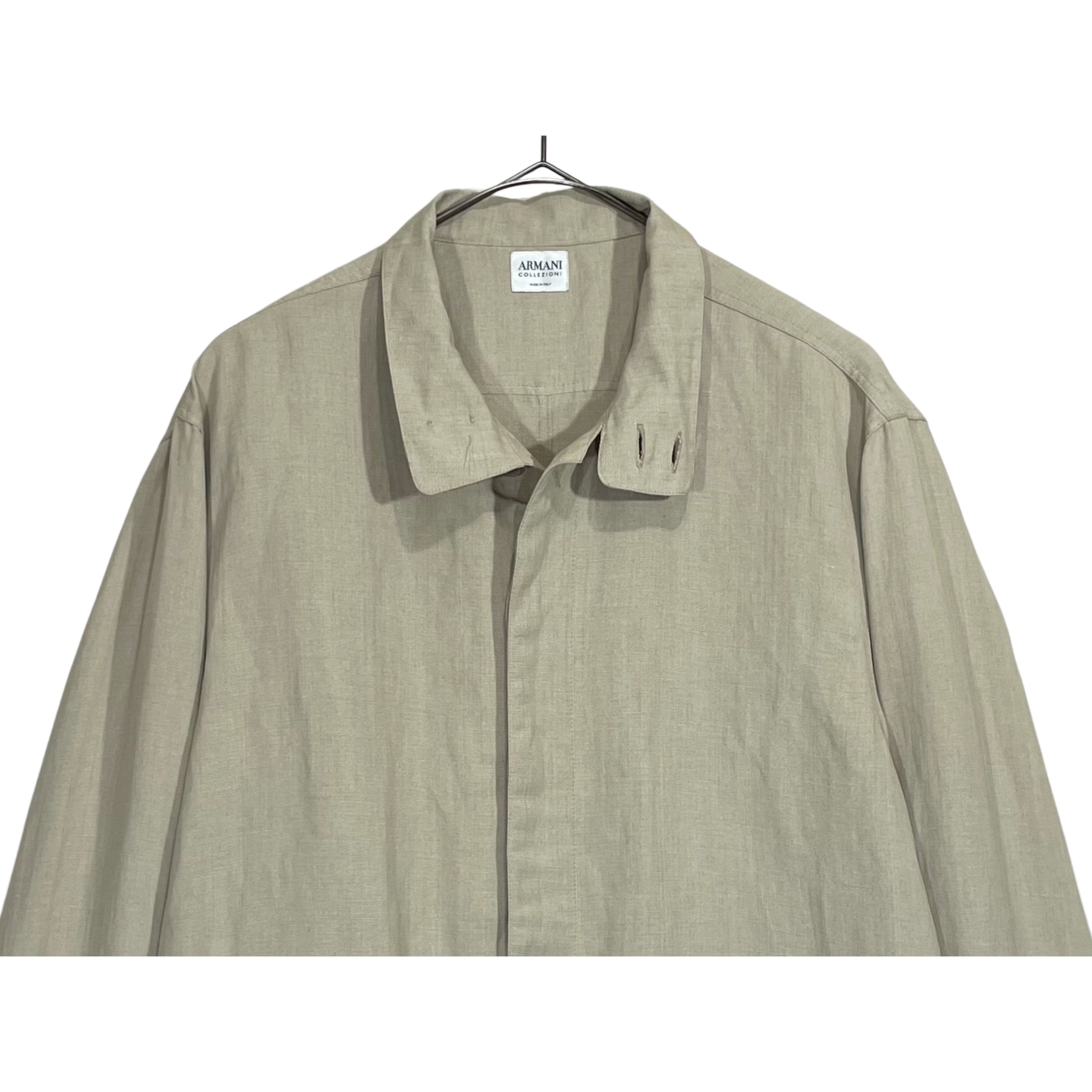 ARMANI beige linen×rayon dog ear collar fly front long sleeve shirt