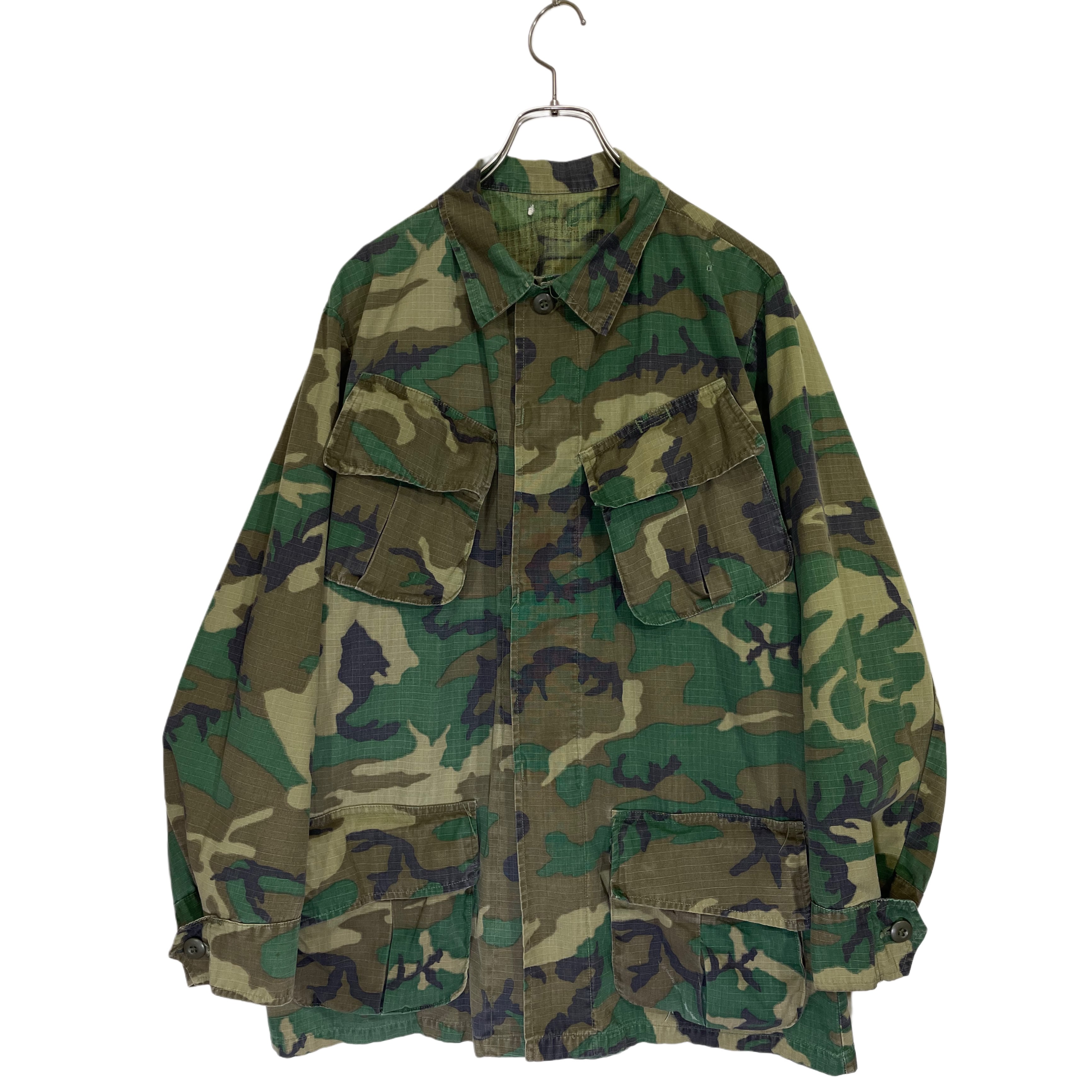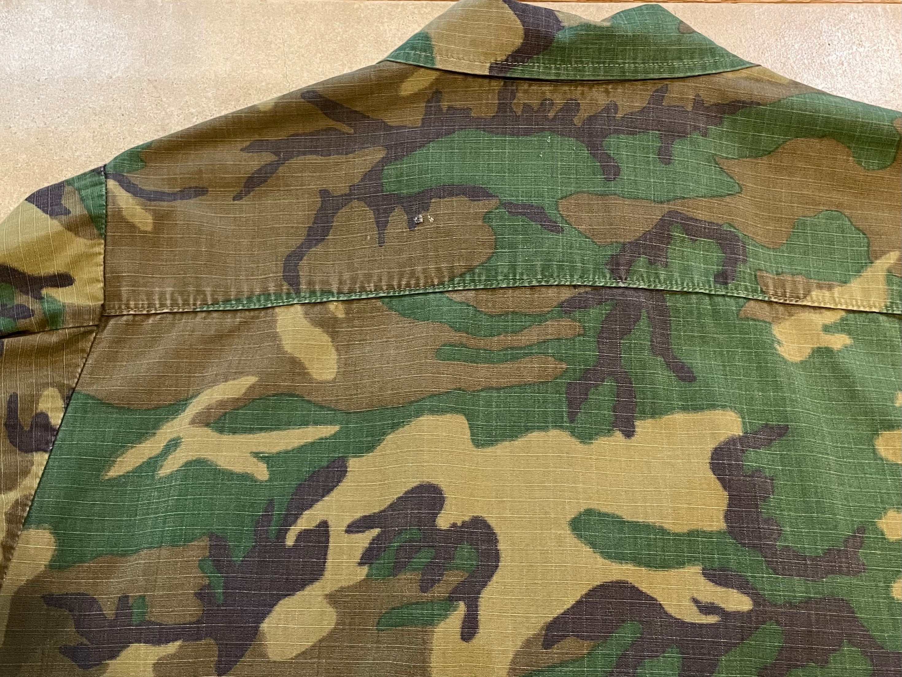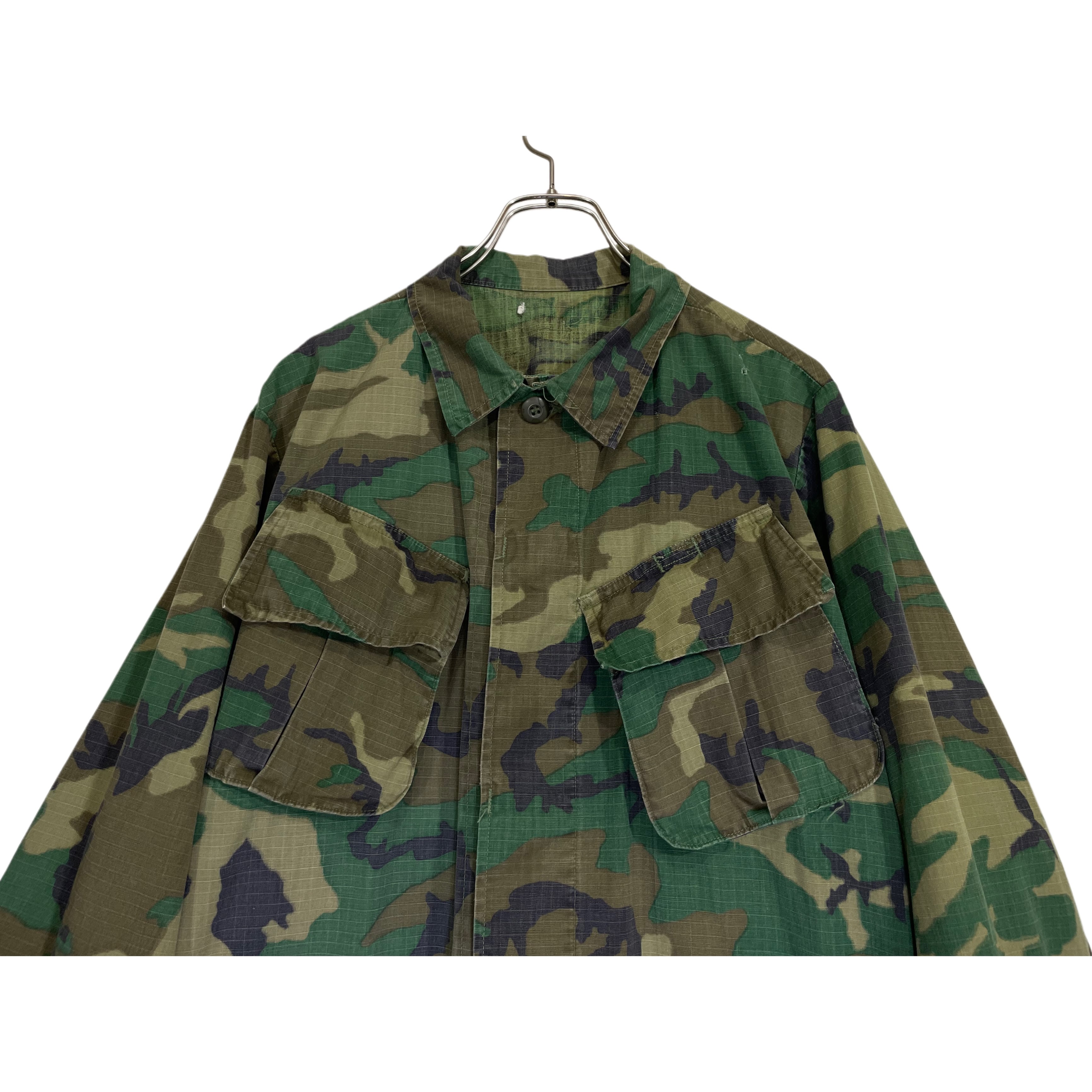 70s USMC "COAT, MAN'S CAMOFLAGE COTTON WIND RESISTANT RIP-STOP POPLIN CLASS 2" ERDL camoflage cotton rip-stop jangle fatigue shirt jacket