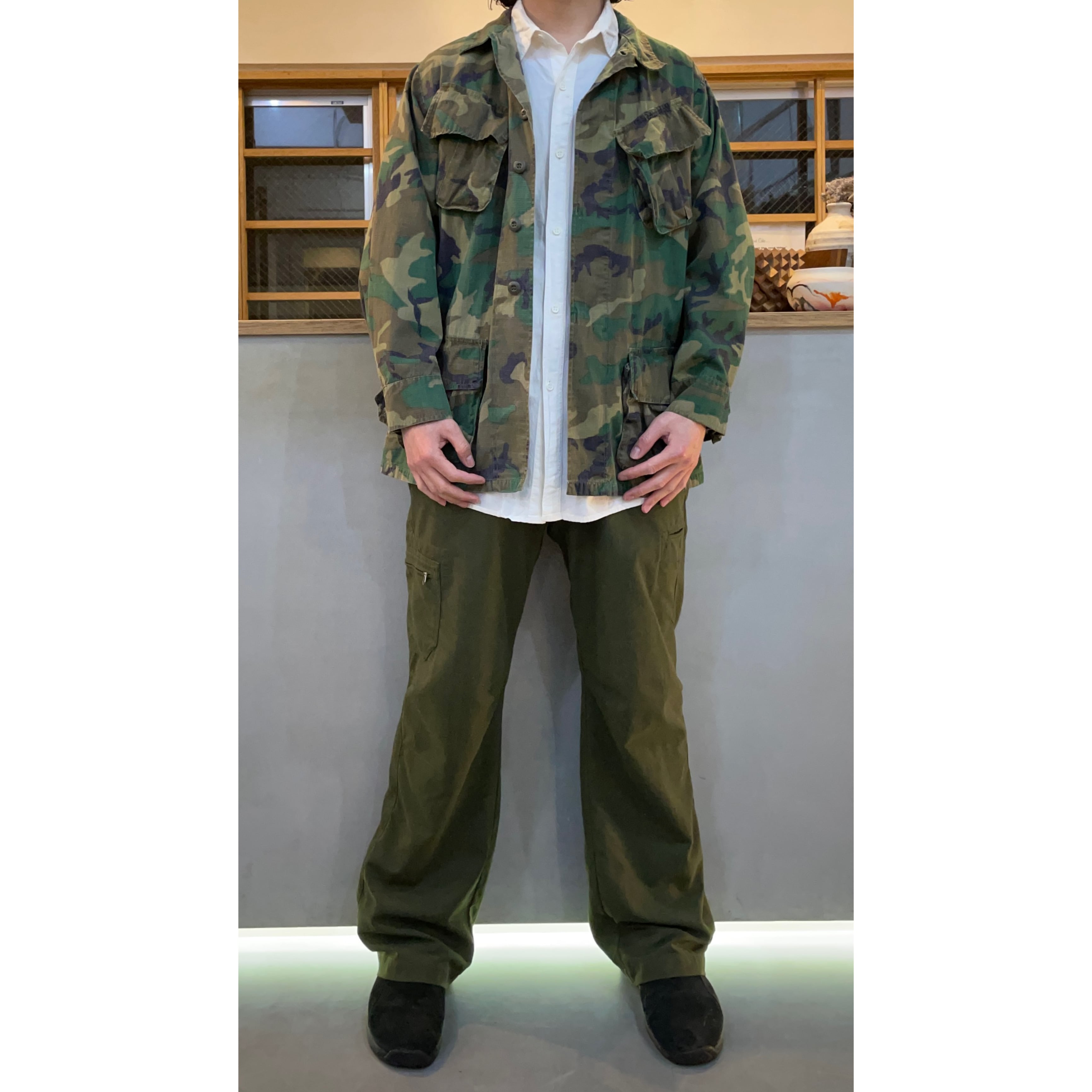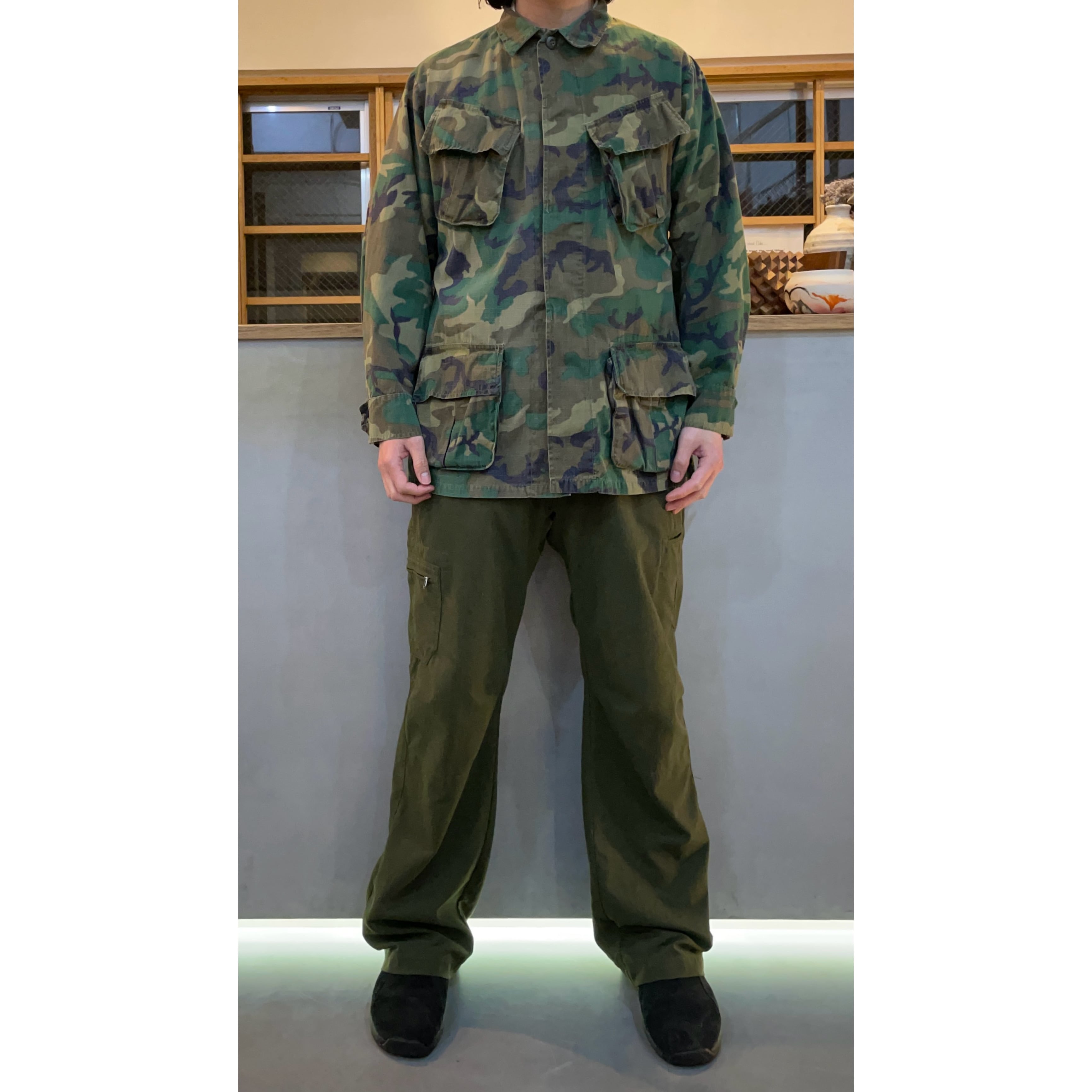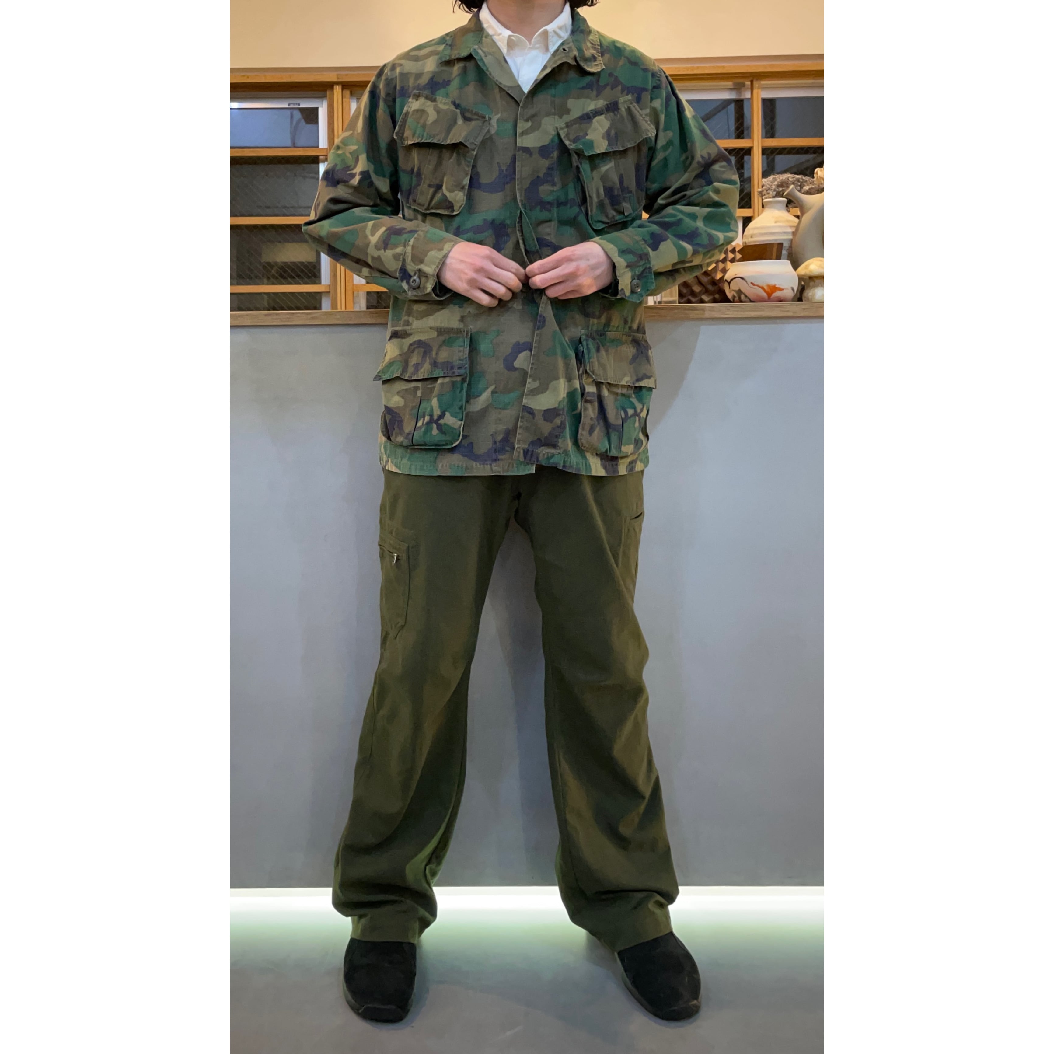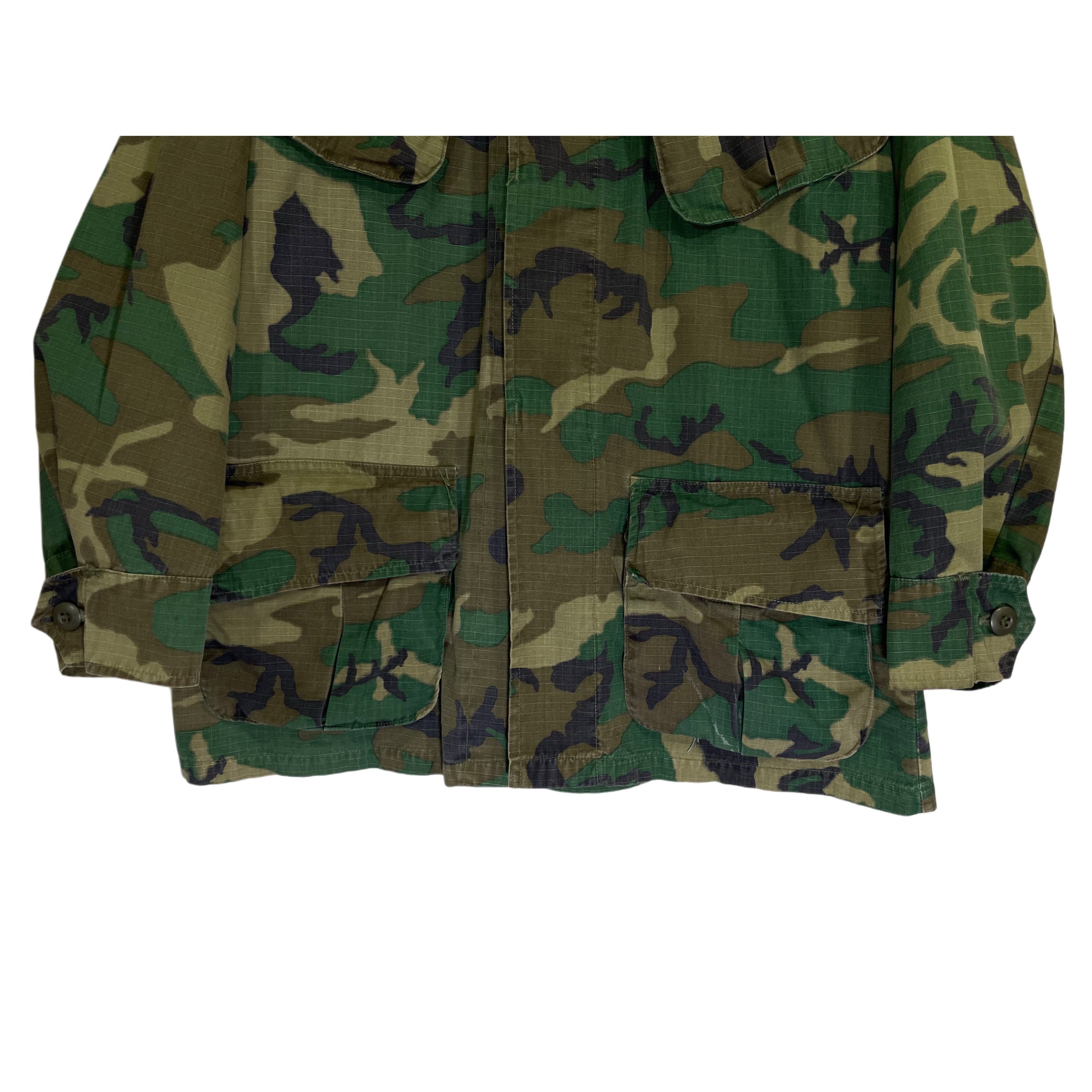 70s USMC "COAT, MAN'S CAMOFLAGE COTTON WIND RESISTANT RIP-STOP POPLIN CLASS 2" ERDL camoflage cotton rip-stop jangle fatigue shirt jacket