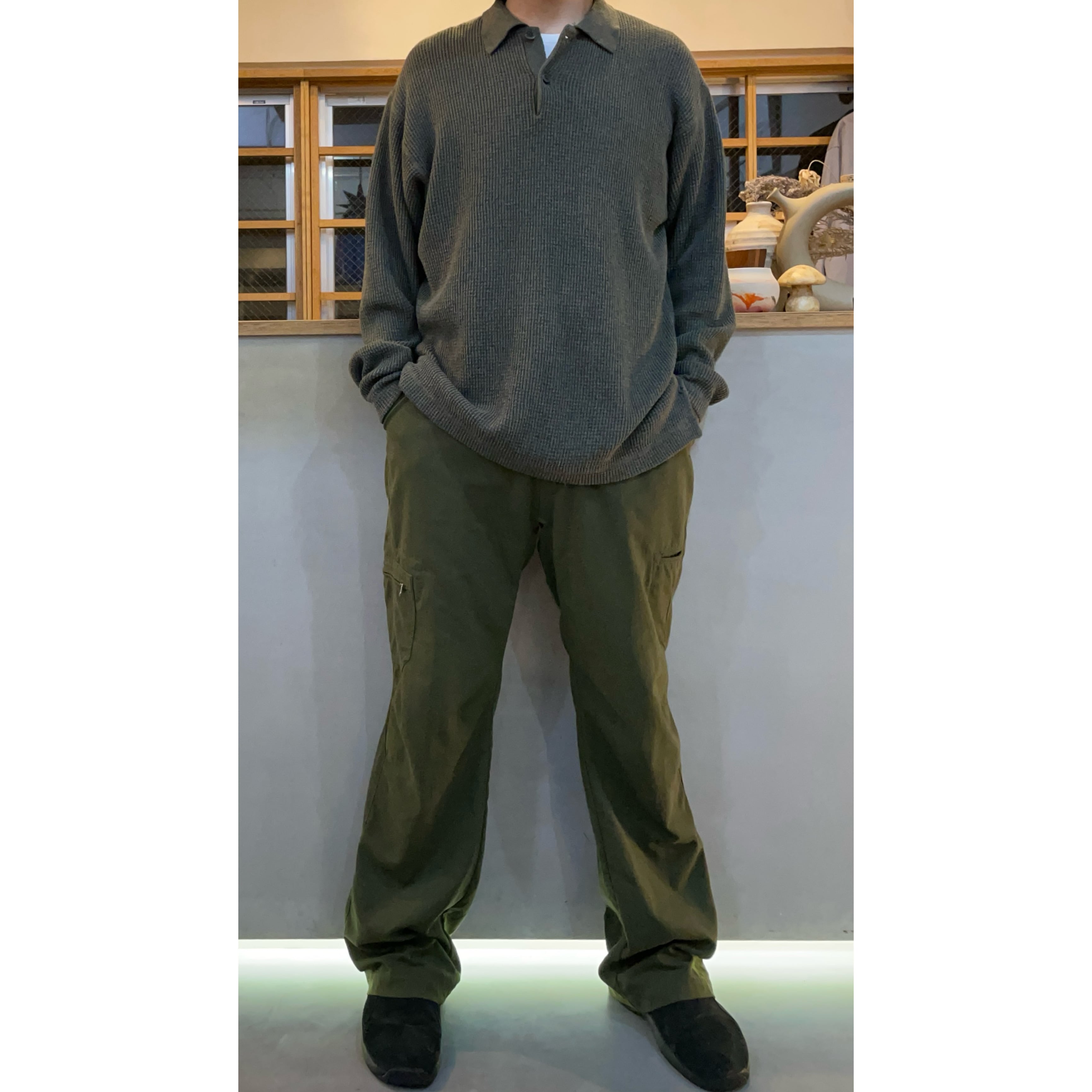 90s BANANA REPUBIC olive waffle pattern cotton knit pullover polo shirt