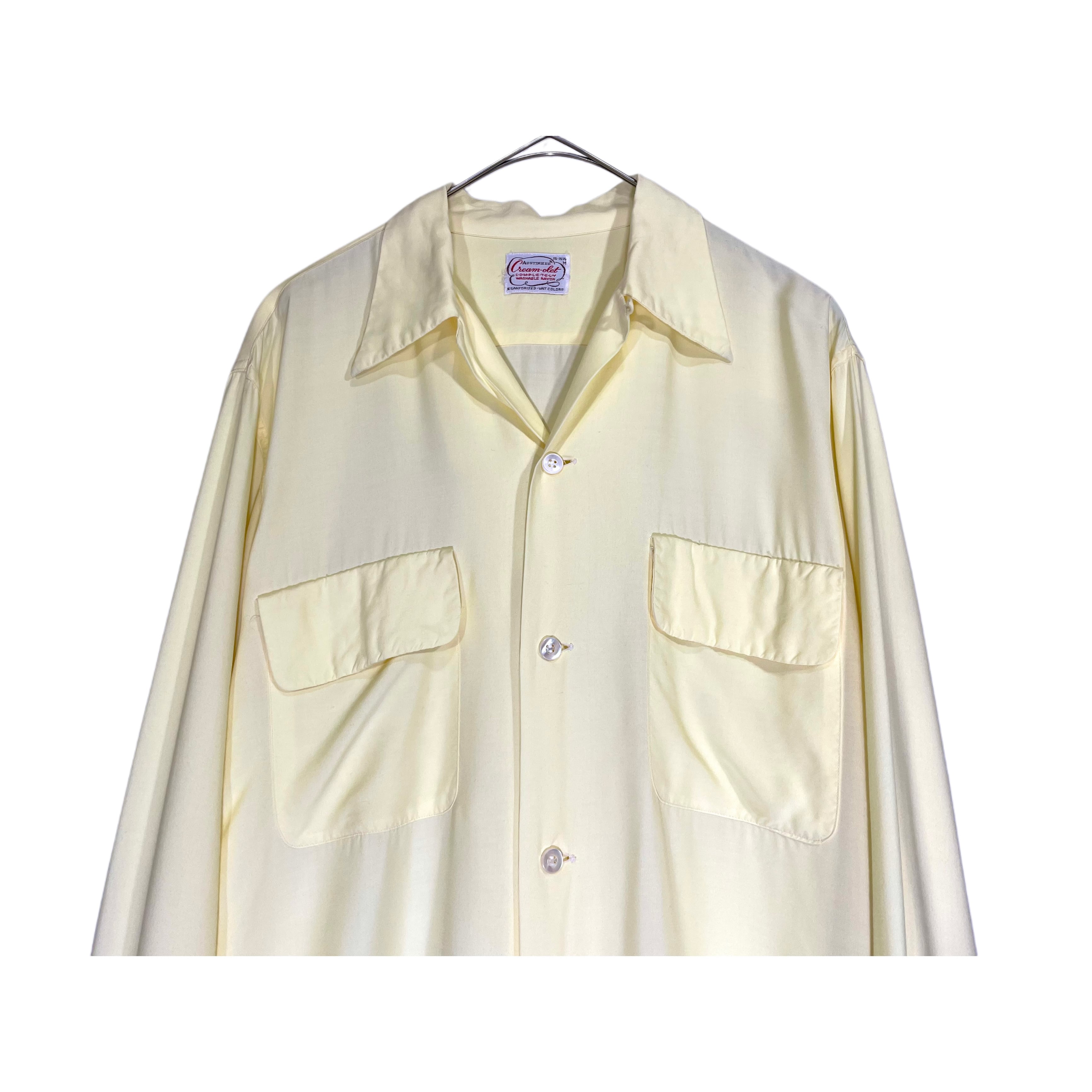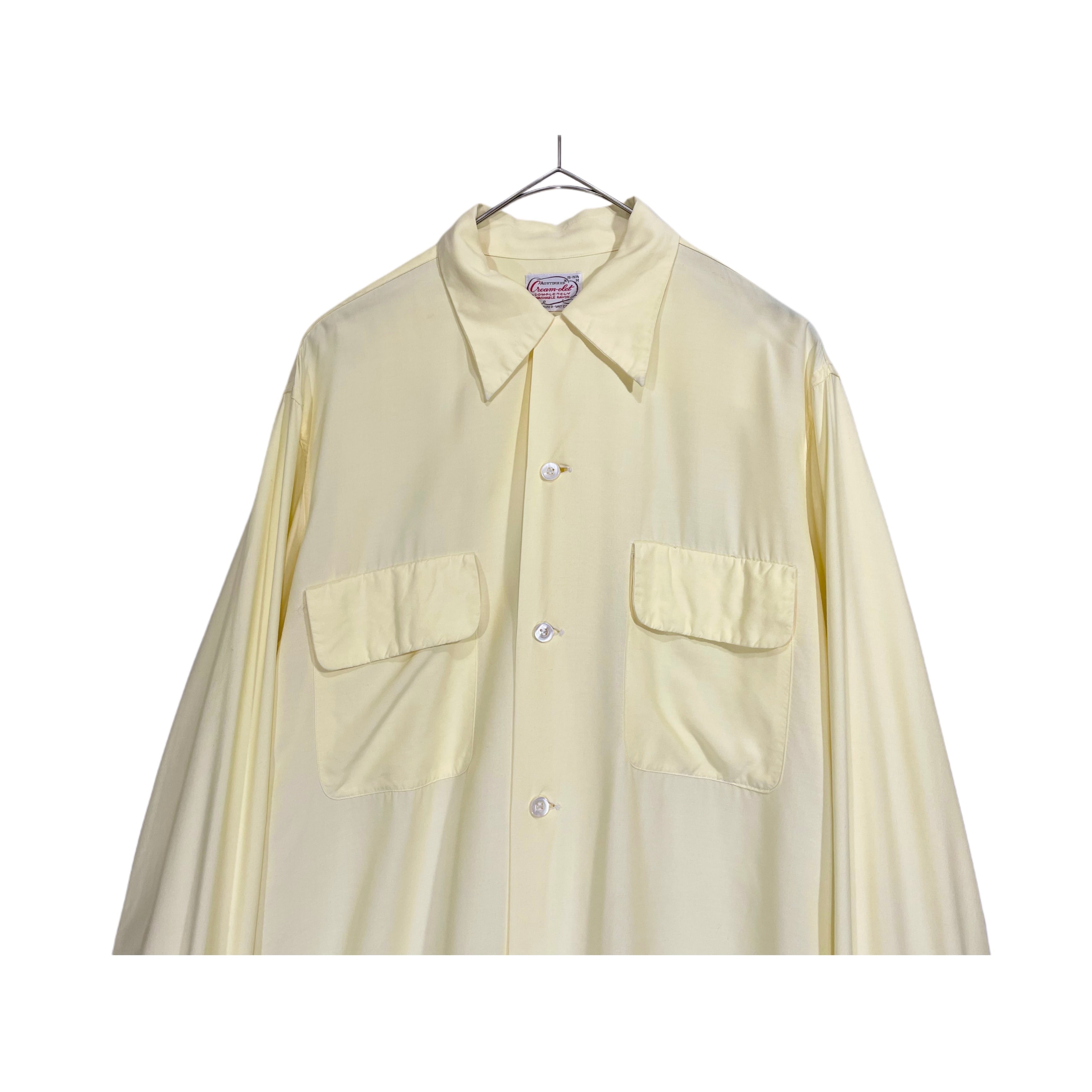 50s cream-olet lemon yellow rayon box silhouette open collar shirt