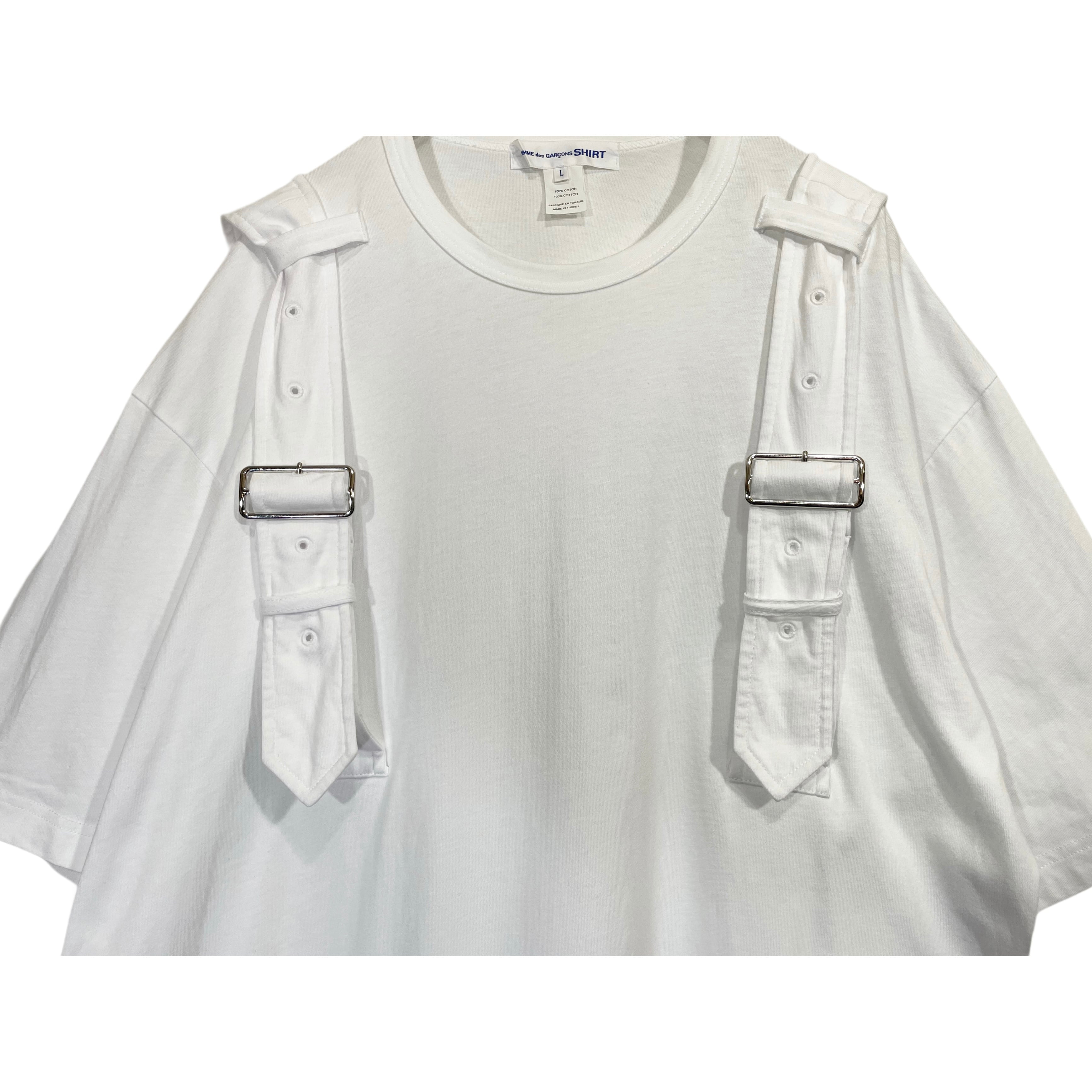 COMME des GARÇONS SHIRT white cotton shoulder belted design T-shirt