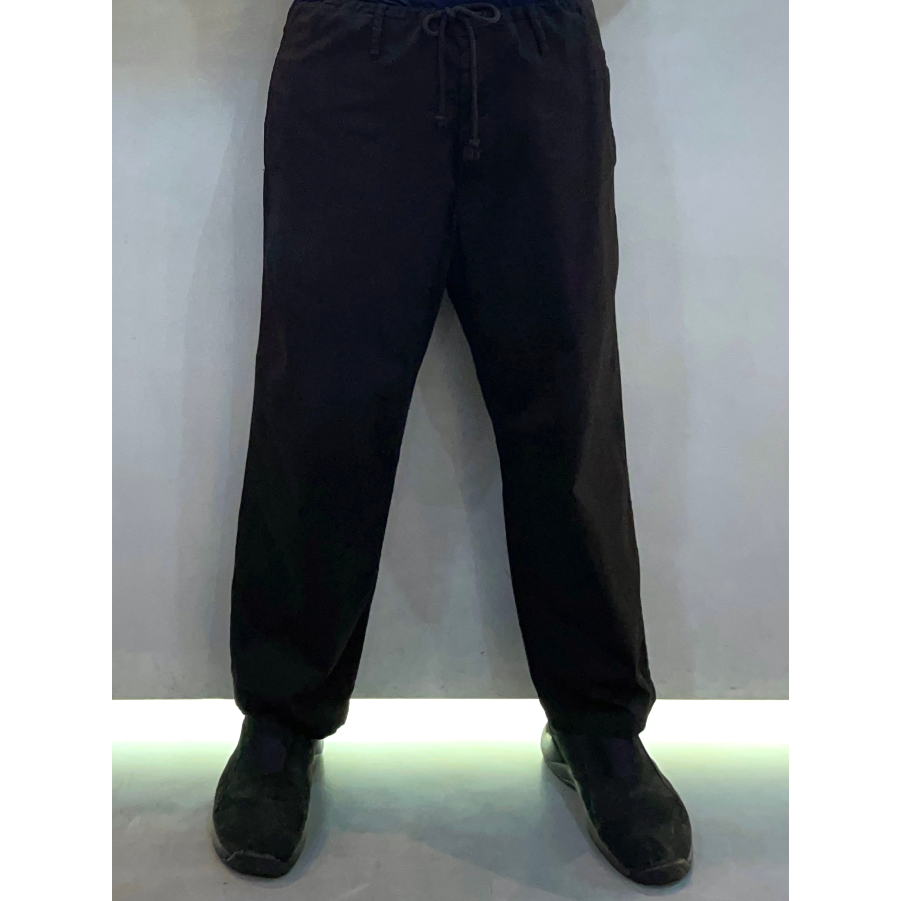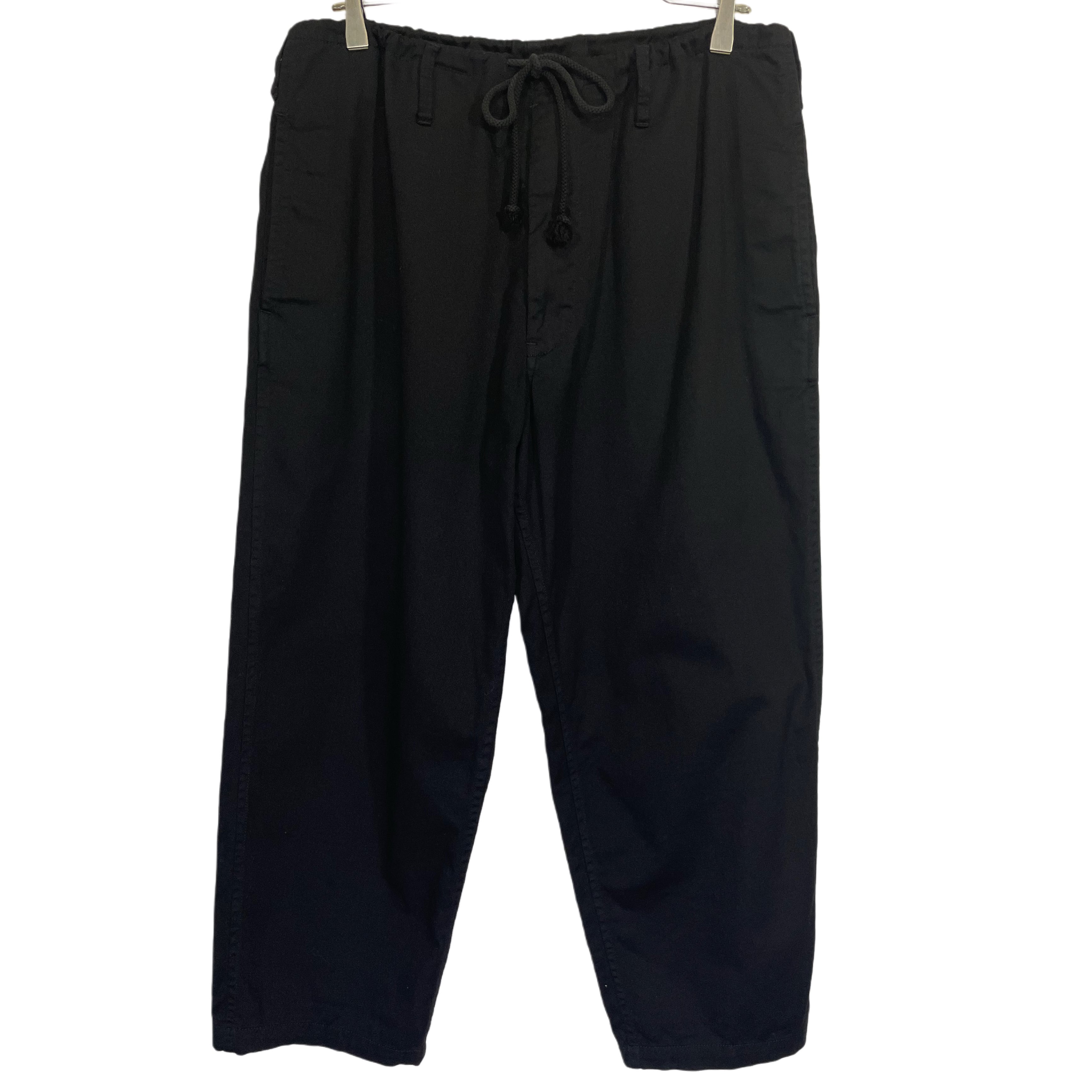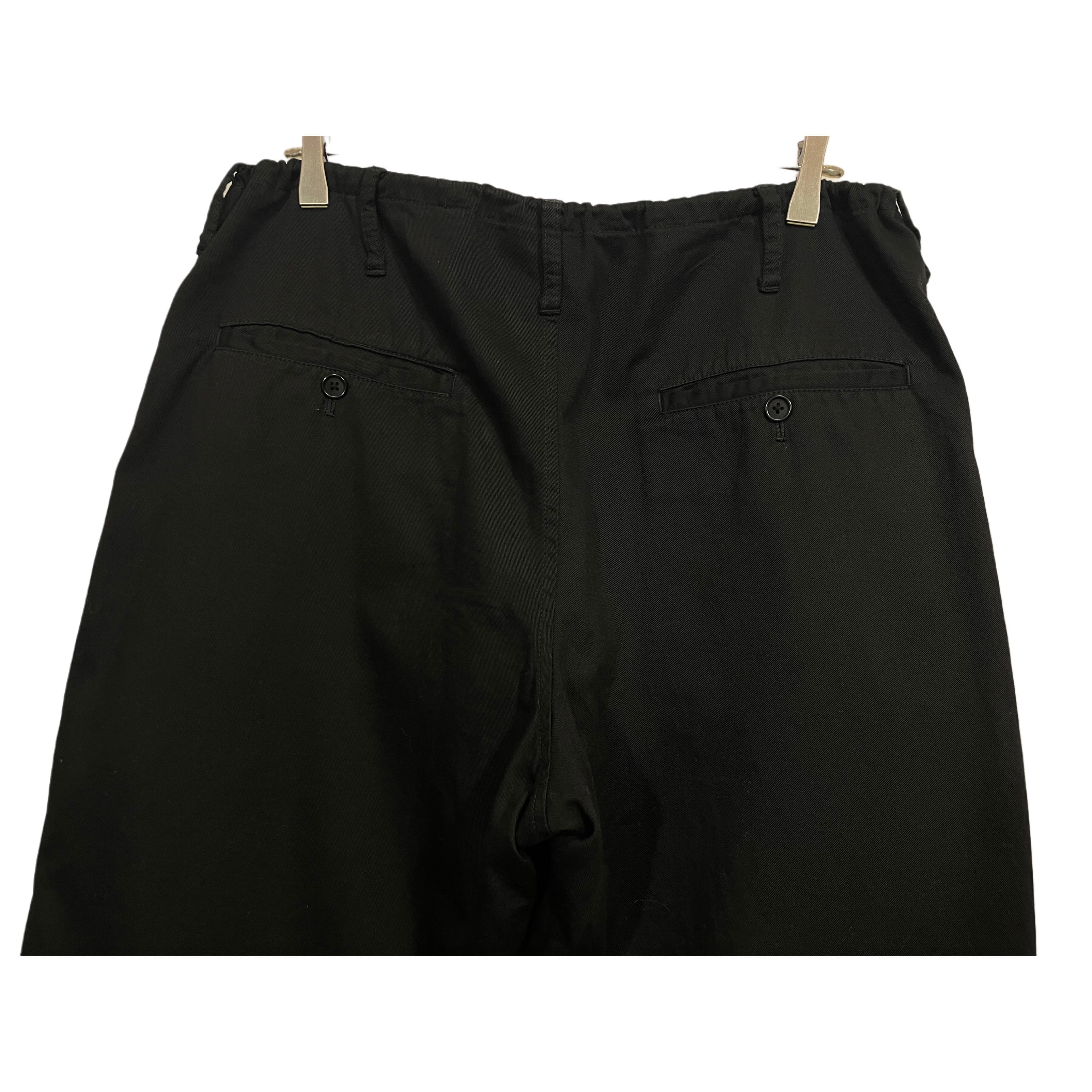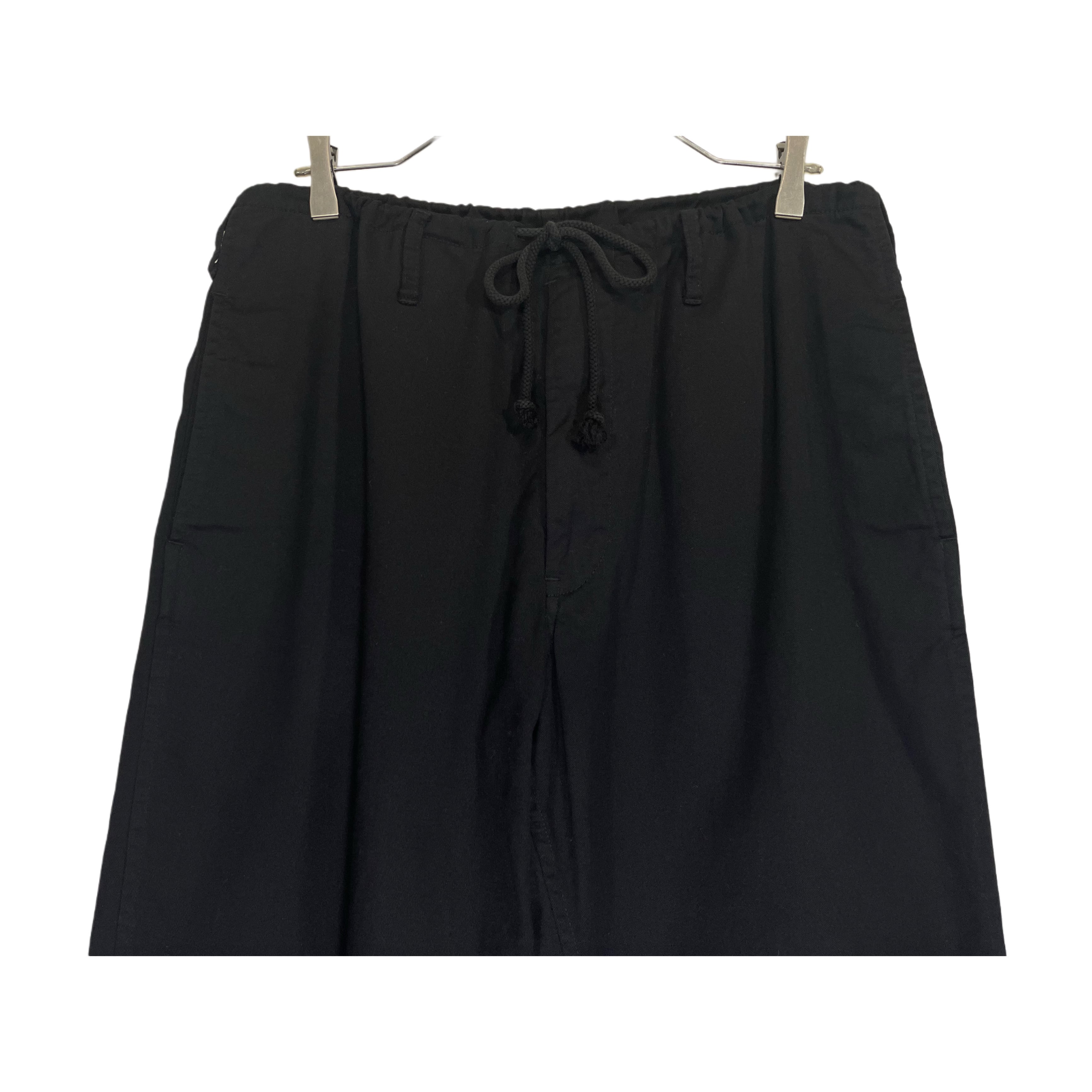 00s- Yohji Yamamoto pour homme black cotton drawstring gather waist wide pants