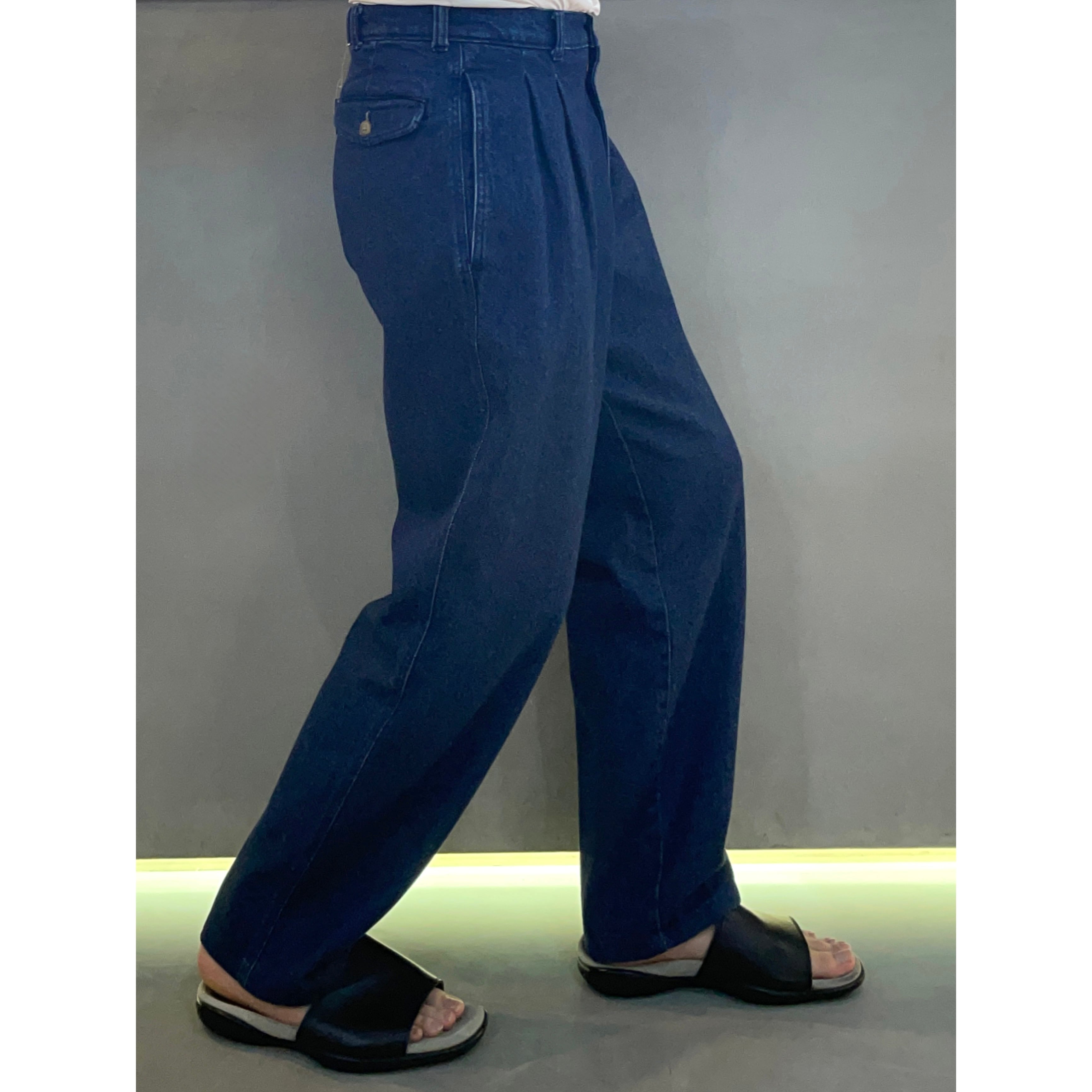 80s LL Bean indigo cotton denim 2 tuck trousers