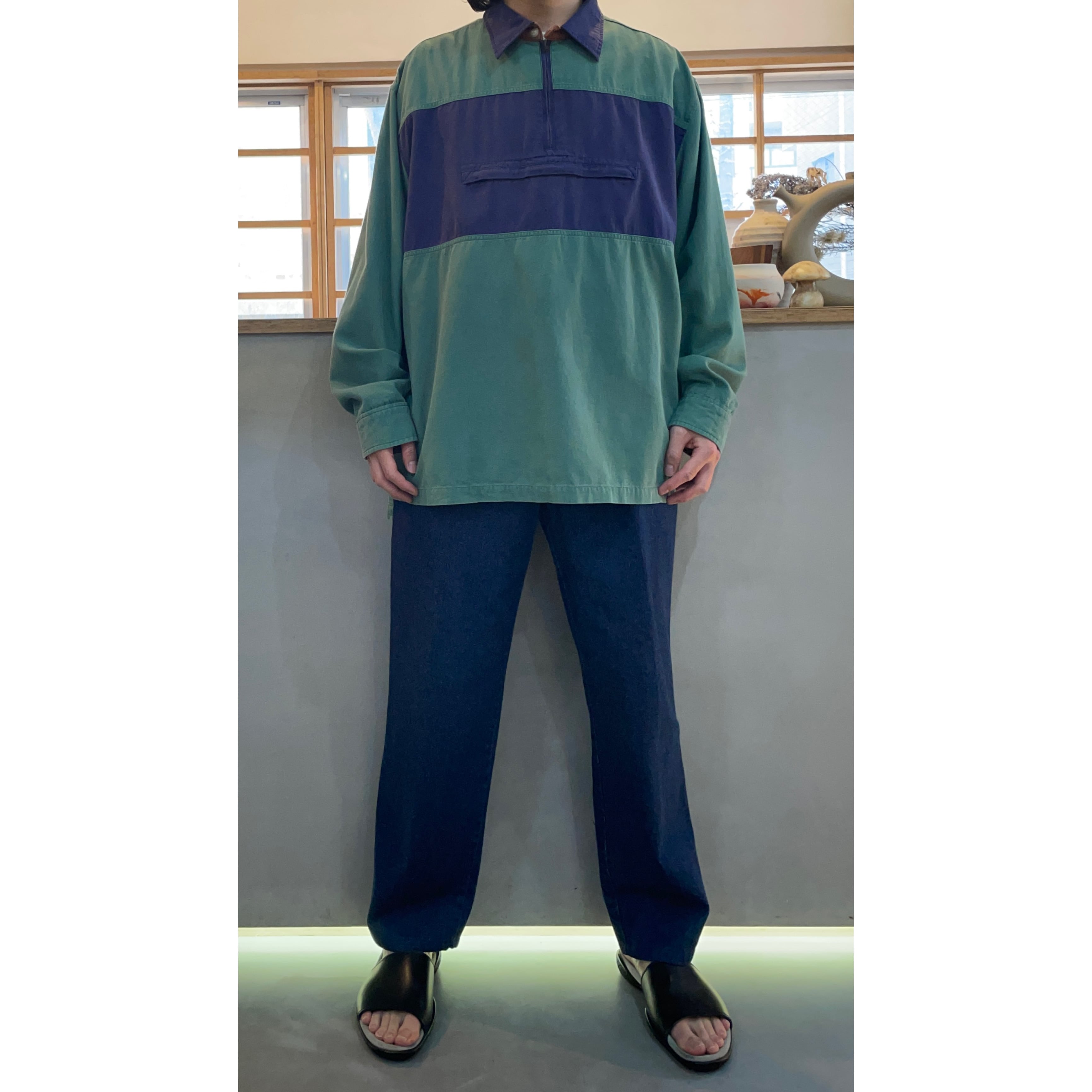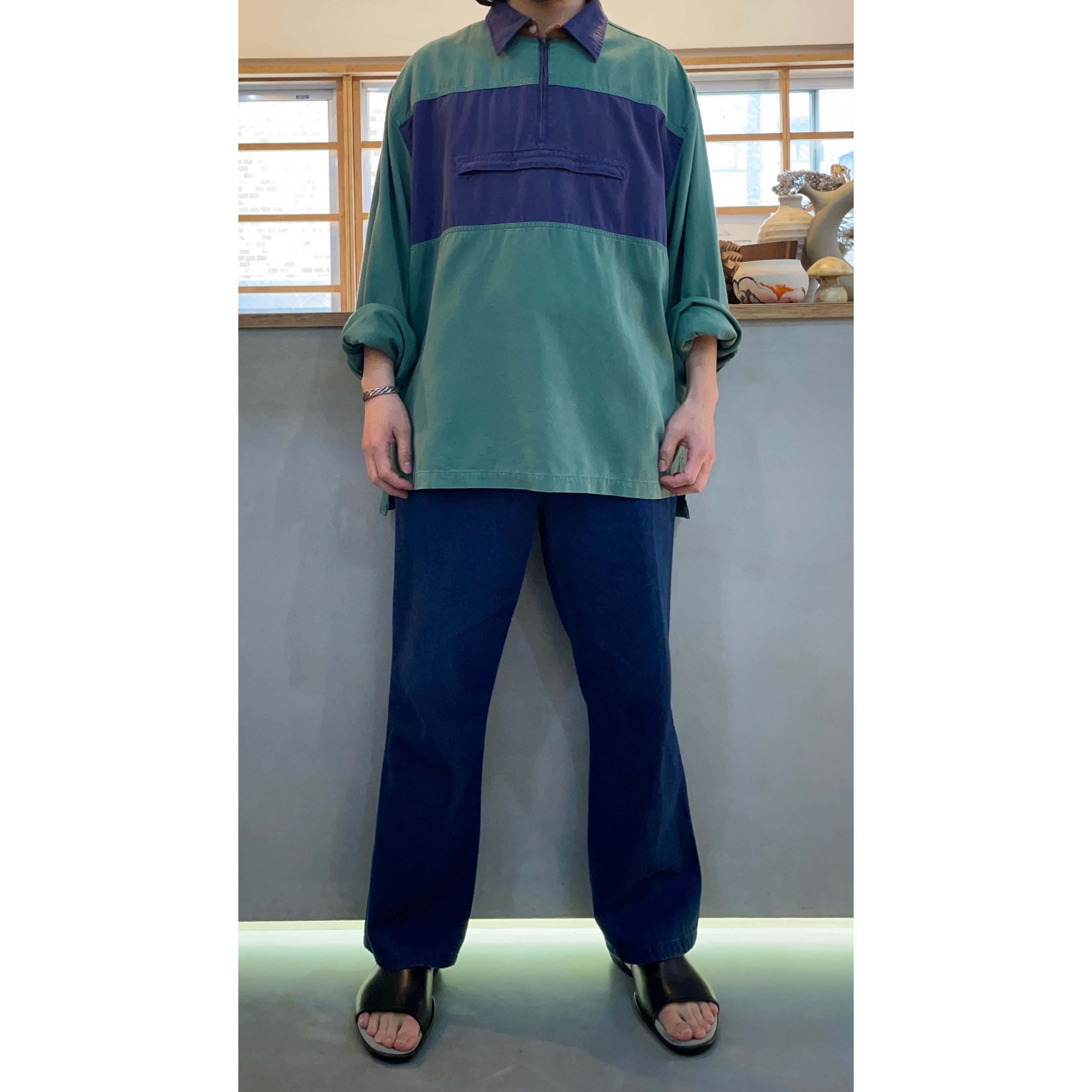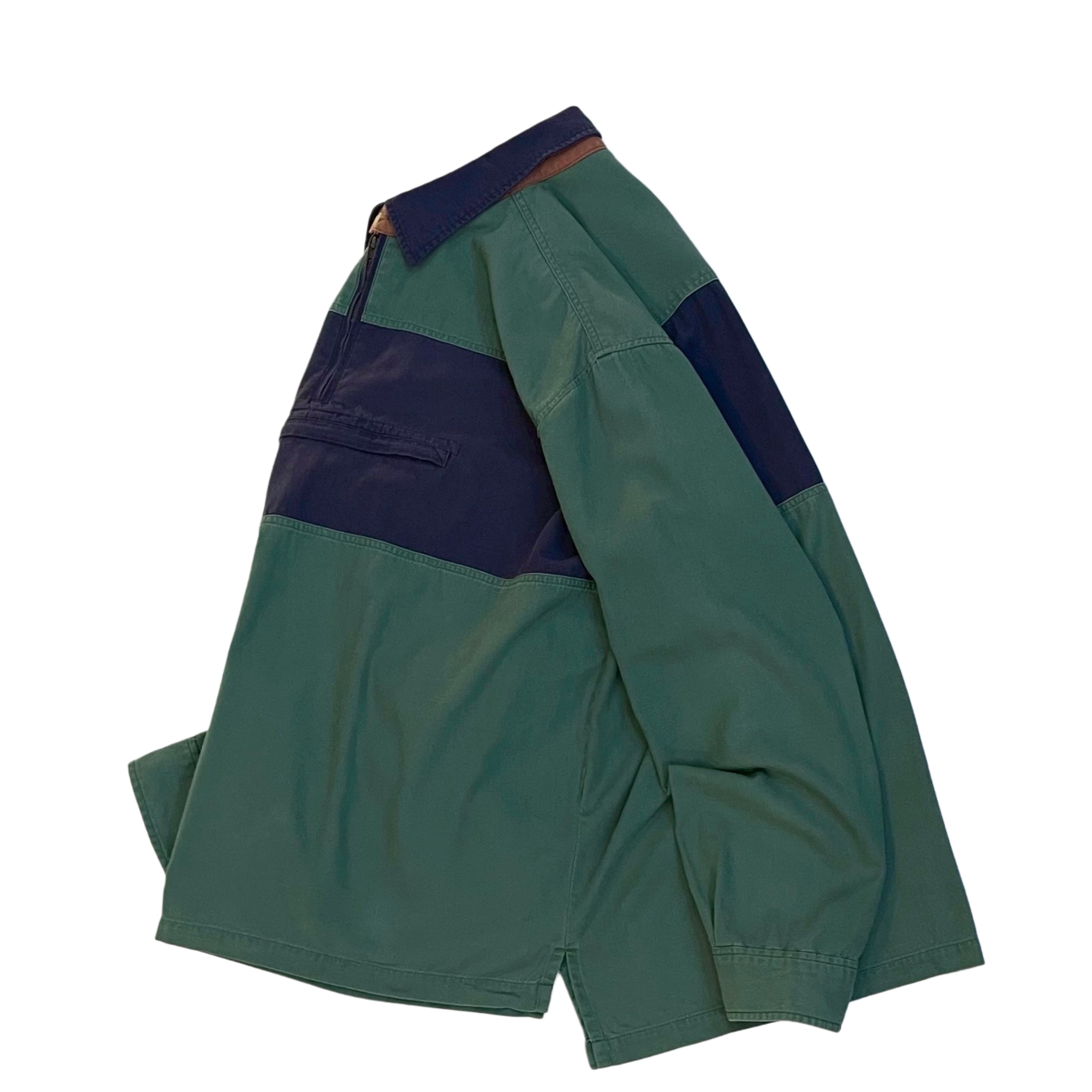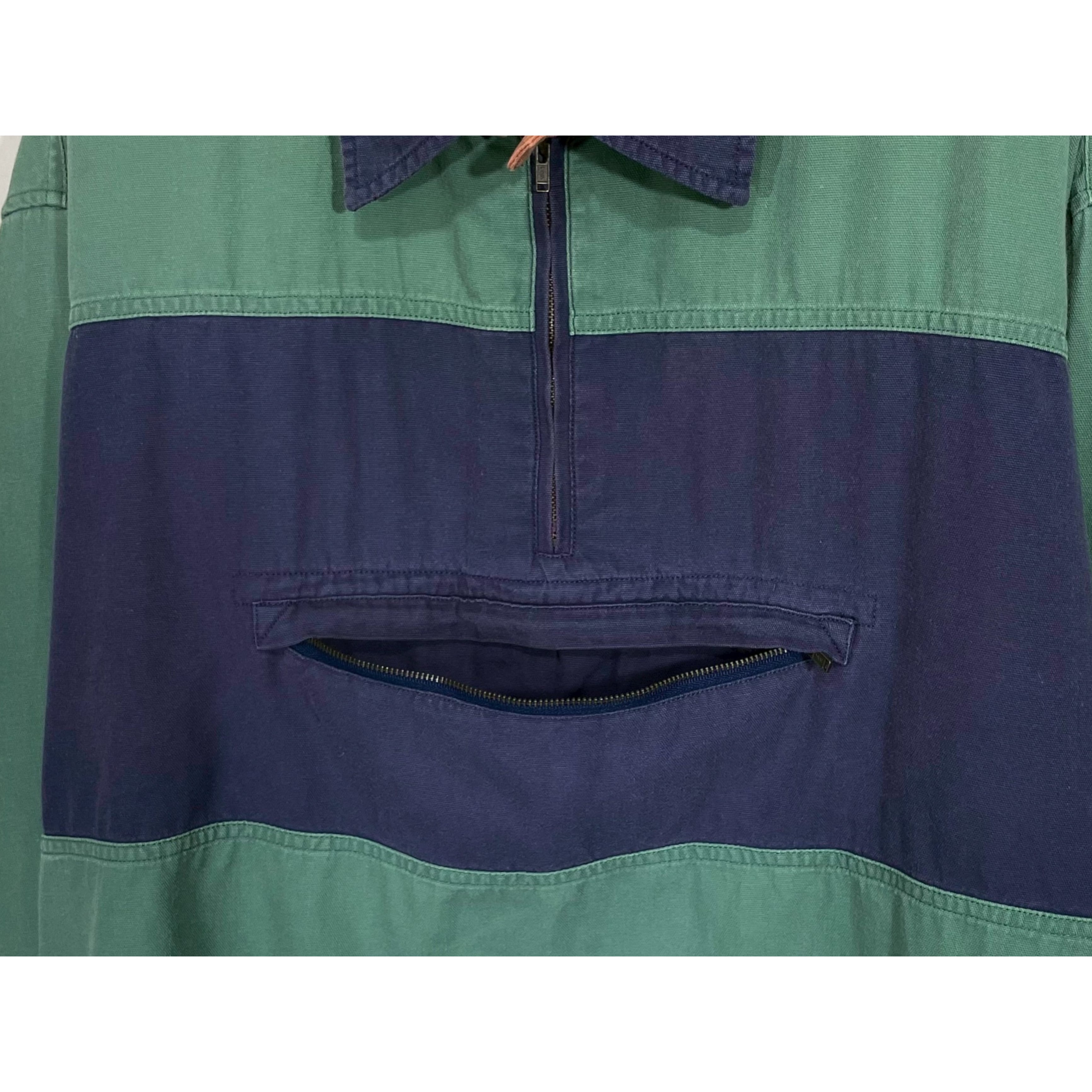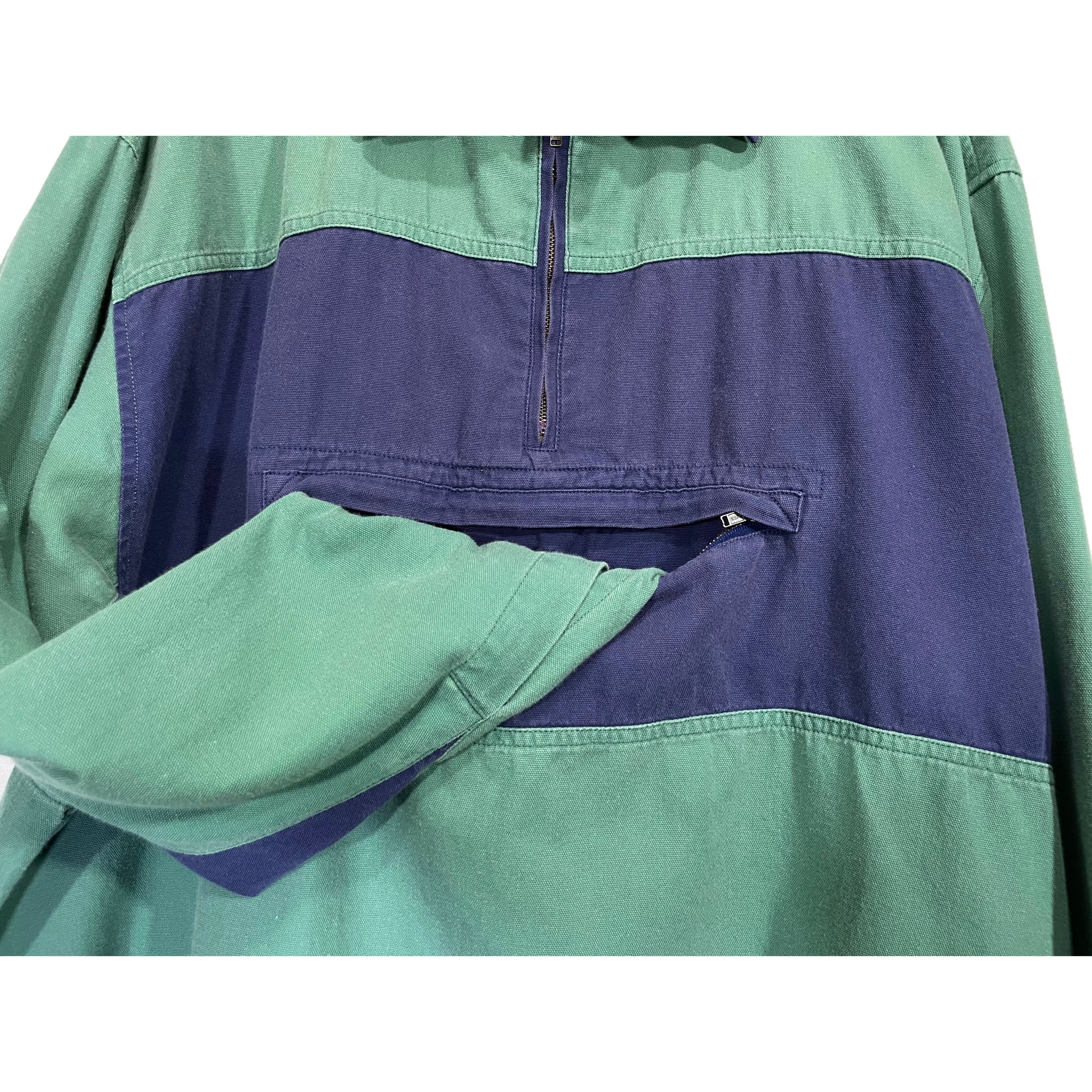 80s- LL Bean navy/green/brick color cotton half zip flont pocket anolak style pullover shir