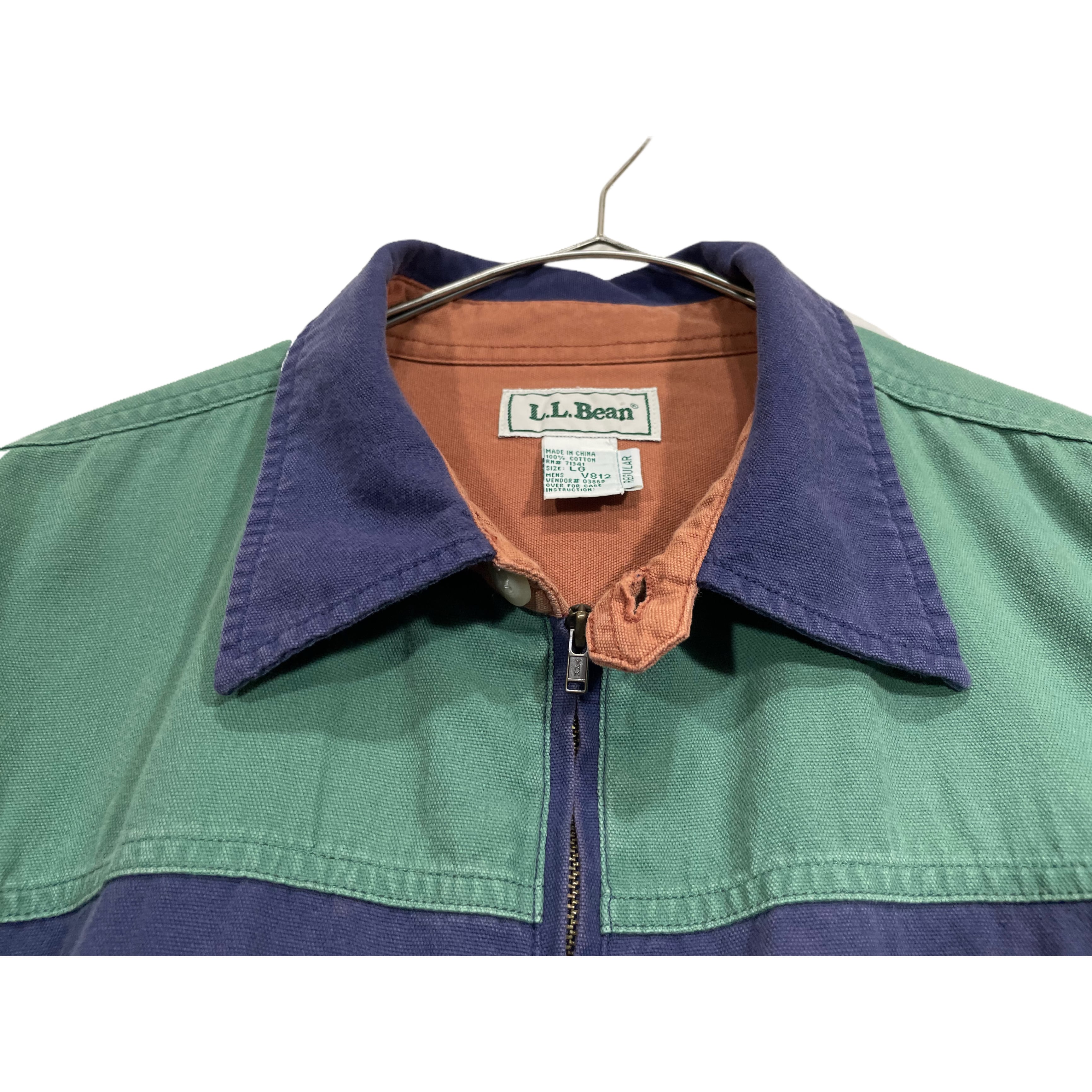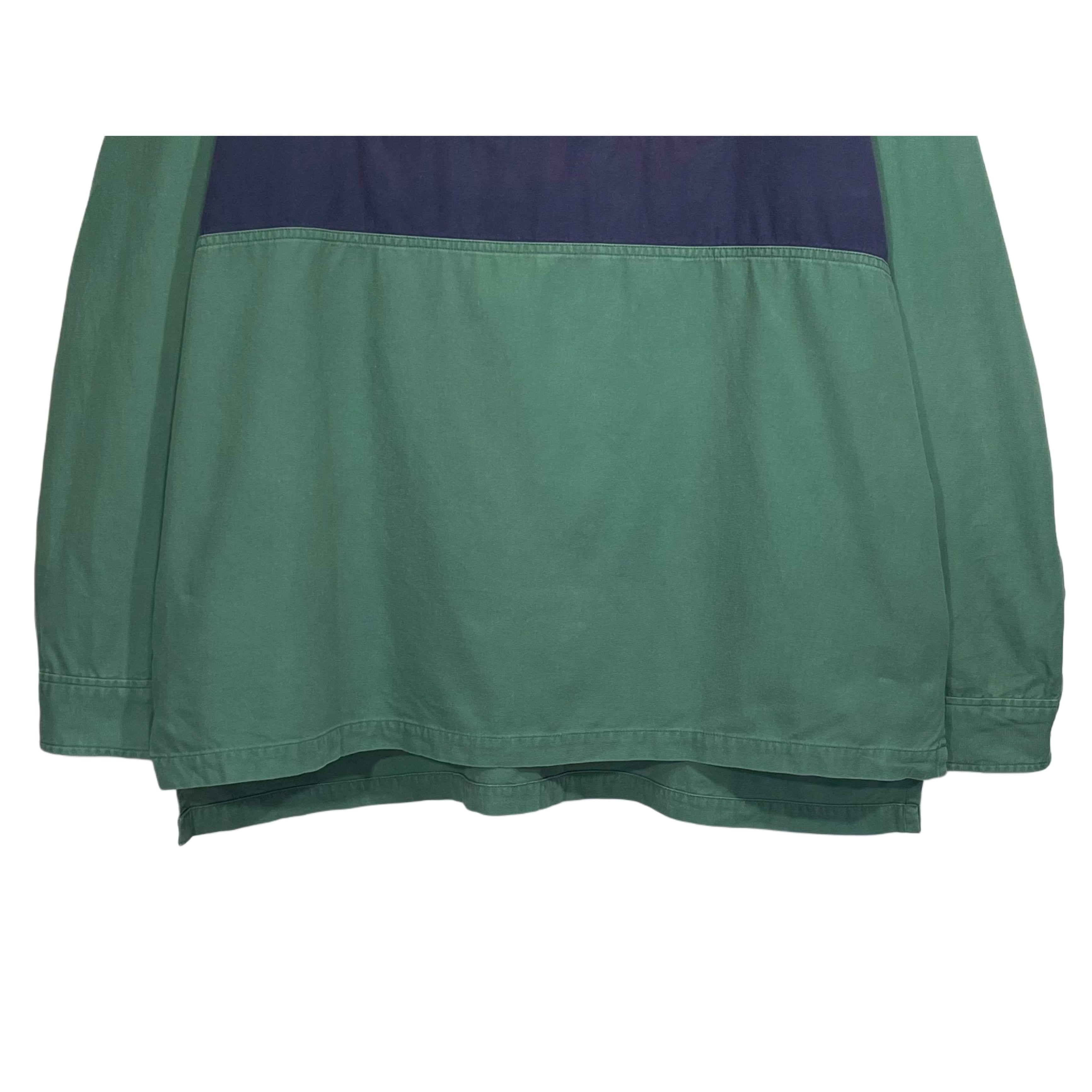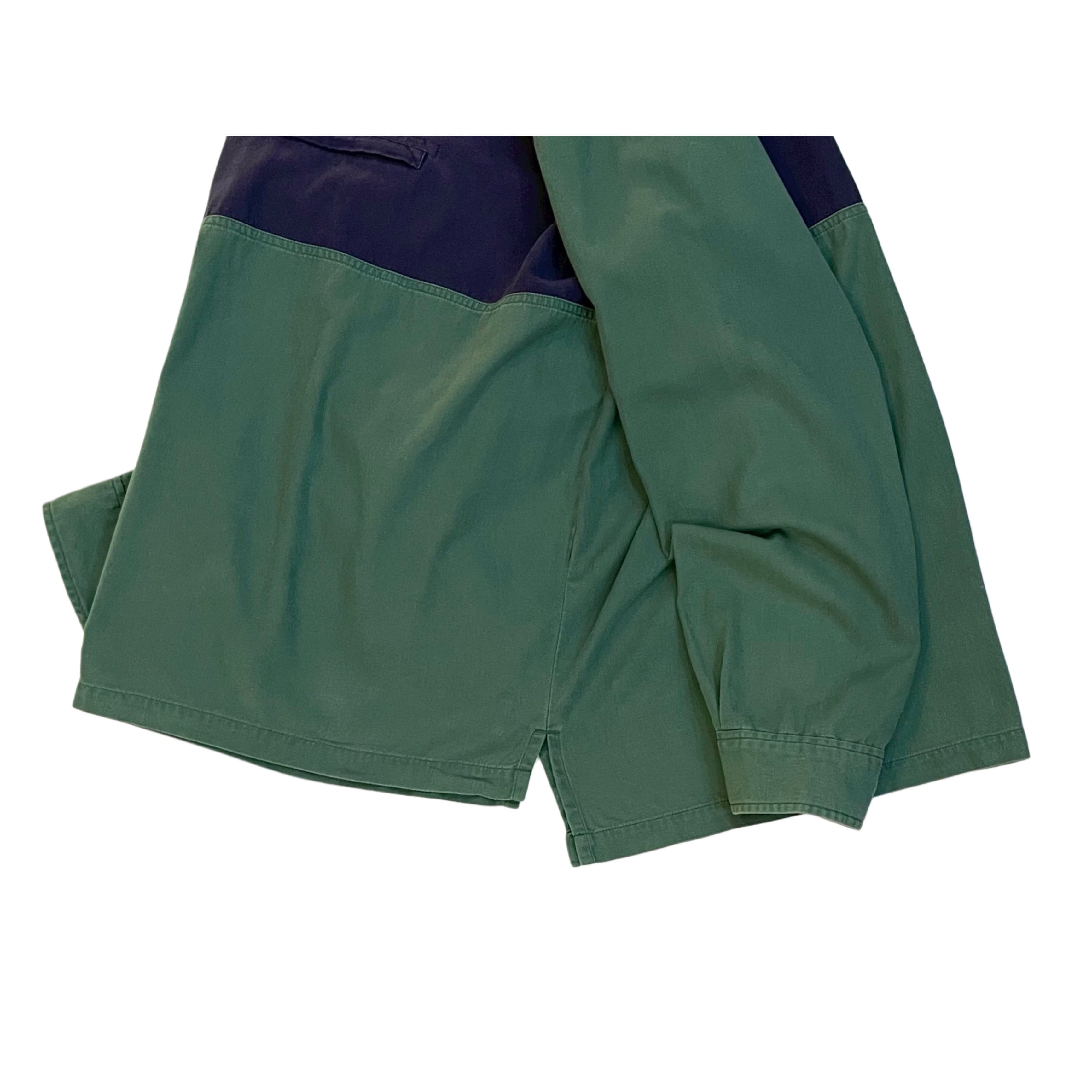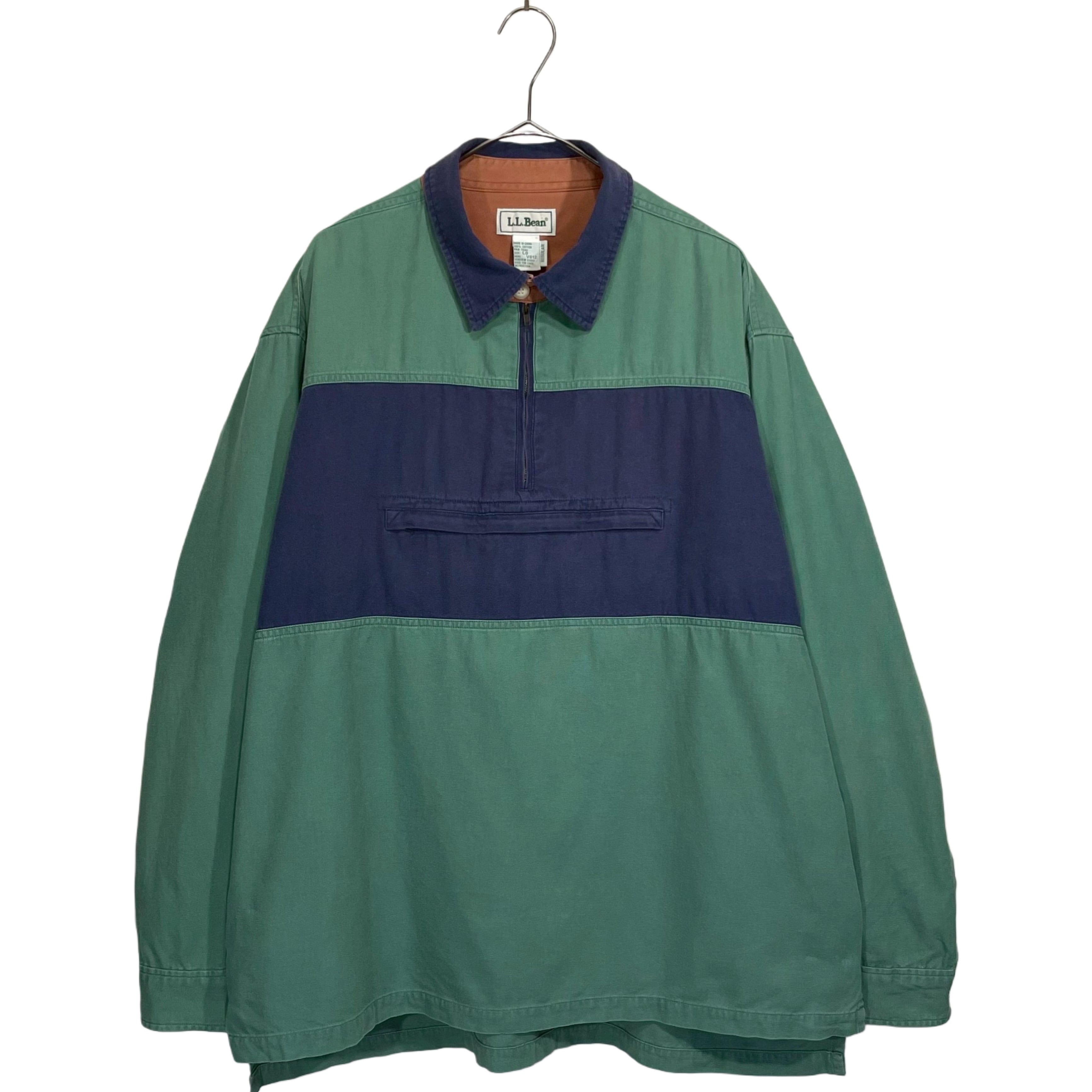 80s- LL Bean navy/green/brick color cotton half zip flont pocket anolak style pullover shirt