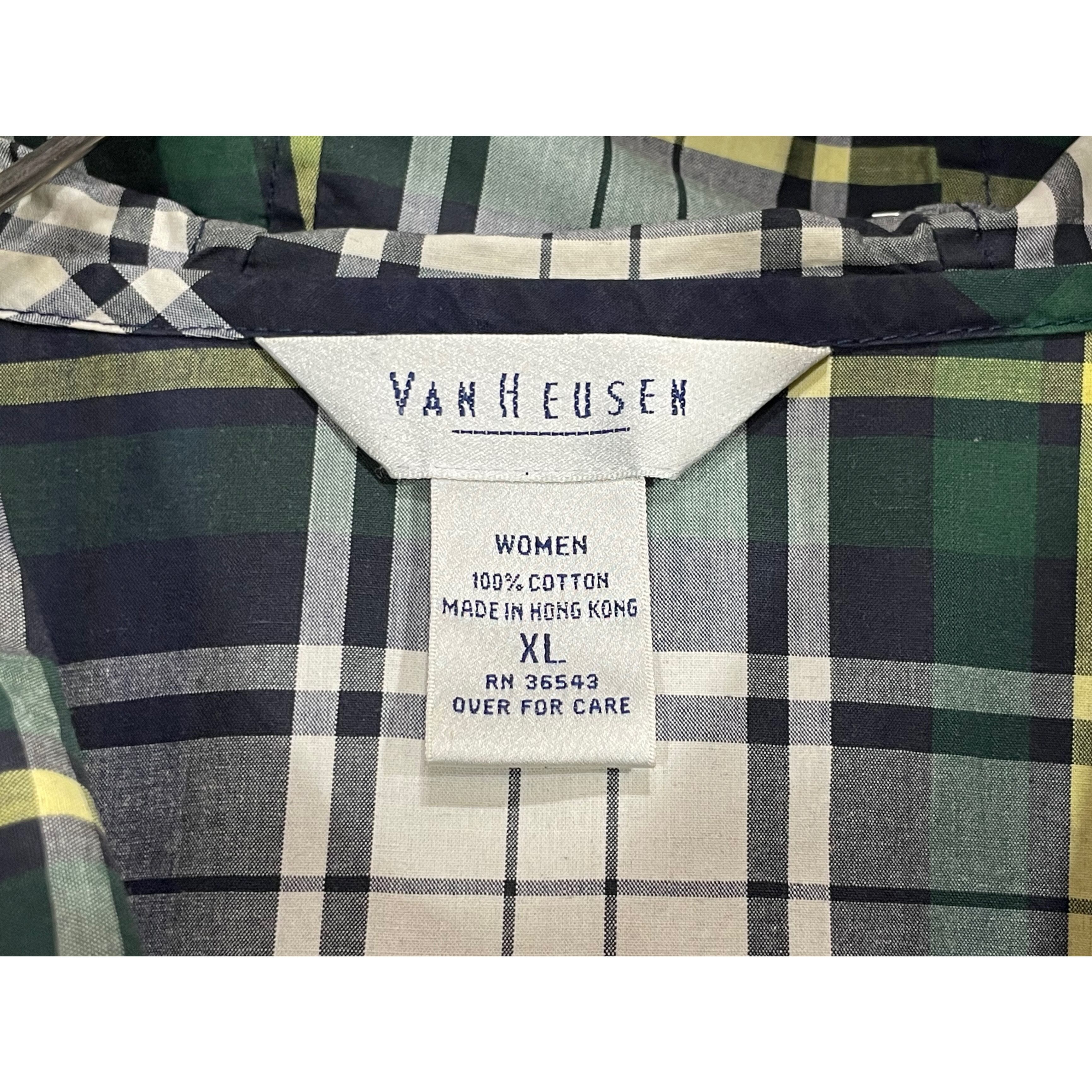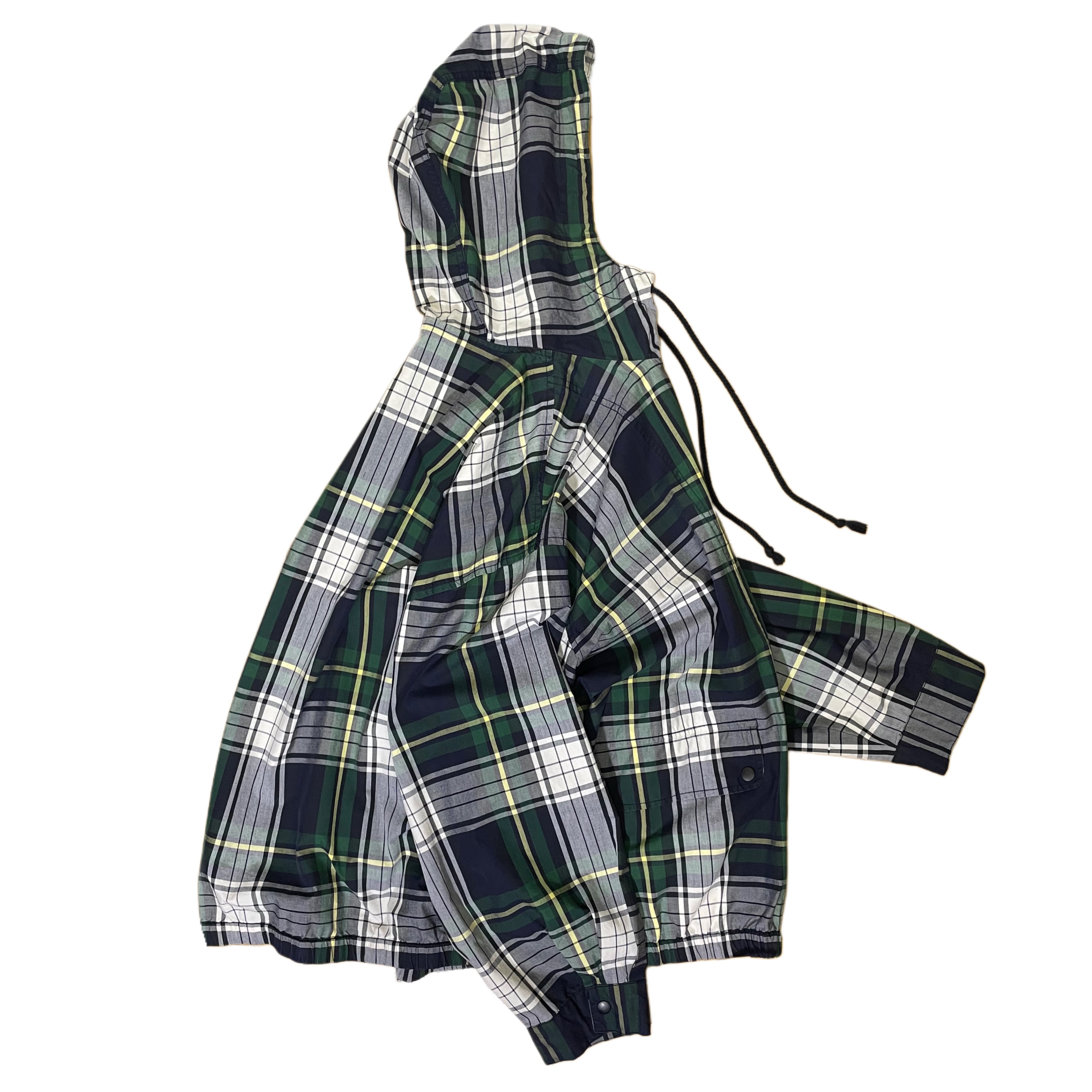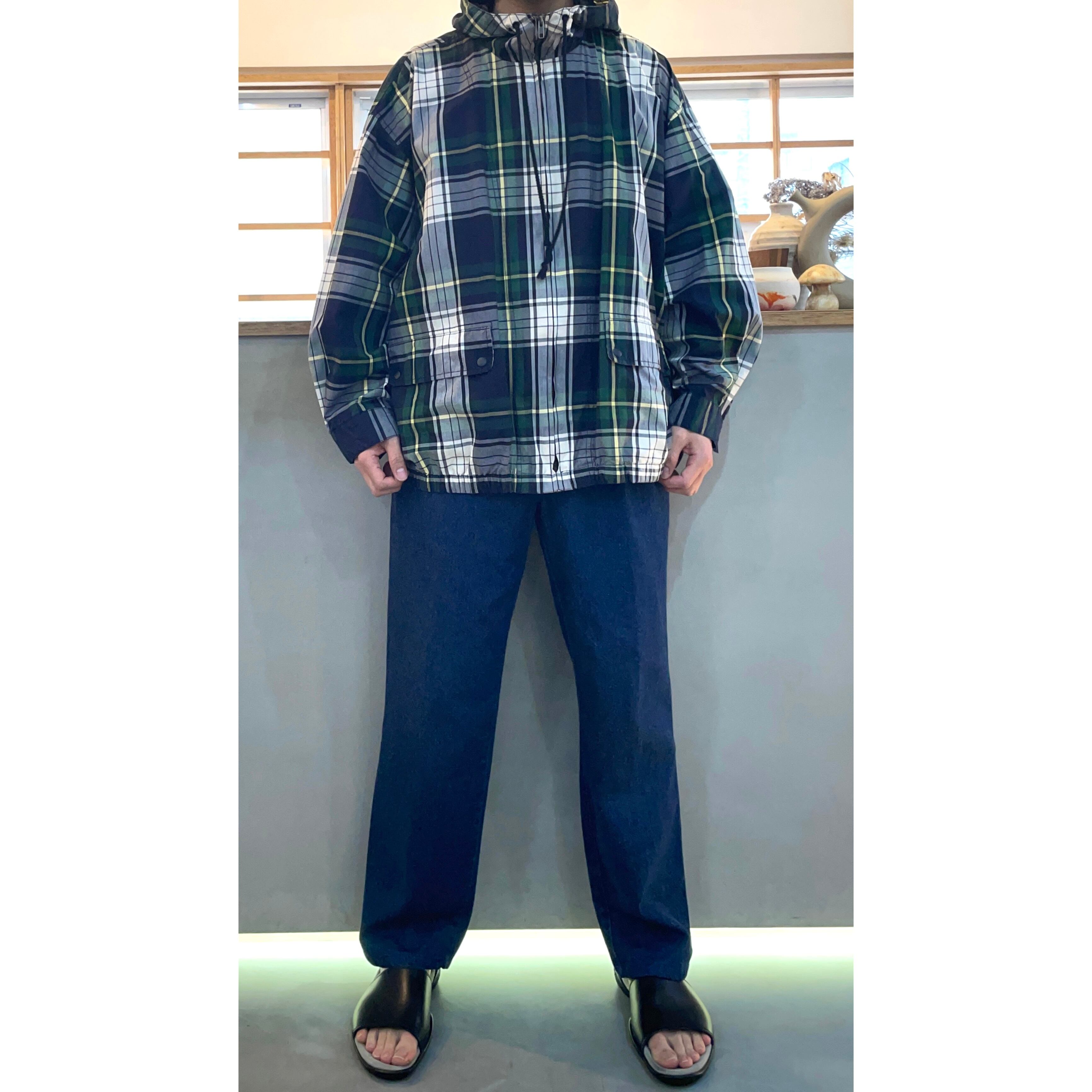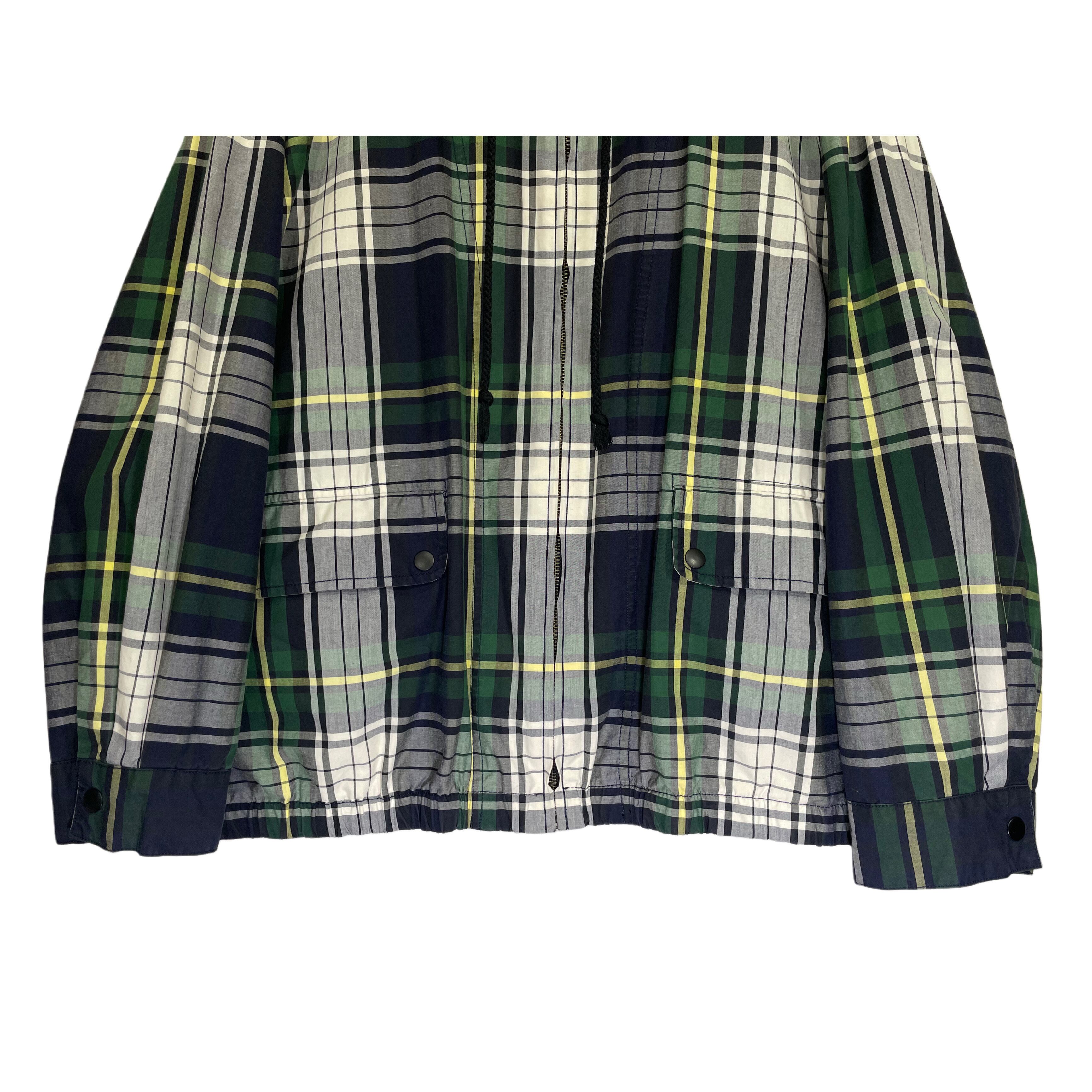 -90s VAN HAUSEN green/white/yellow plaid cotton poplin zip up hooded jacket