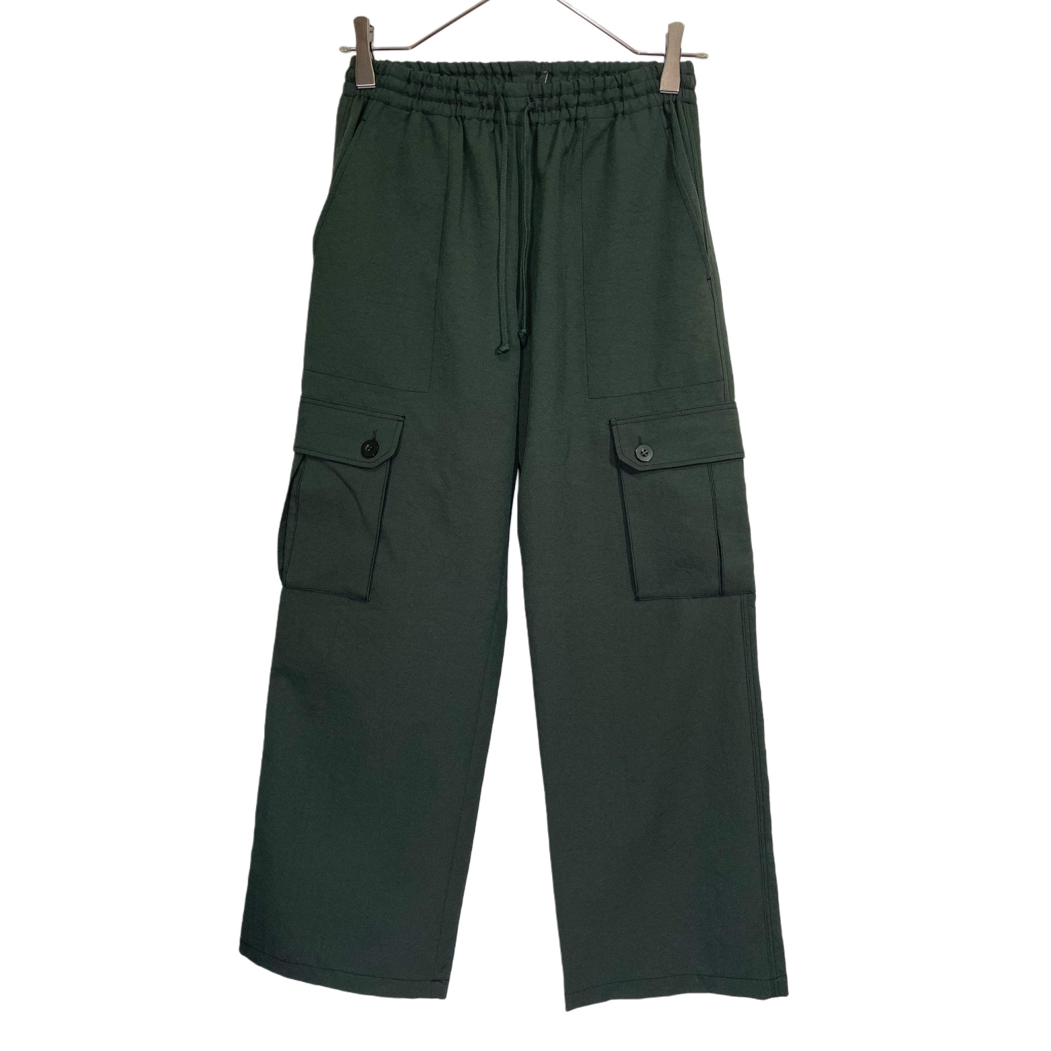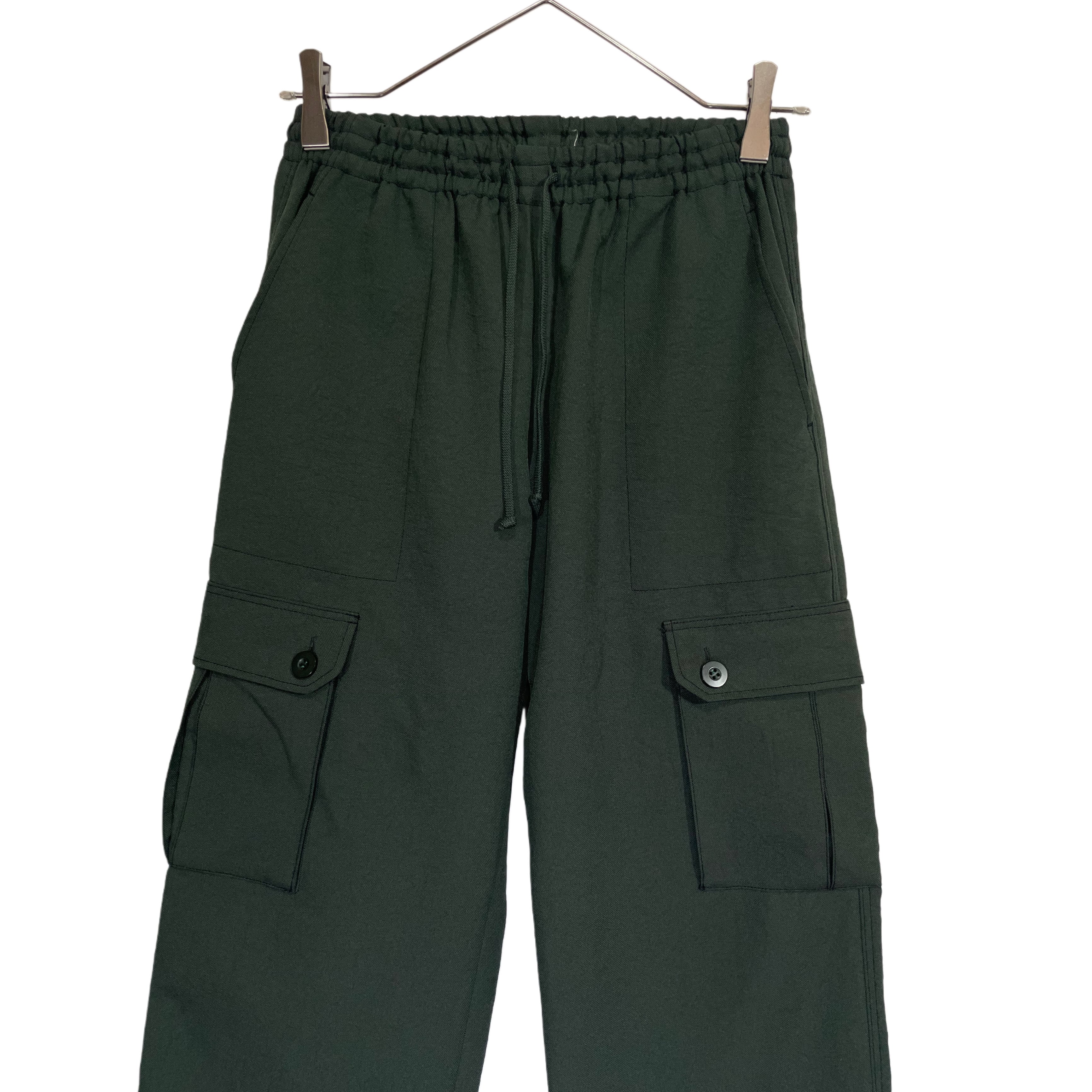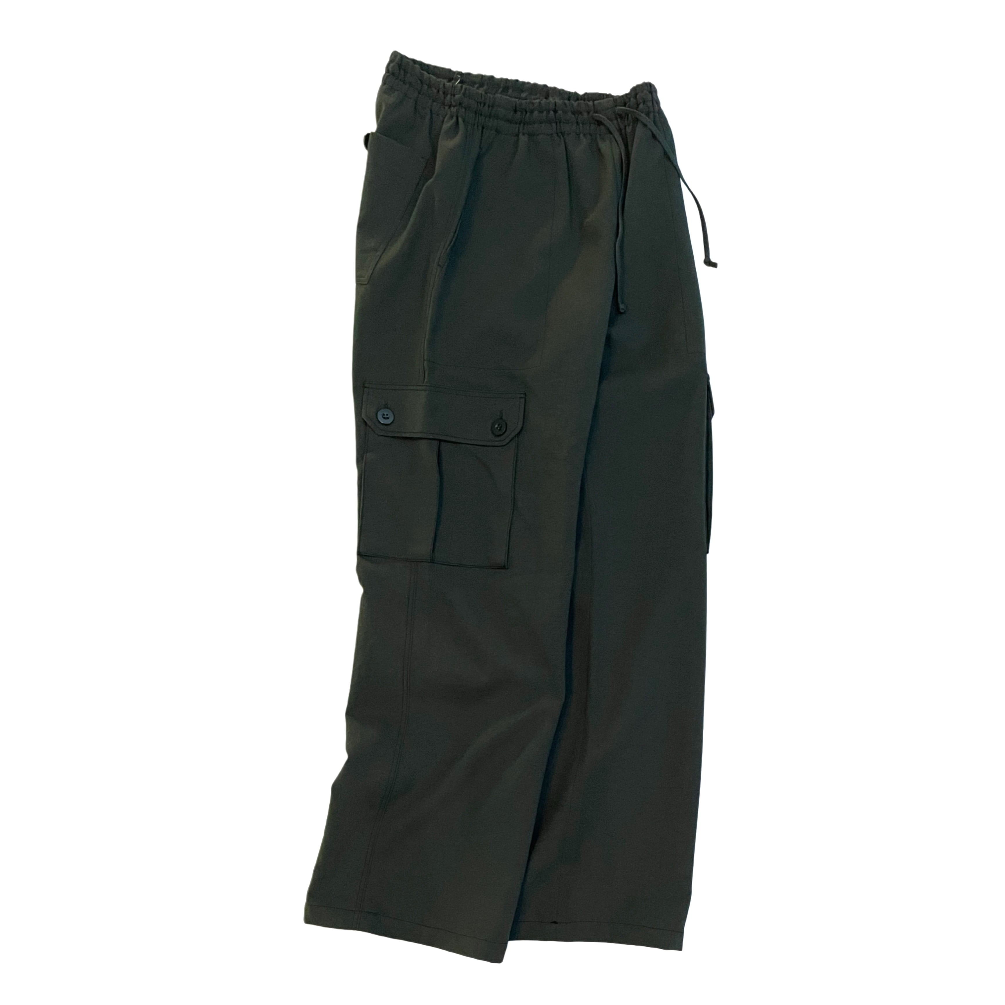PLEATS PLEASE ISSEY MIYAKE olive polyester erastic drawstring waist cargo pants