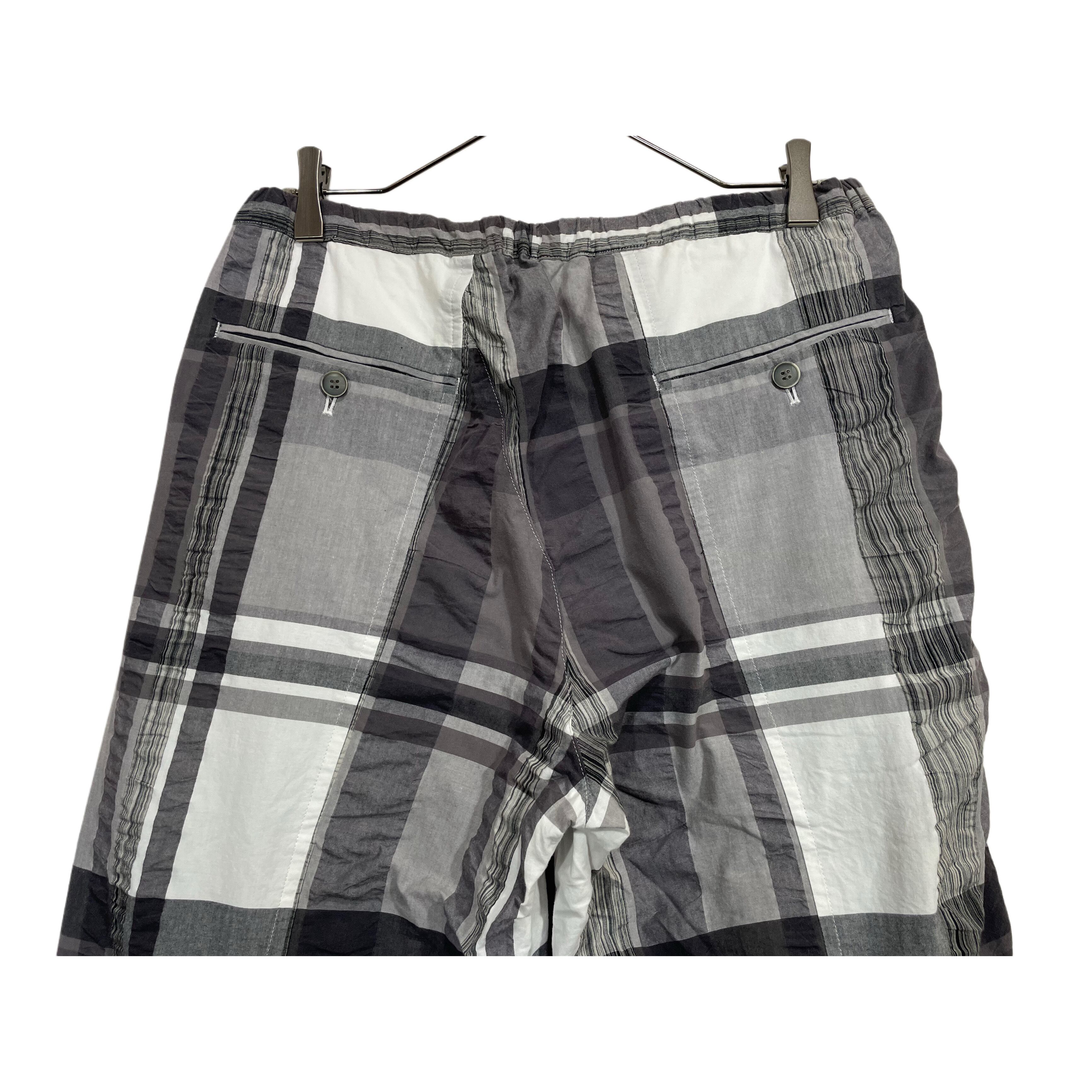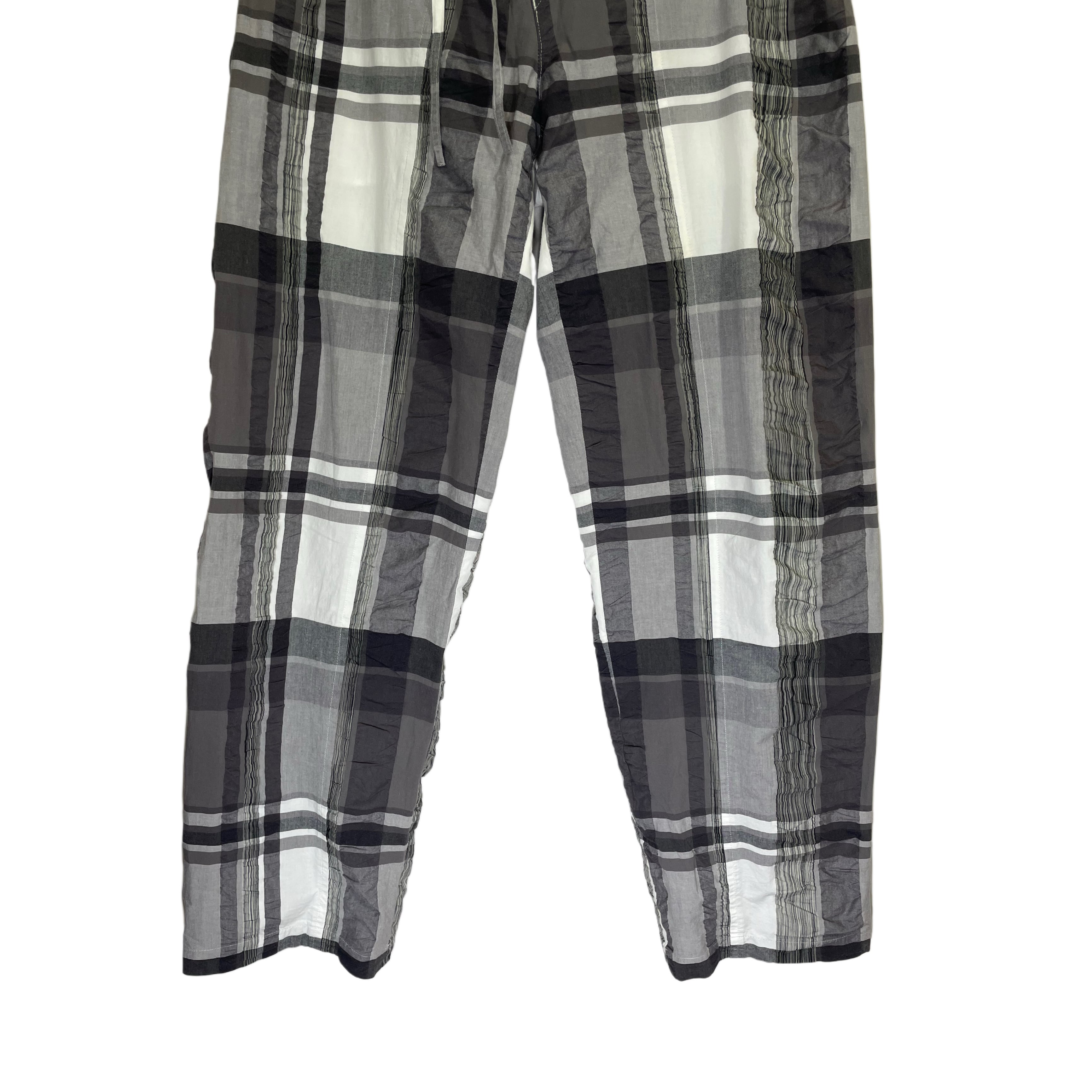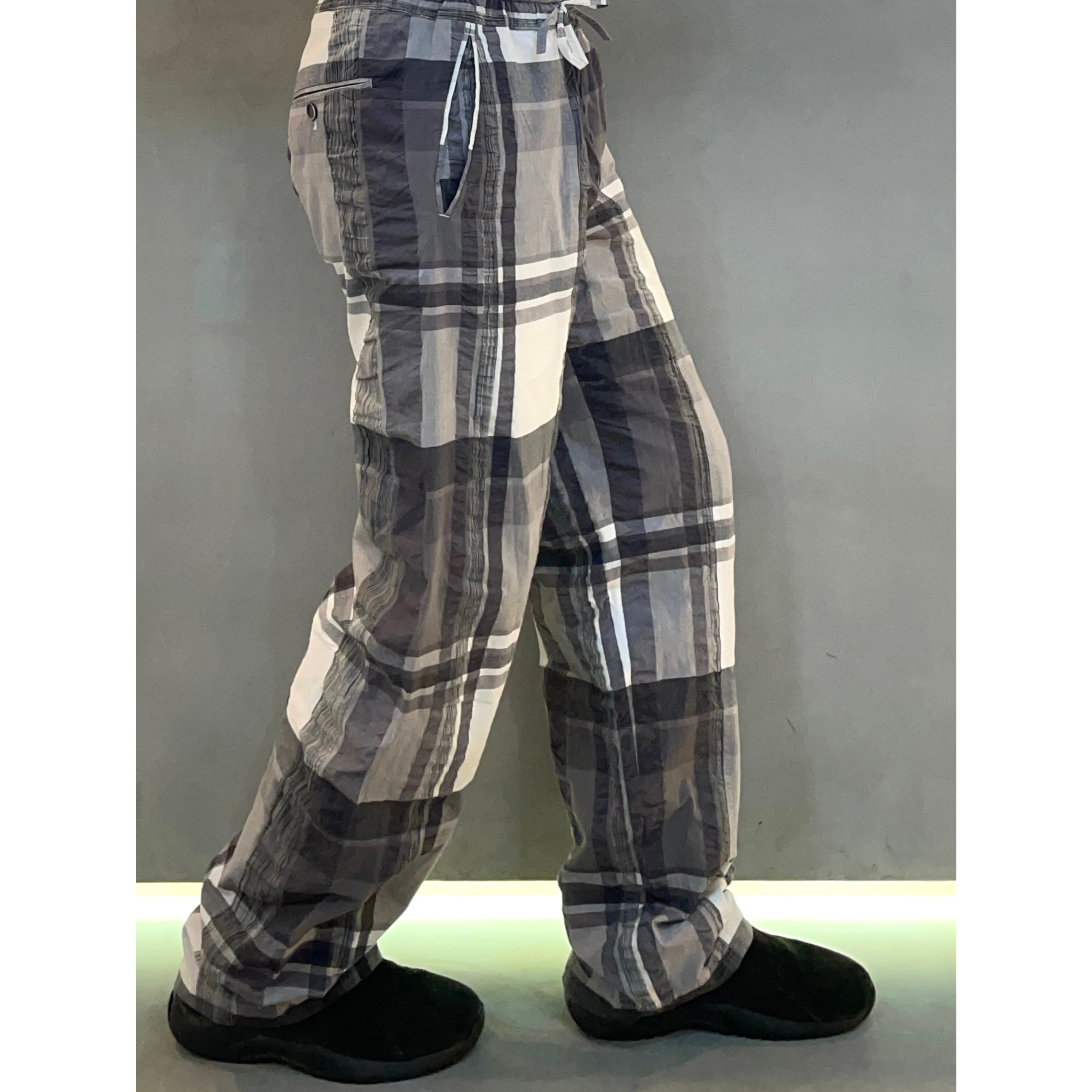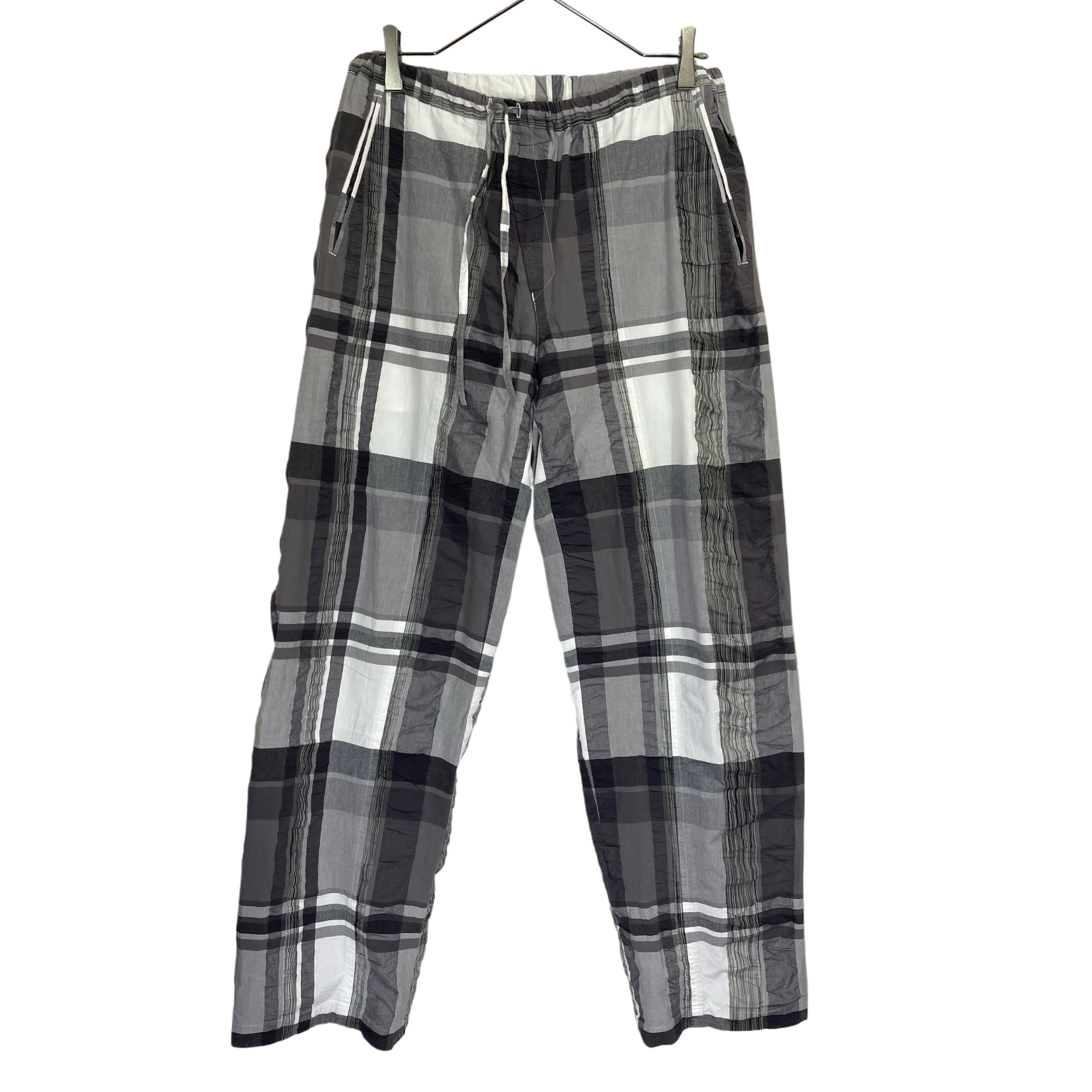 00s ISSEY MIYAKE monotone big plaid cotton drawstring waist slant zip pants