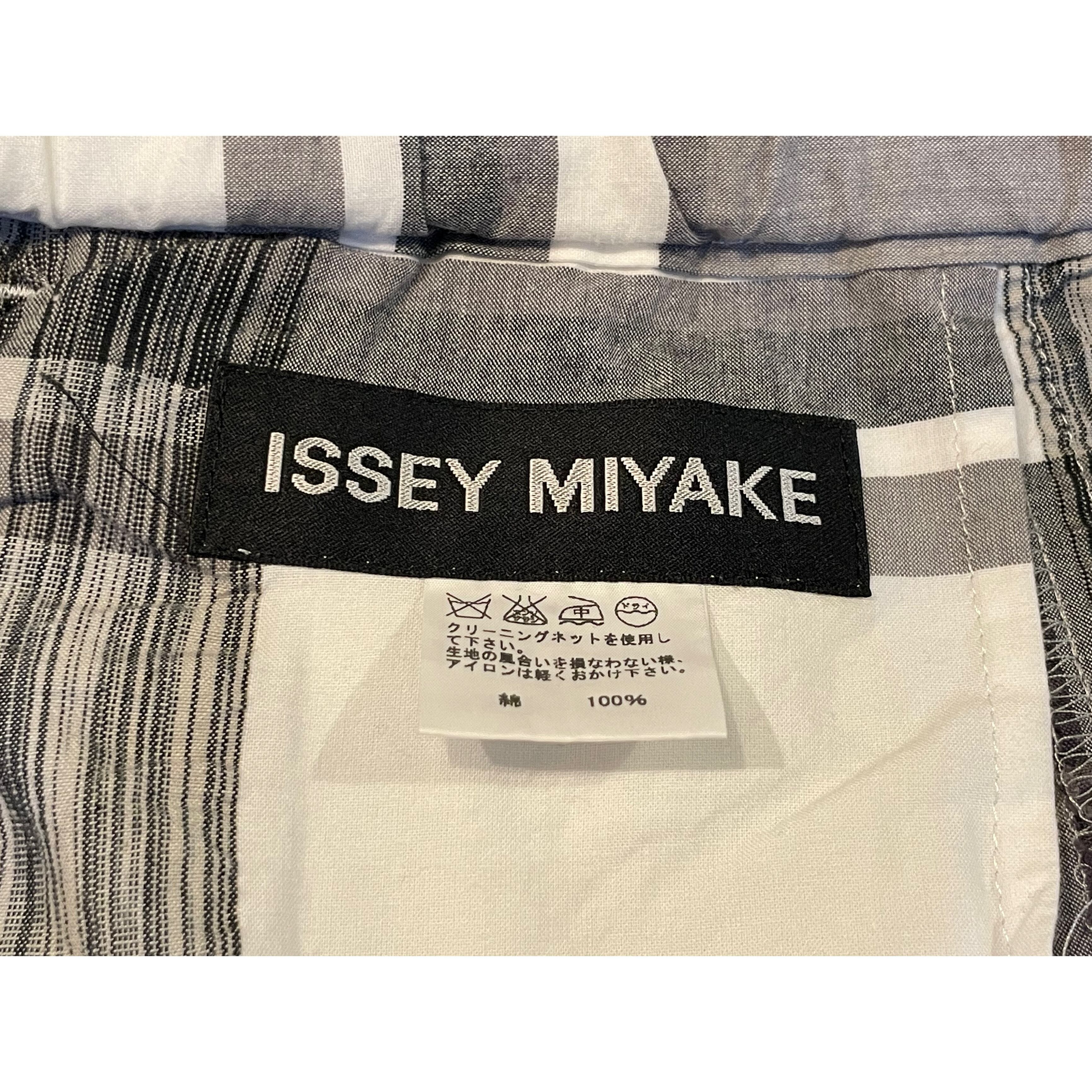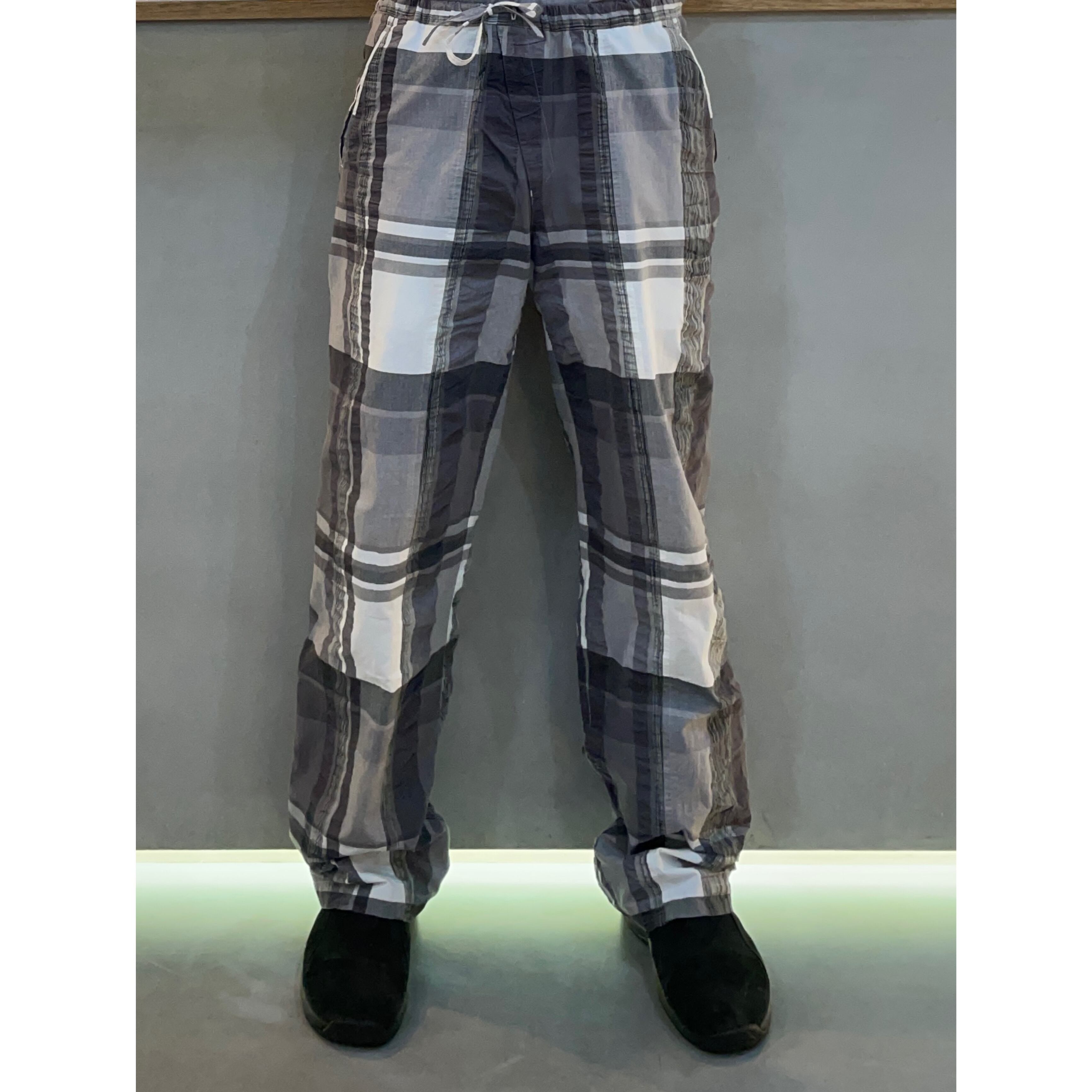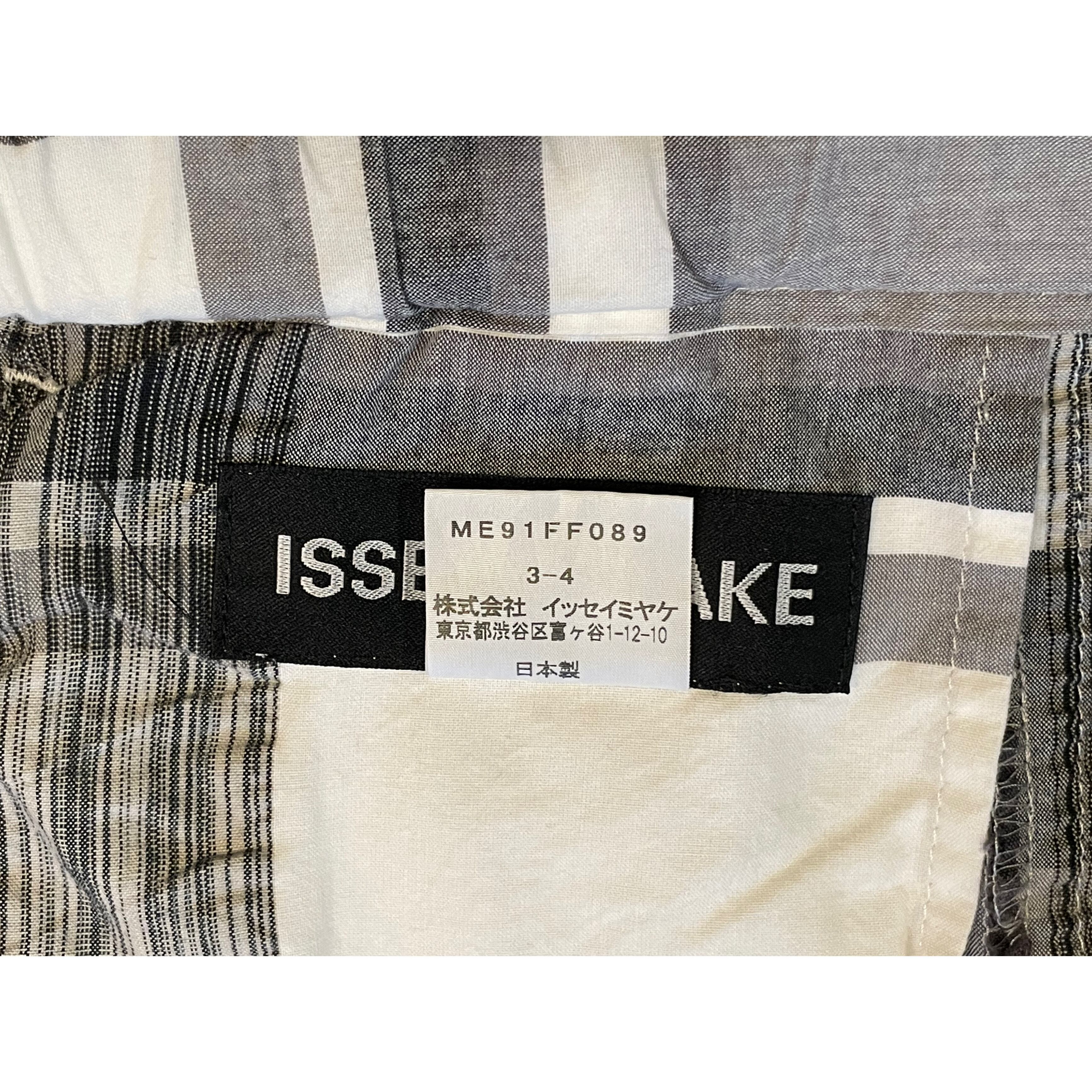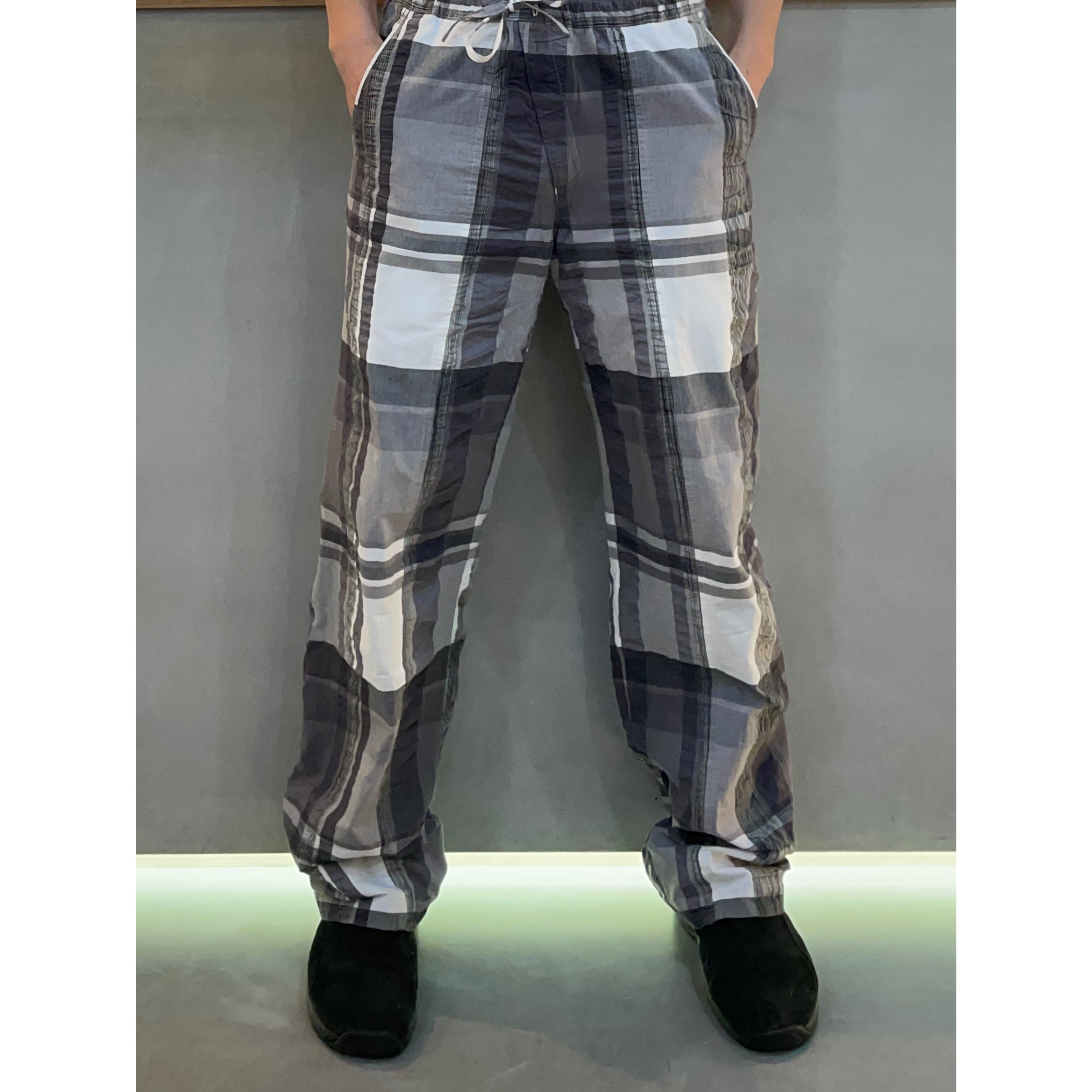 00s ISSEY MIYAKE monotone big plaid cotton drawstring waist slant zip pants