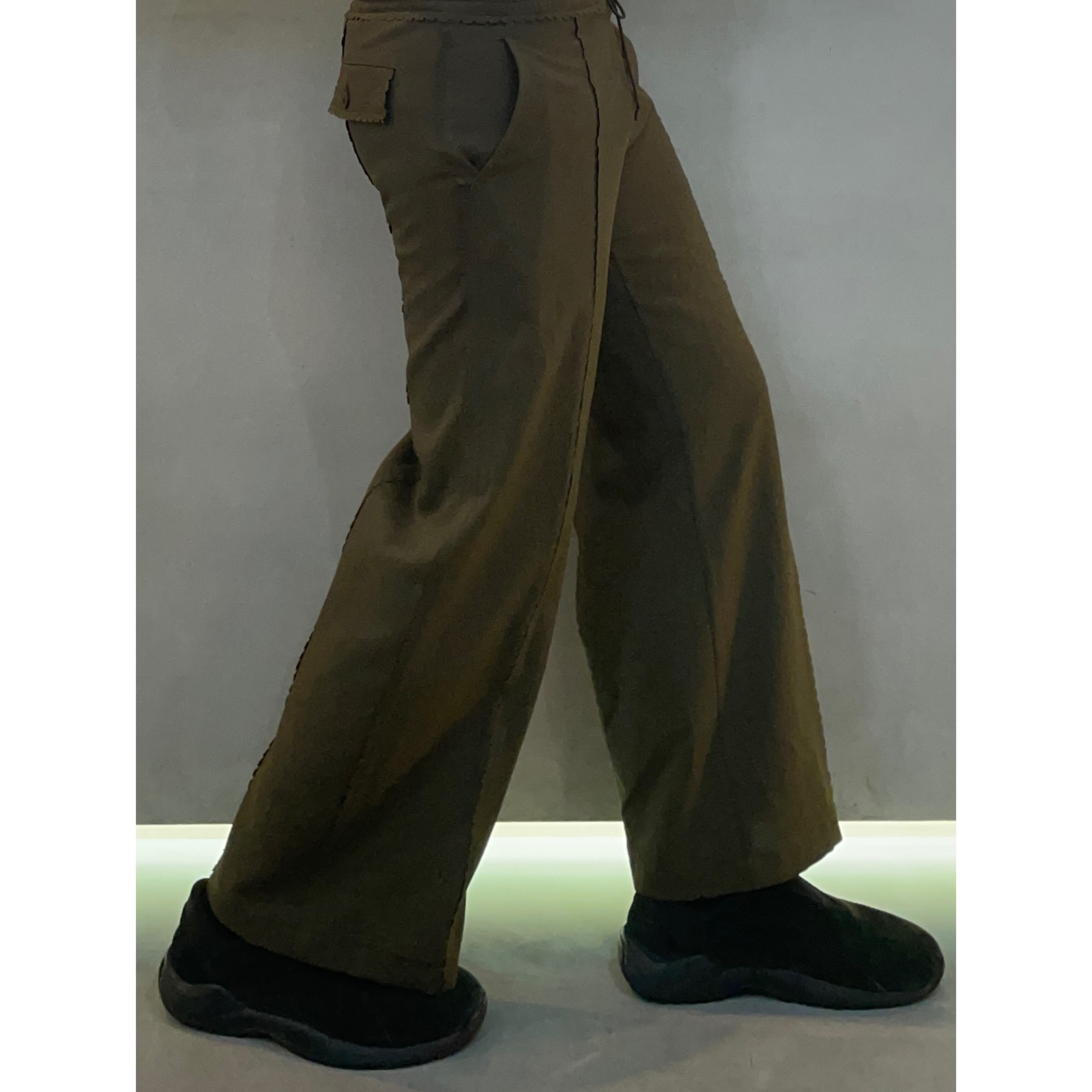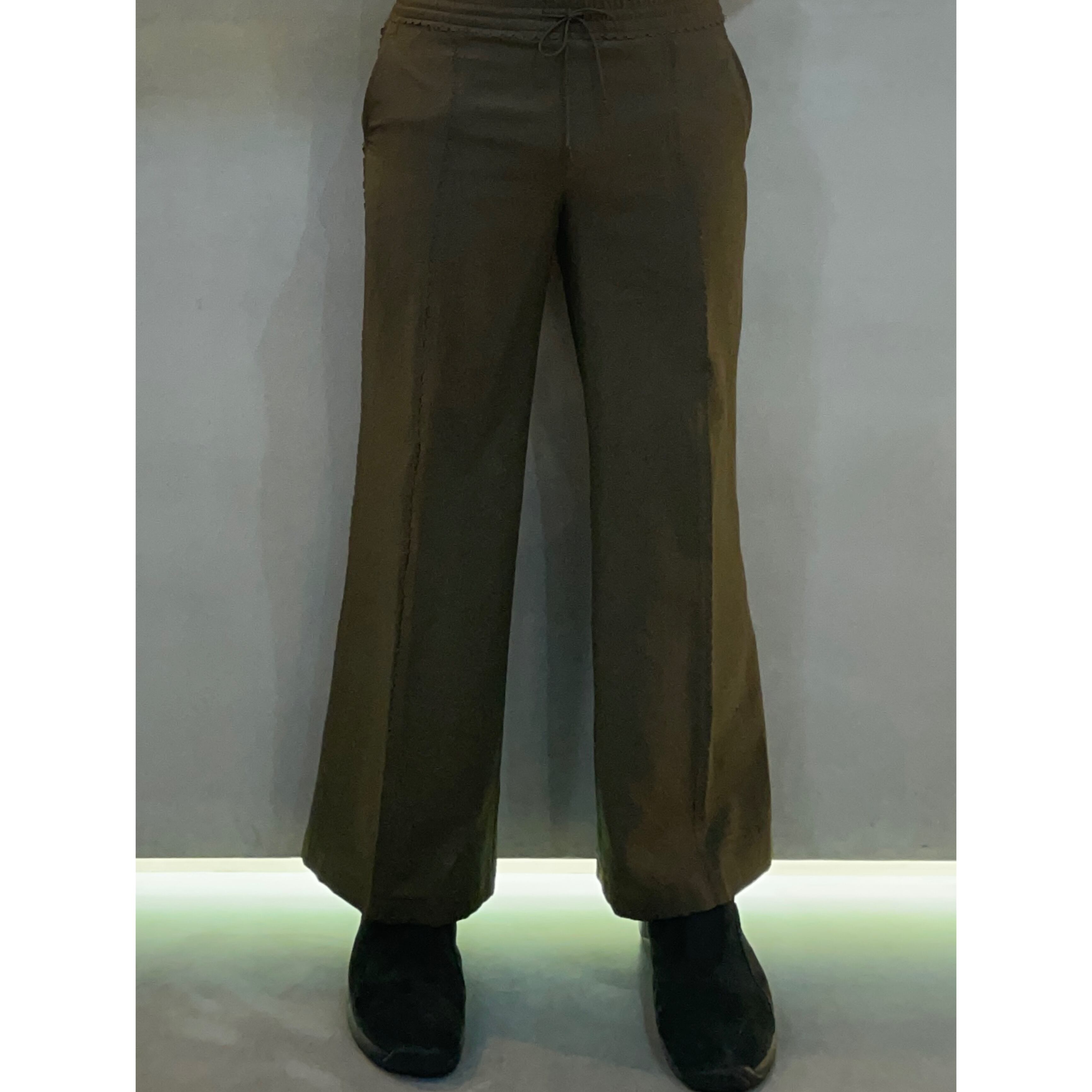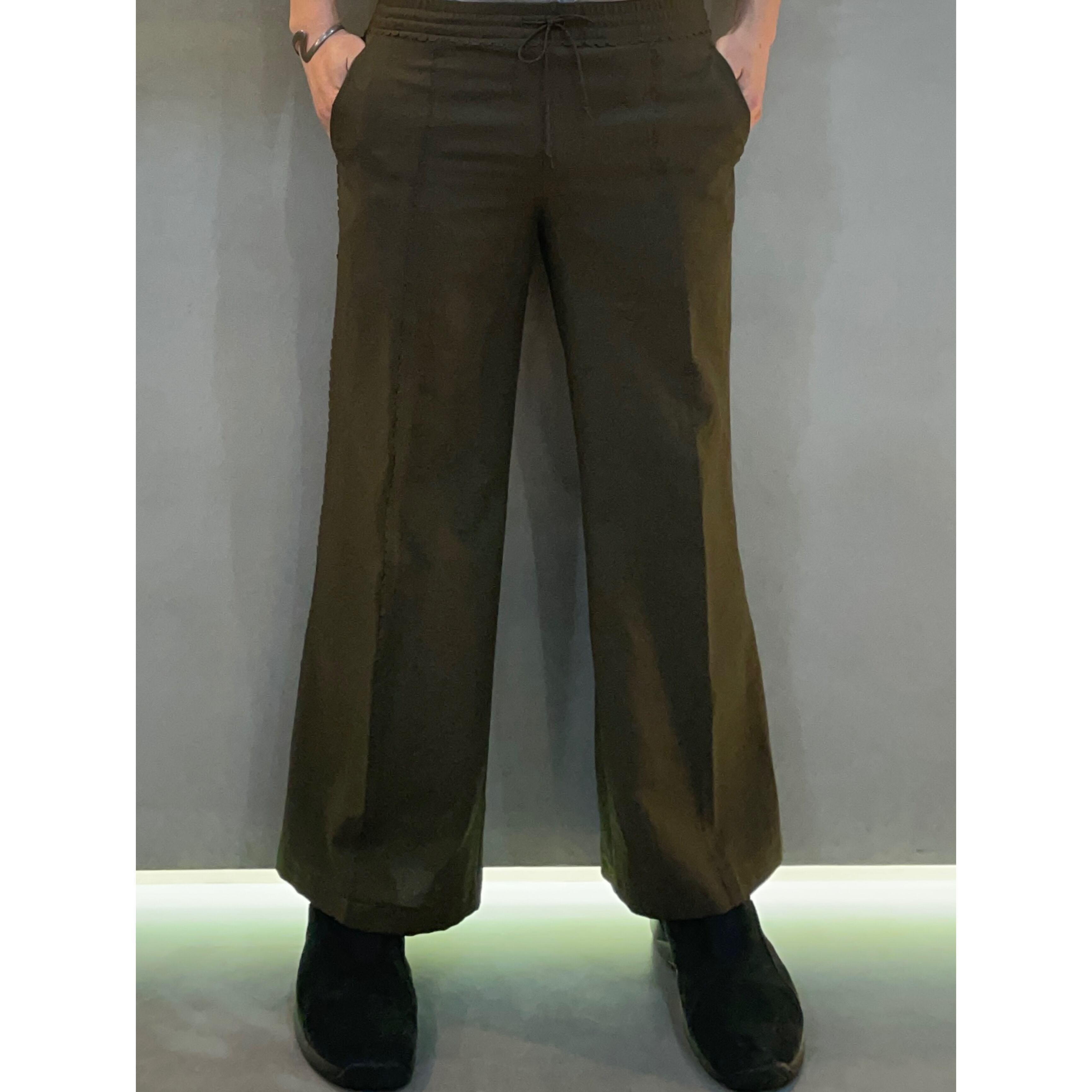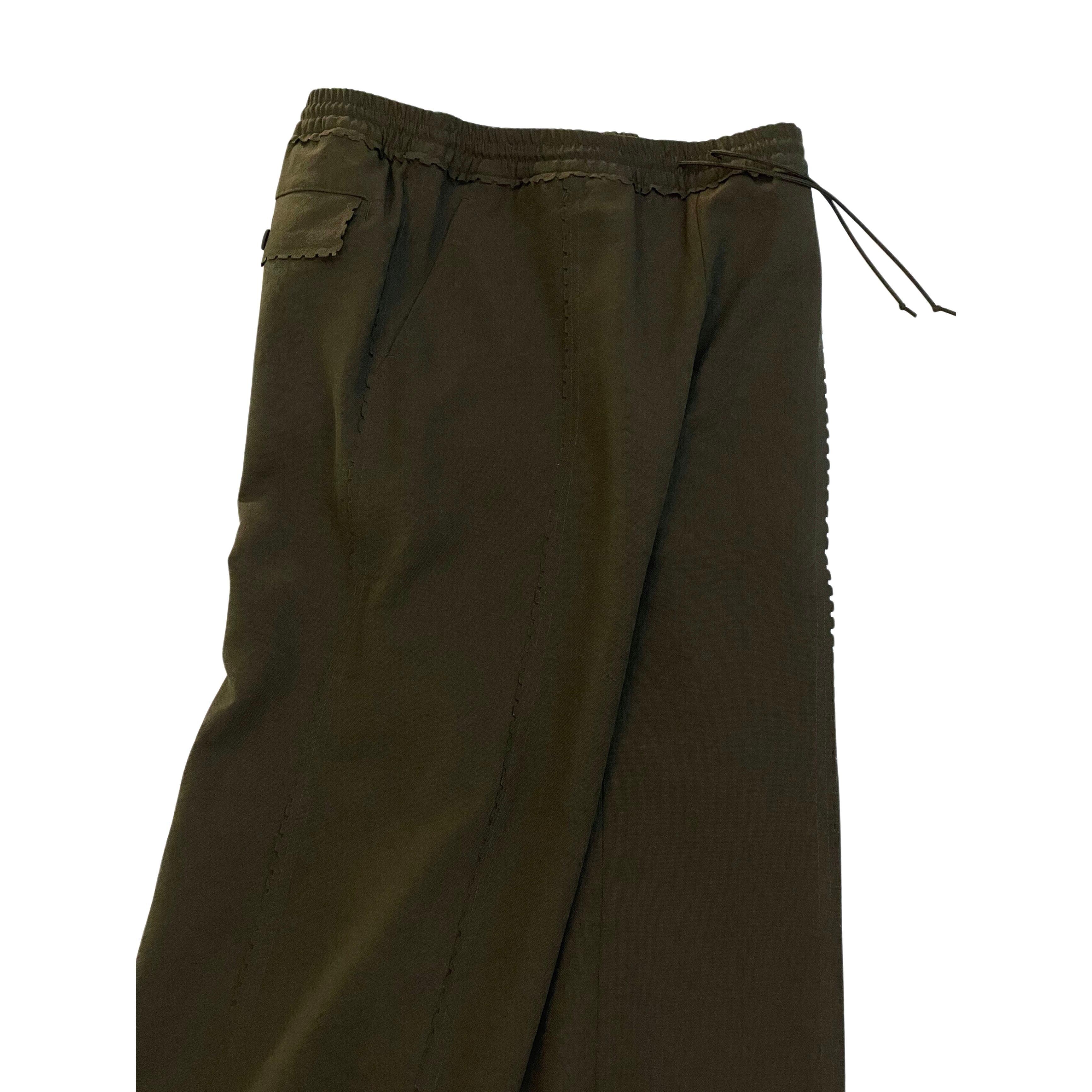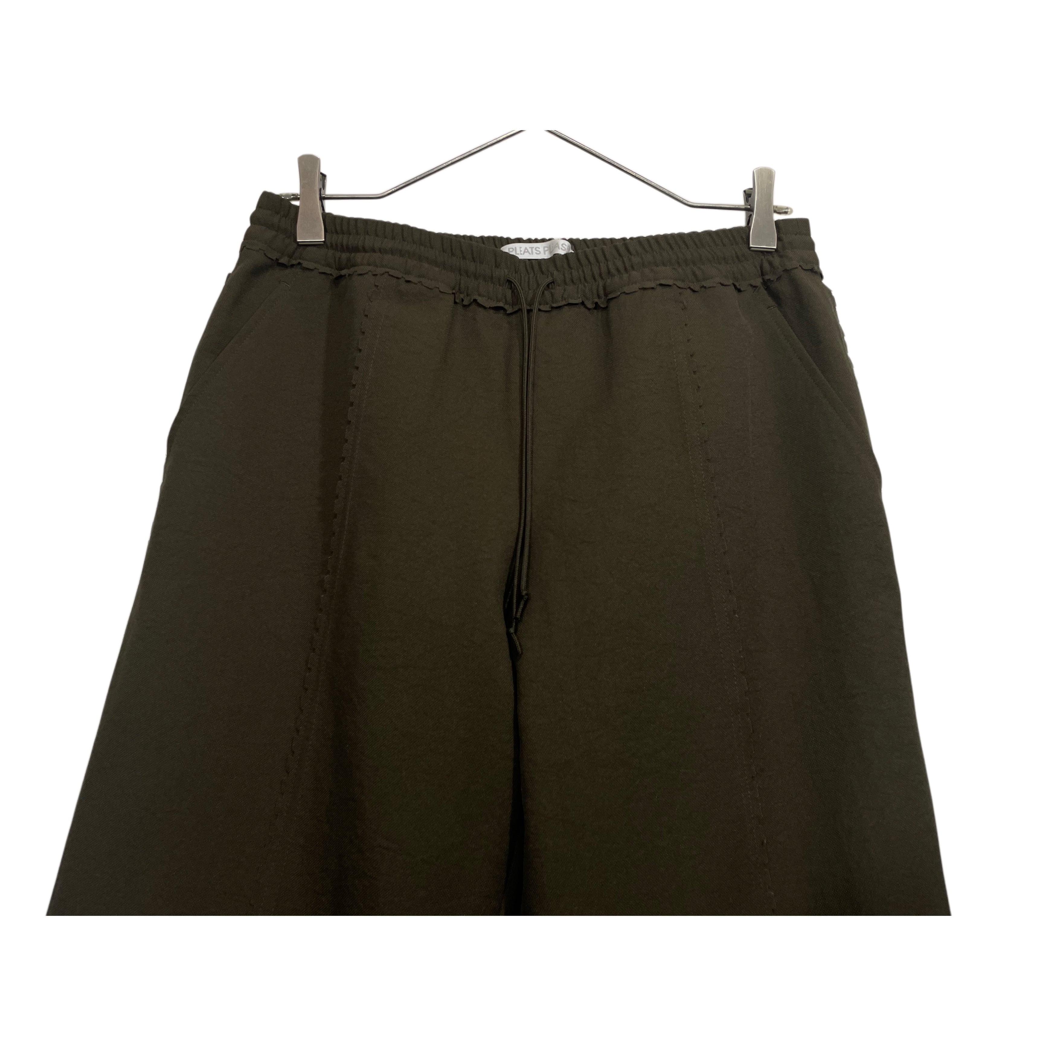 00s PLEATS PLEASE ISSEY MIYAKE olive brown polyester drawstring erastic waist flare pants